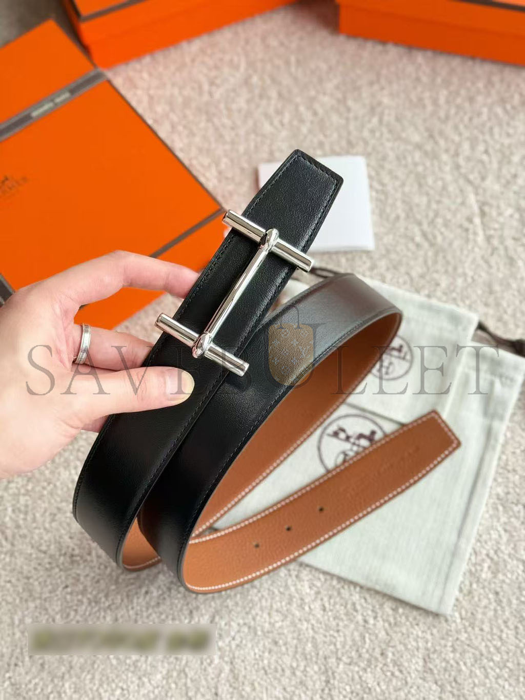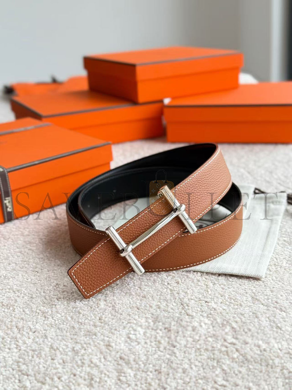 HERMES H D'ANCRE BELT BUCKLE & REVERSIBLE LEATHER STRAP 32 MM H077931CK05
