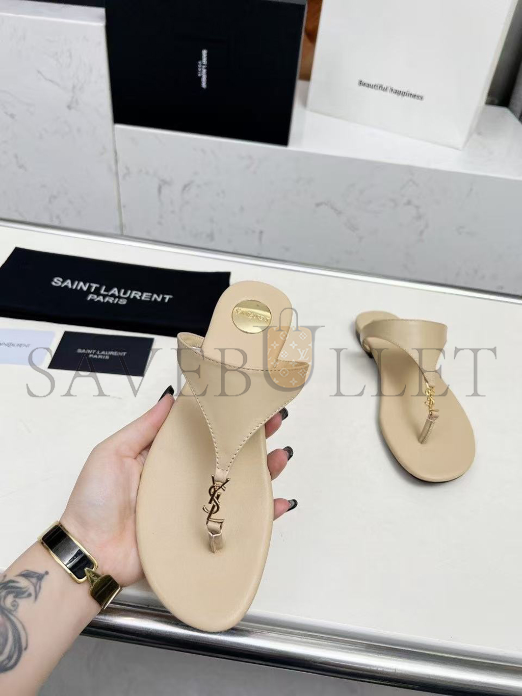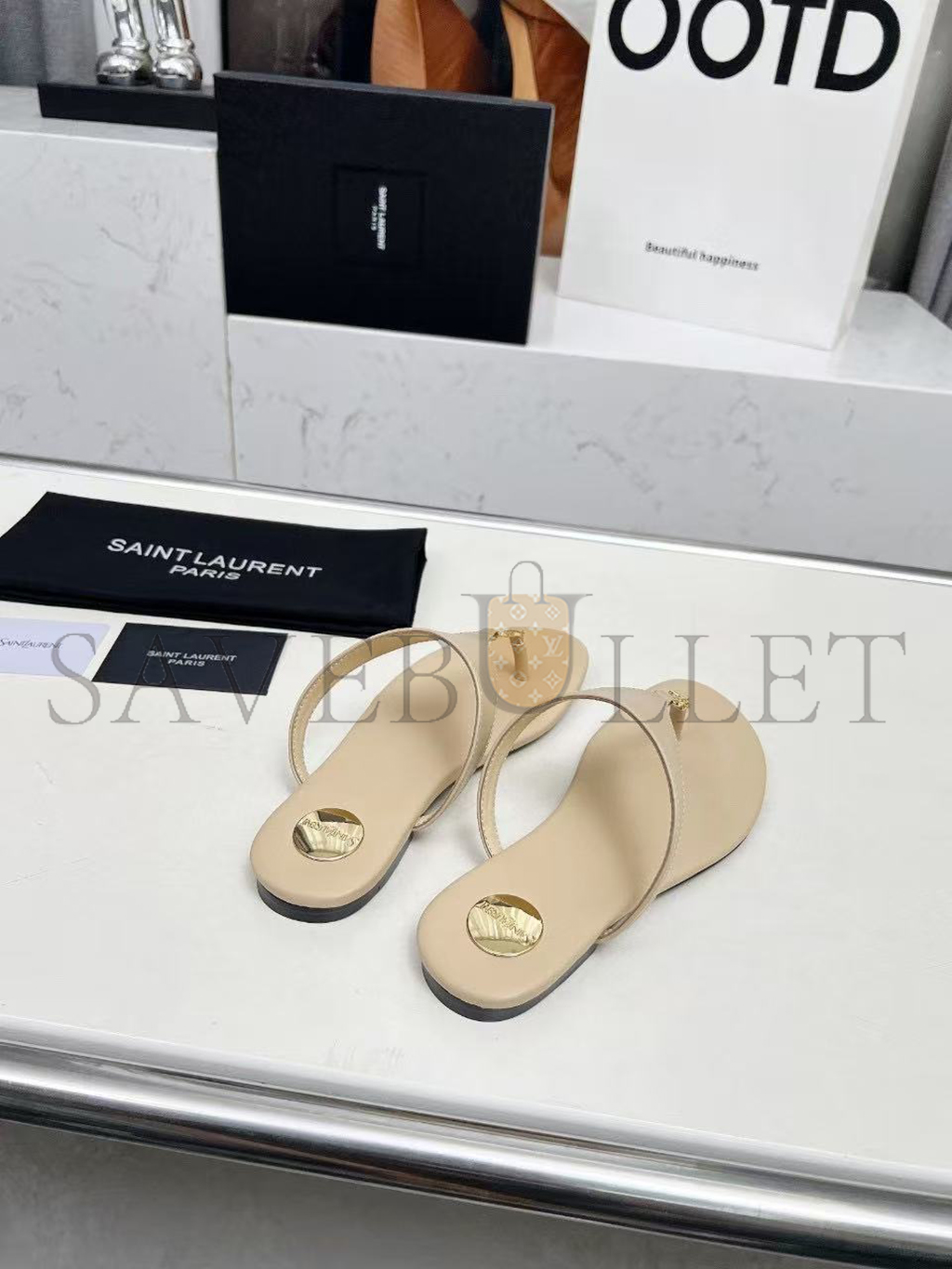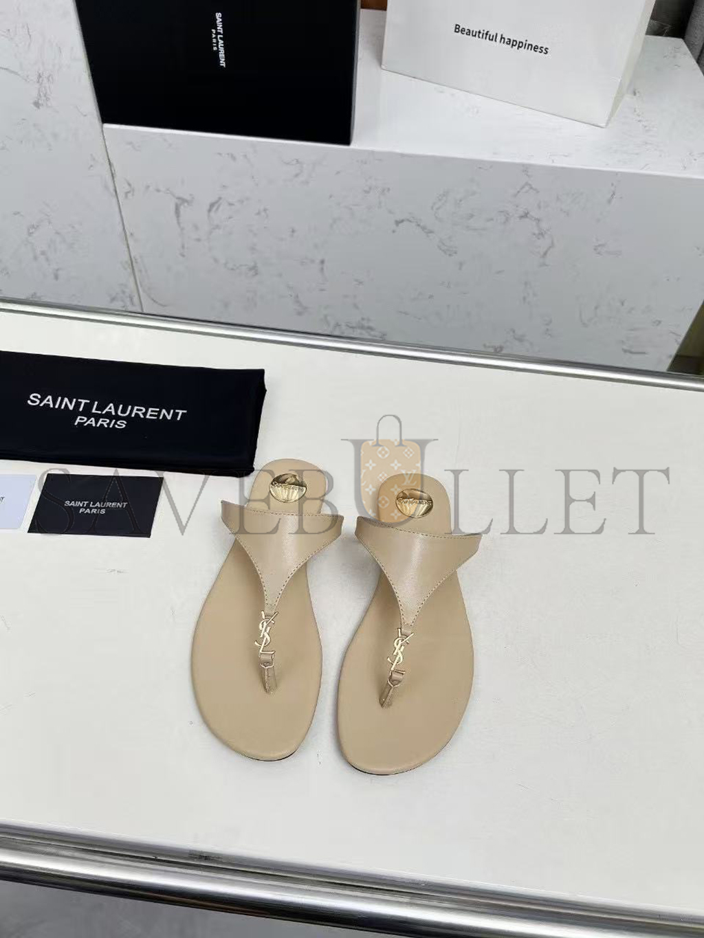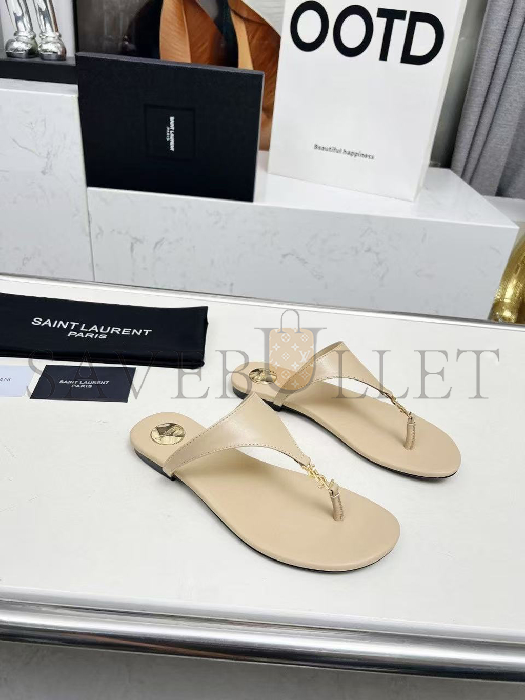 YSL CASSANDRE LEATHER THONG SLIPPER