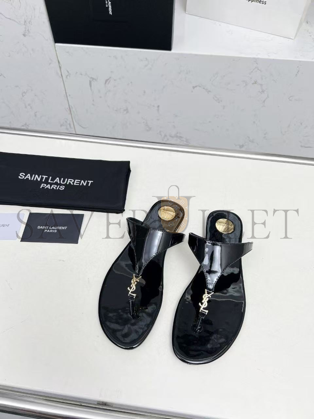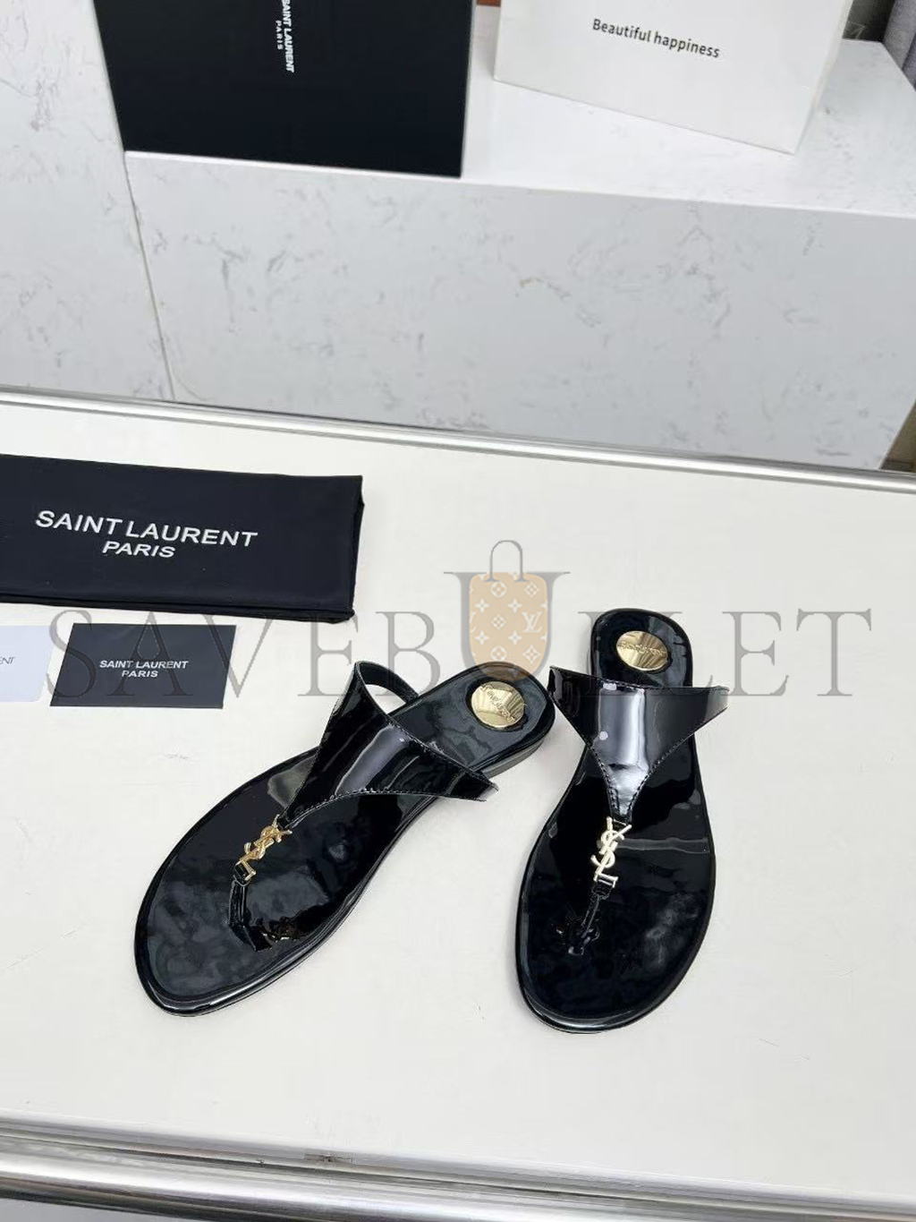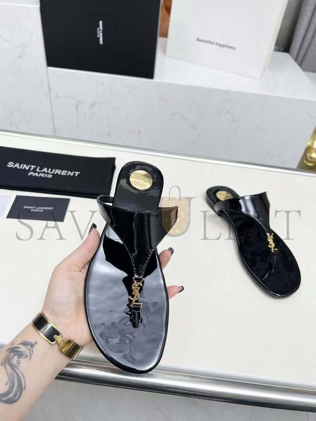 YSL CASSANDRE LEATHER THONG SLIPPER