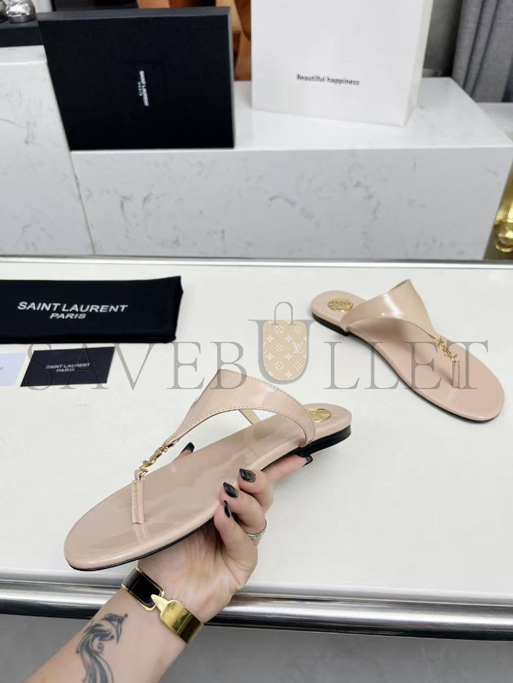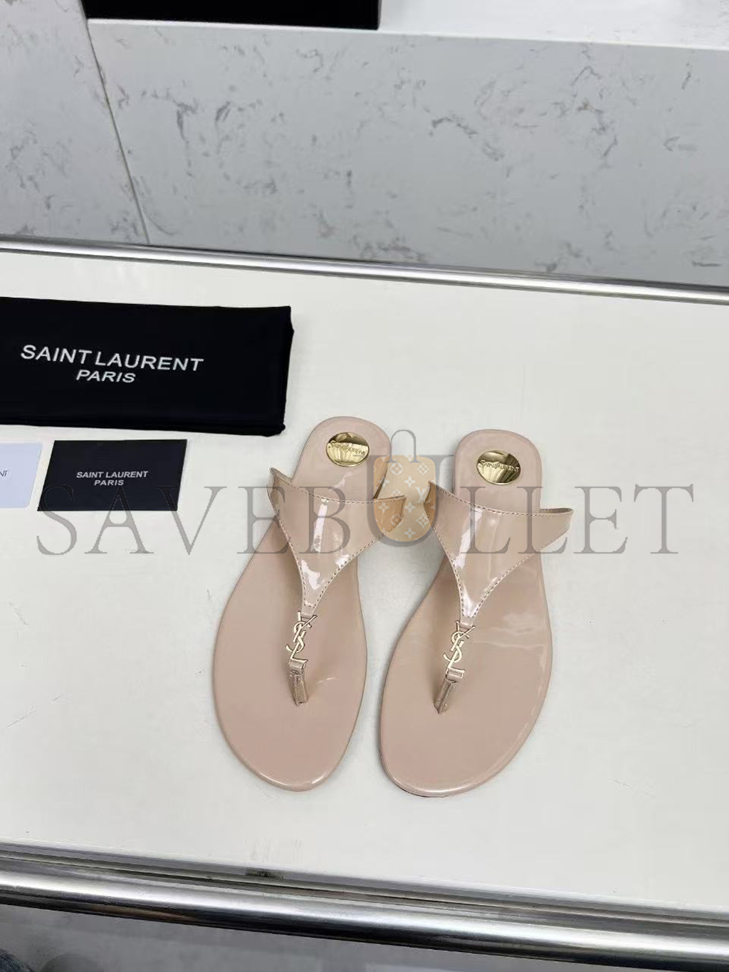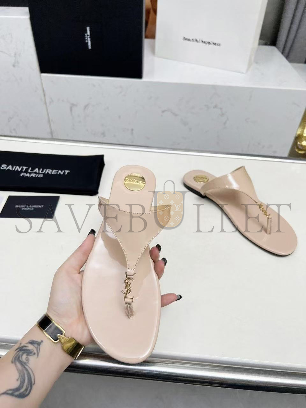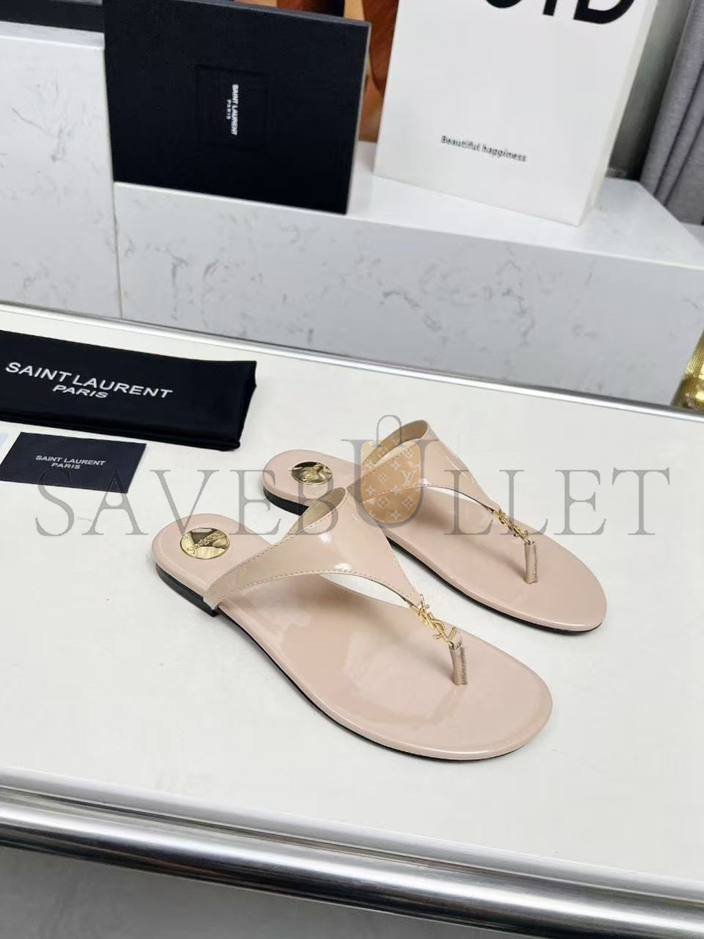 YSL CASSANDRE LEATHER THONG SLIPPER