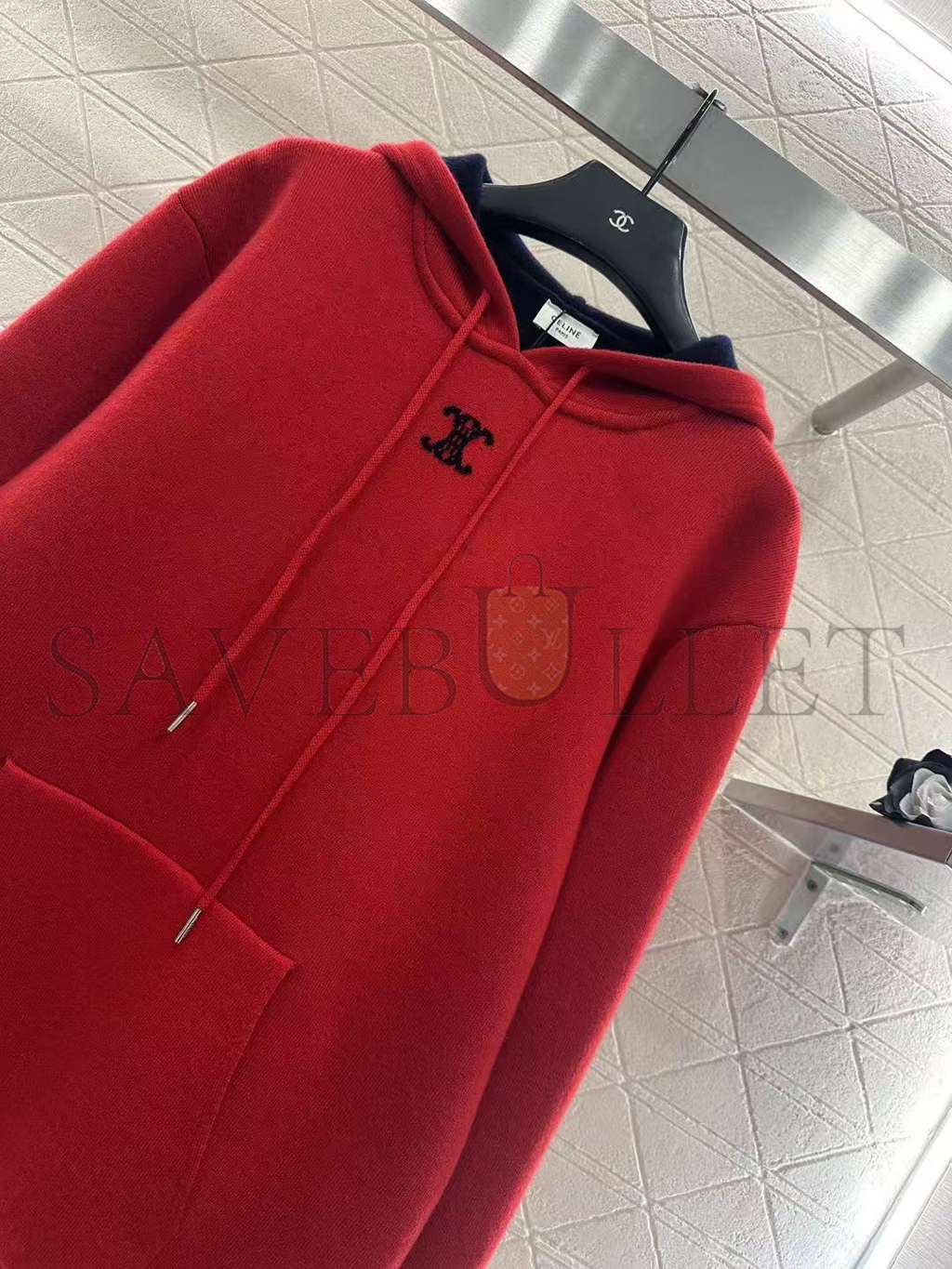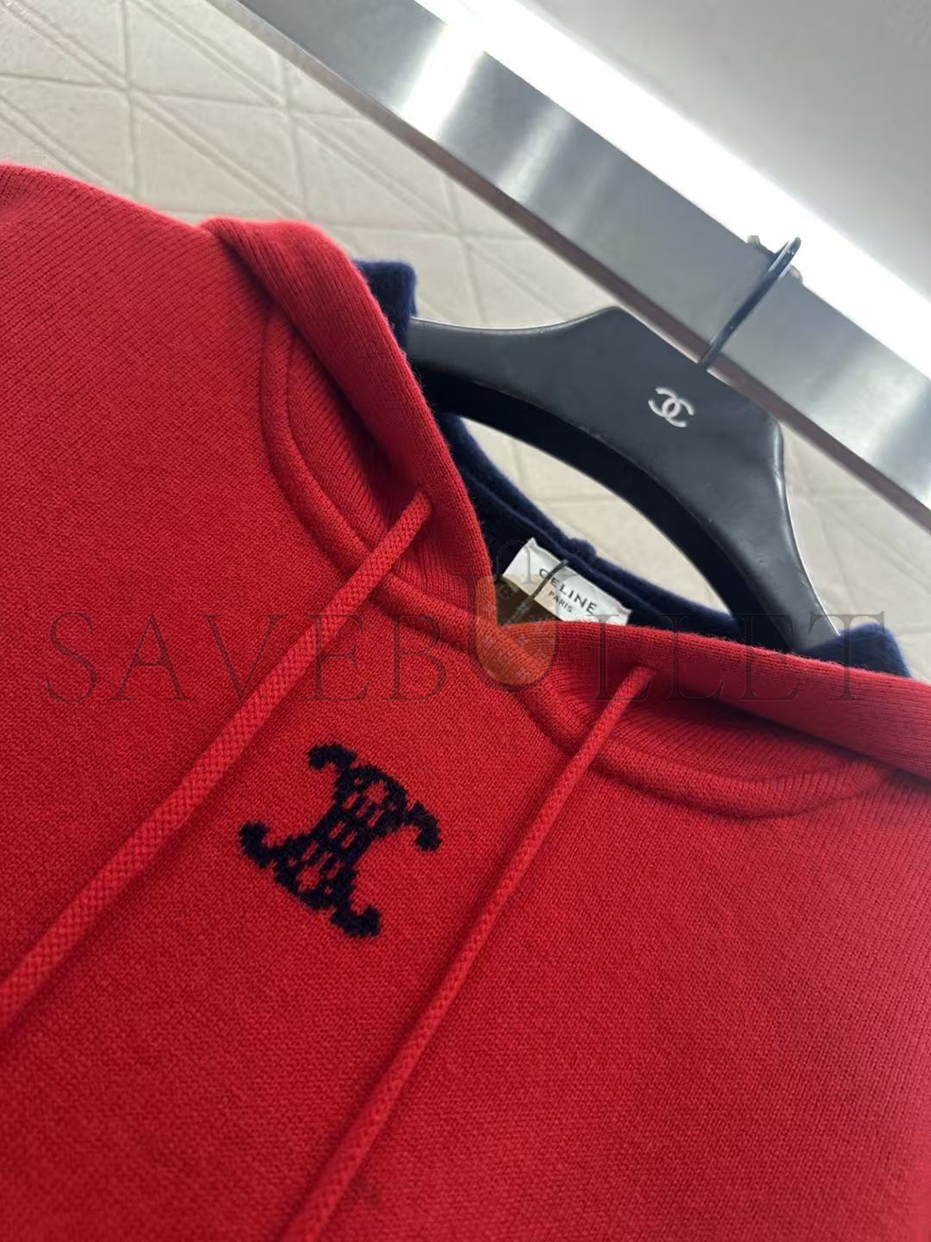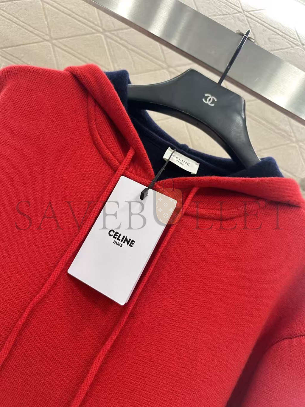 HOOD WITH ADJUSTABLE DRAWSTRING AND CELINE PARIS-ENGRAVED METAL AGLETS