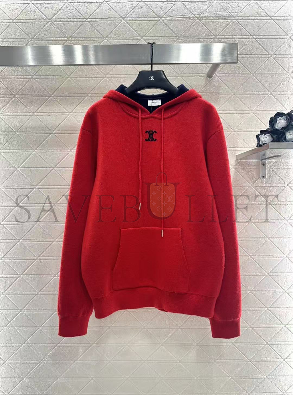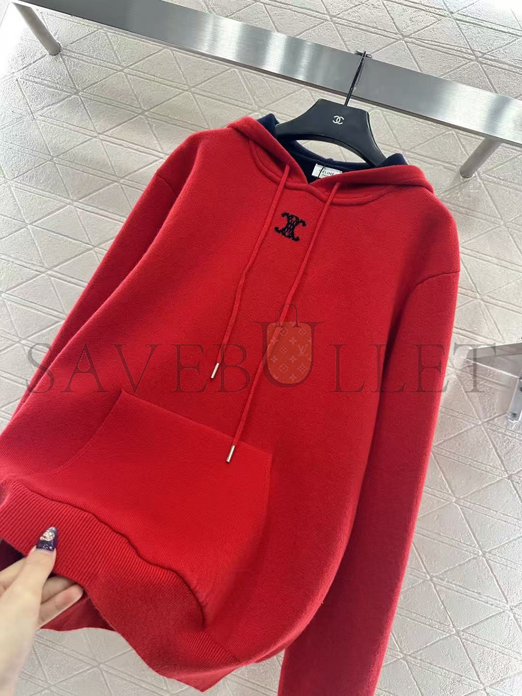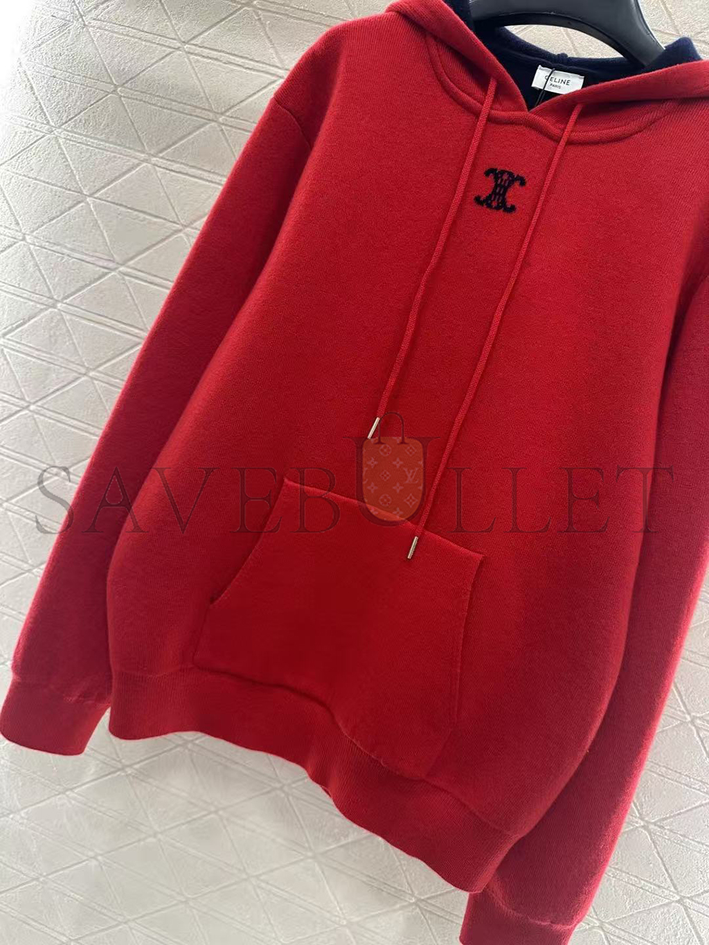 HOOD WITH ADJUSTABLE DRAWSTRING AND CELINE PARIS-ENGRAVED METAL AGLETS