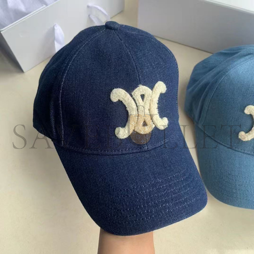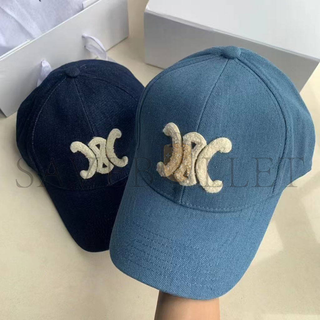 CELINE TRIOMPHE BASEBALL CAP IN DENIM UNION WASH