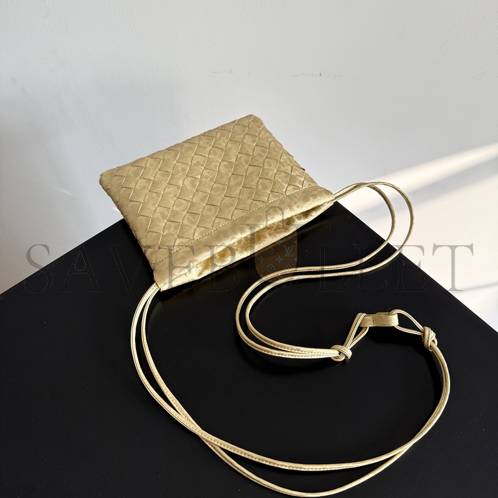 Intrecciato lamina satin leather pouch