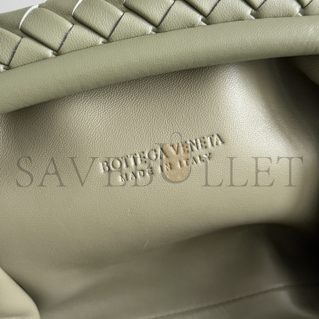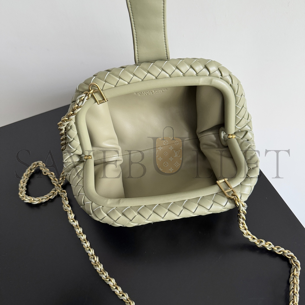 Small padded Intrecciato leather mini clutch with leather braided cross-body metal chain