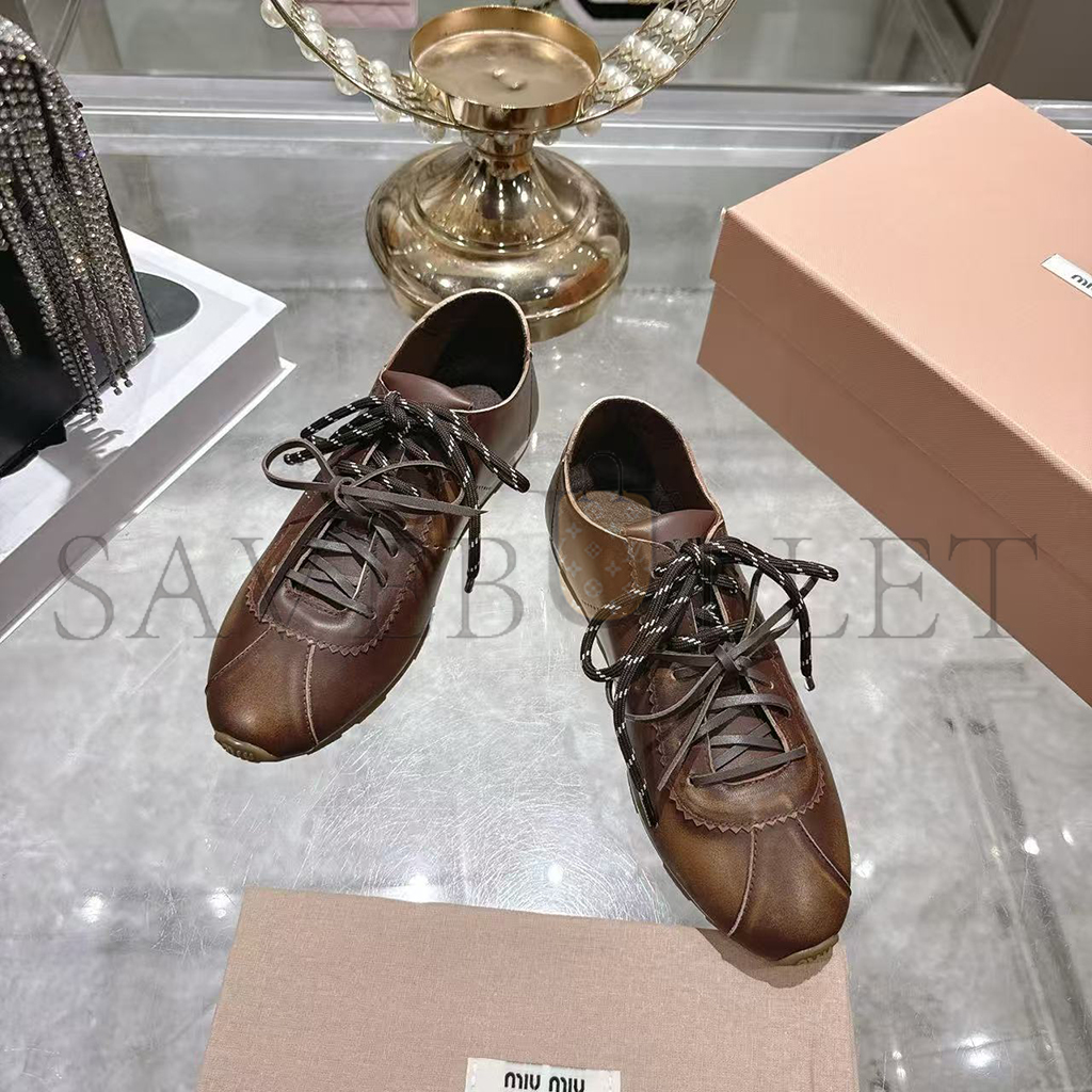 MIU MIU PLUME LEATHER SNEAKERS 5E602E