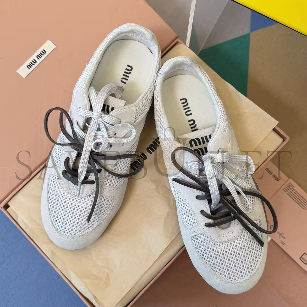 MIU MIU GYMNASIUM MESH AND SUEDE SNEAKERS 5E589E