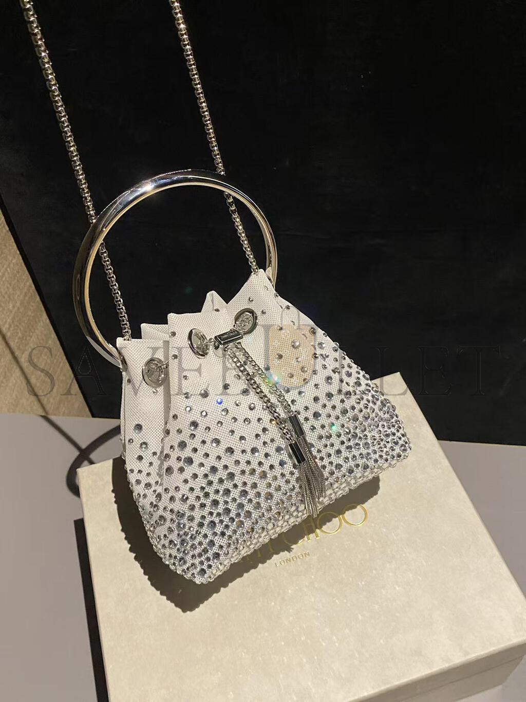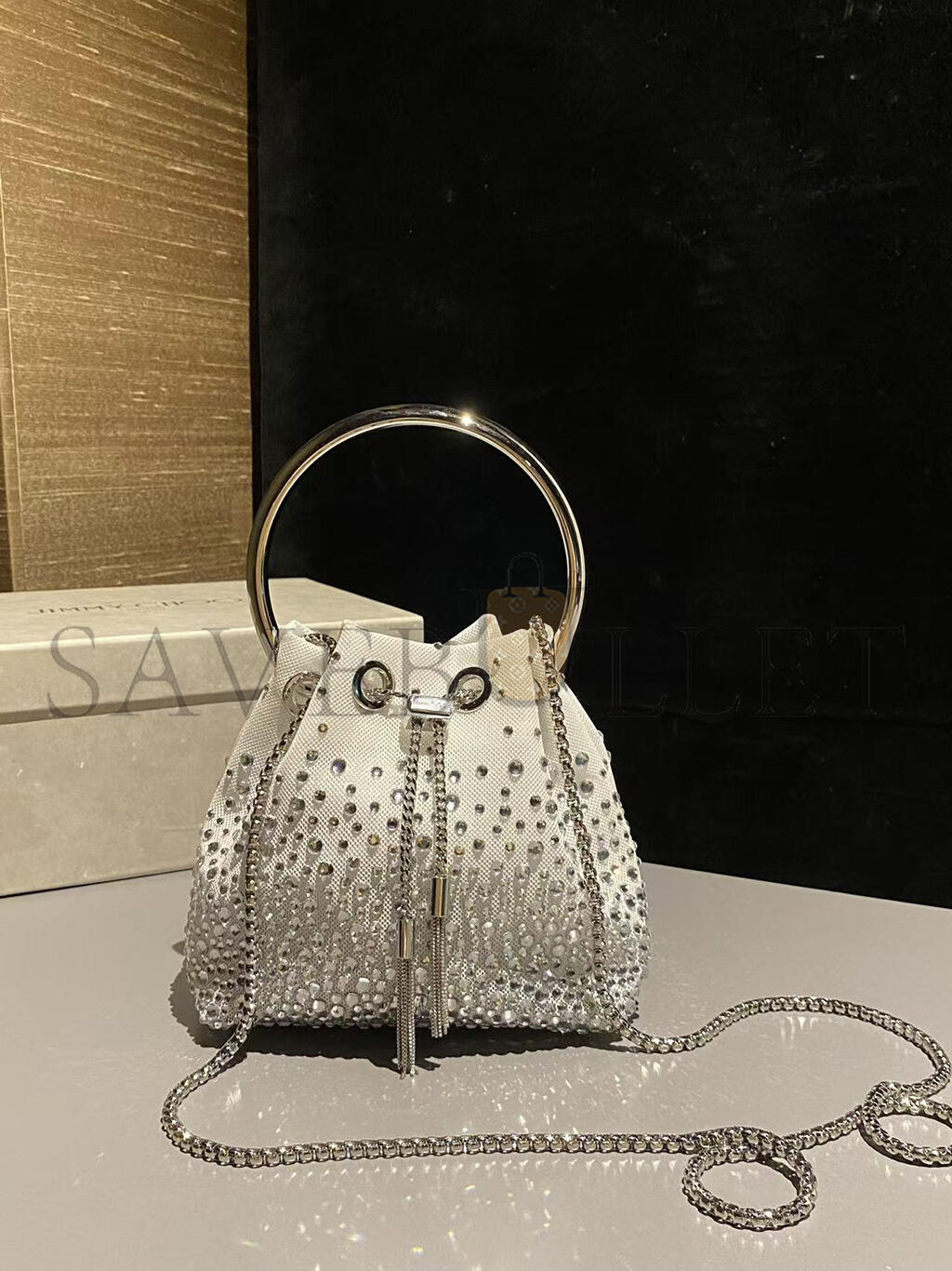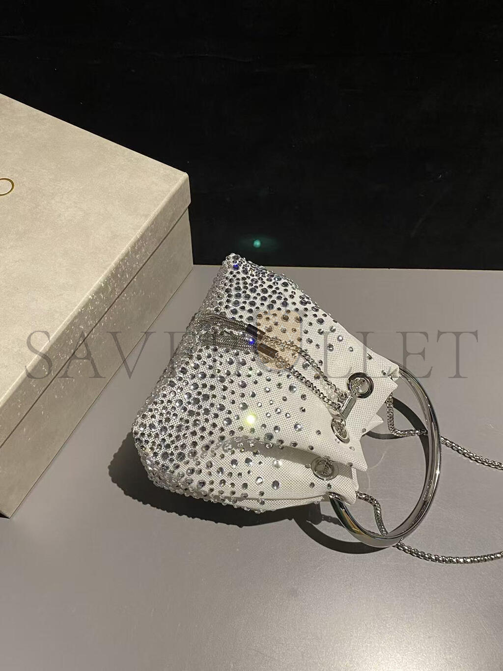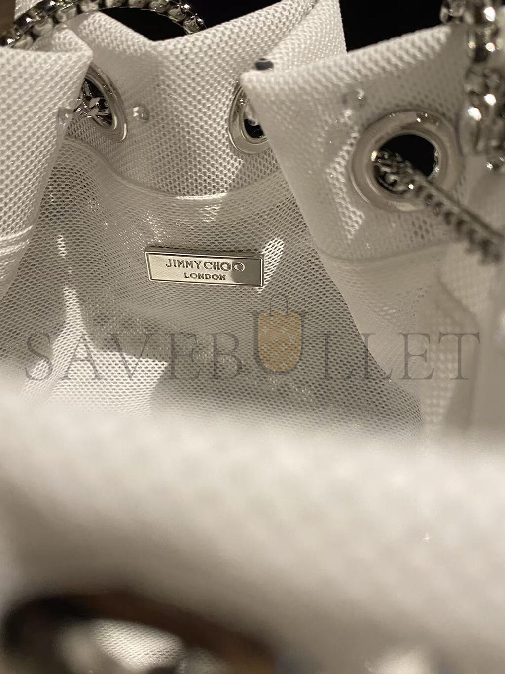 JIMMY CHOO BON BON WHITE CRYSTAL MESH HANDBAG BONBONVUQ (15*14*9.5cm)