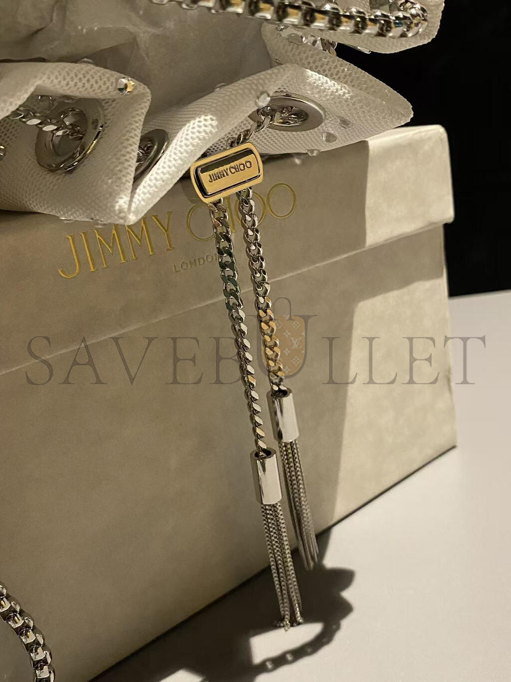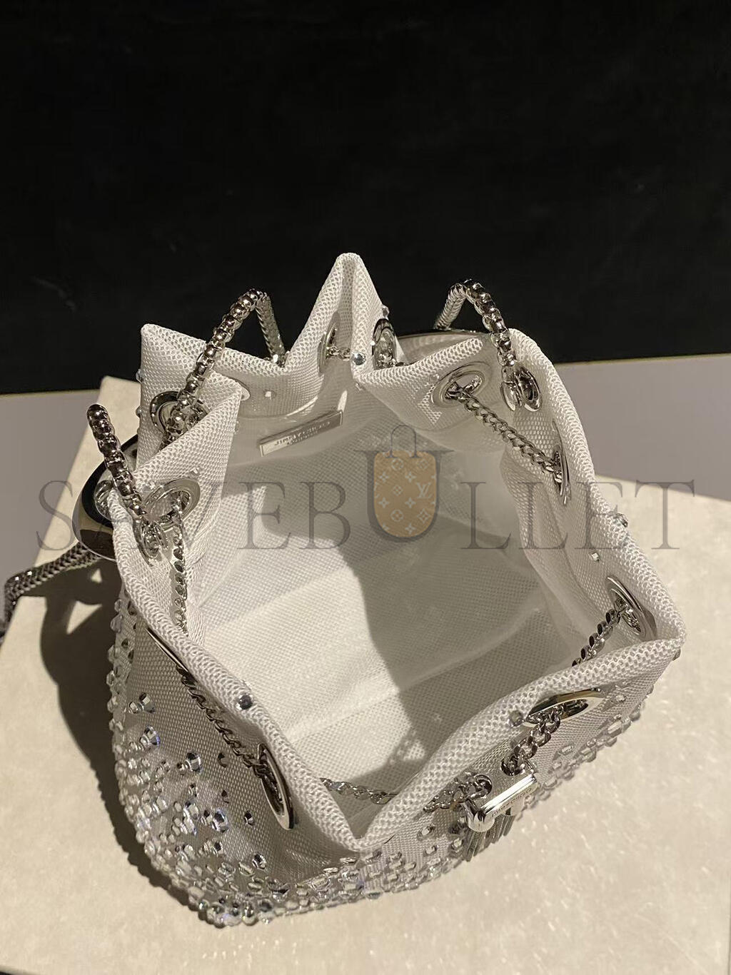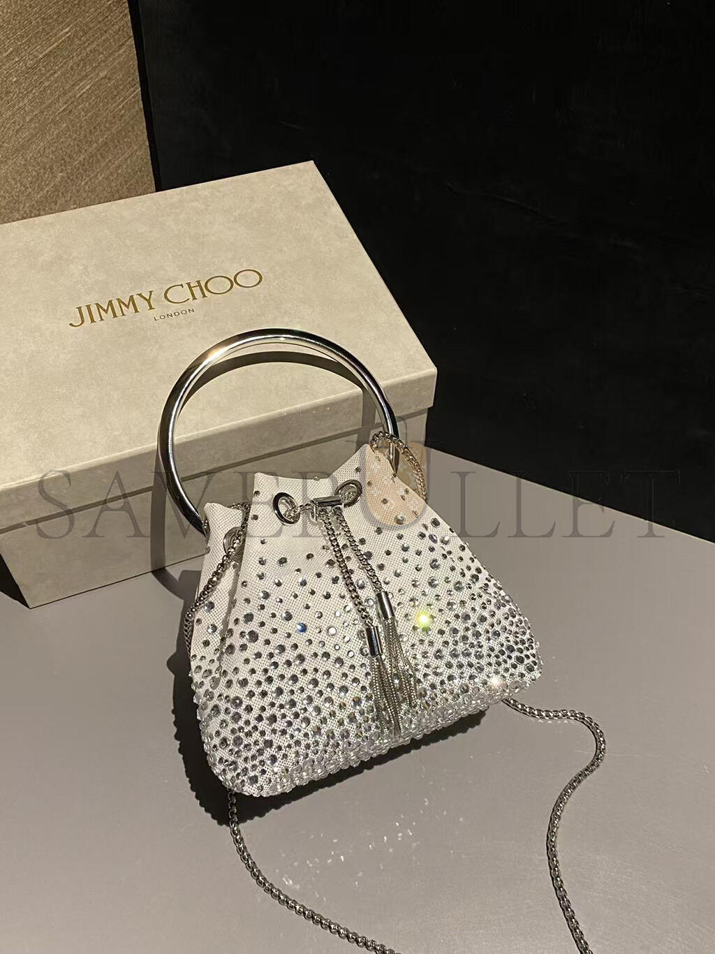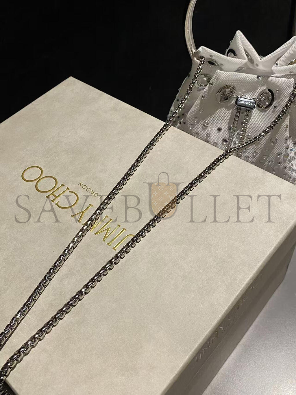 JIMMY CHOO BON BON WHITE CRYSTAL MESH HANDBAG BONBONVUQ (15*14*9.5cm)