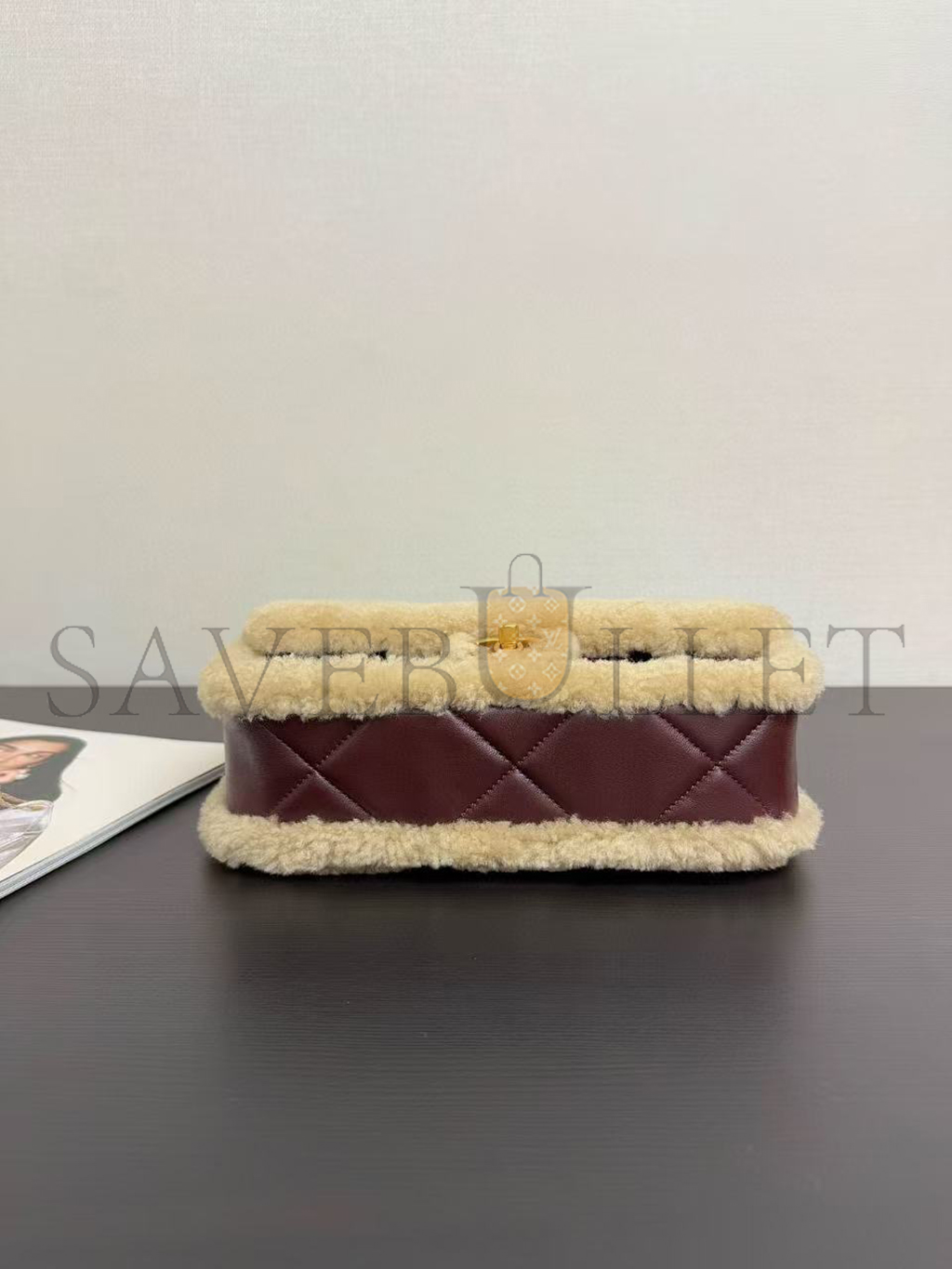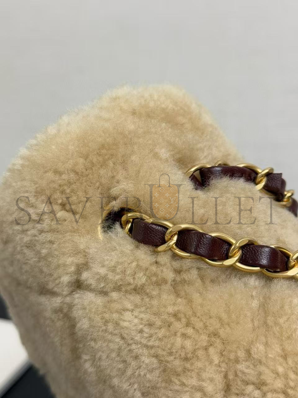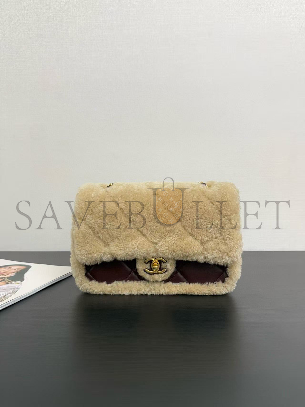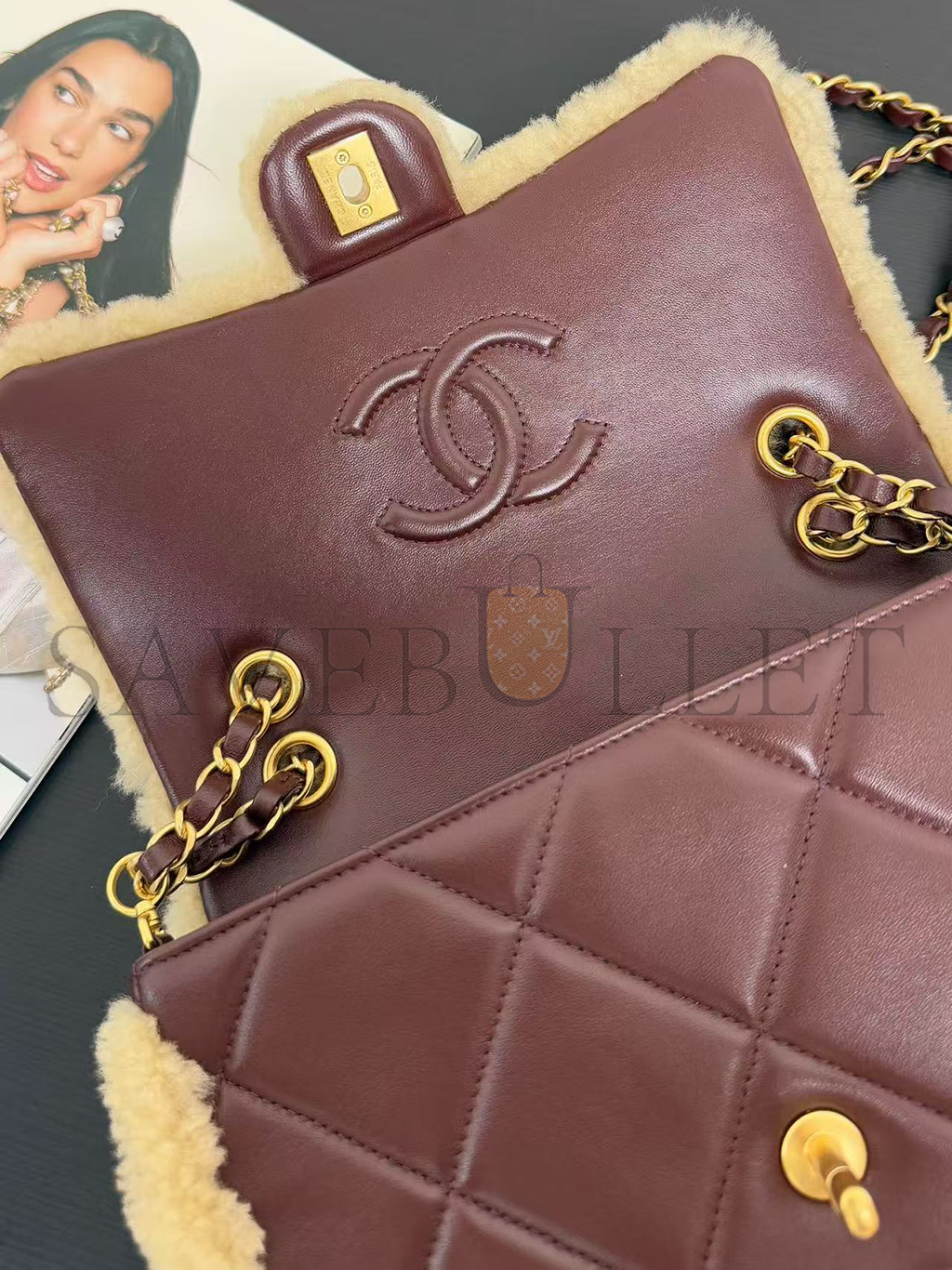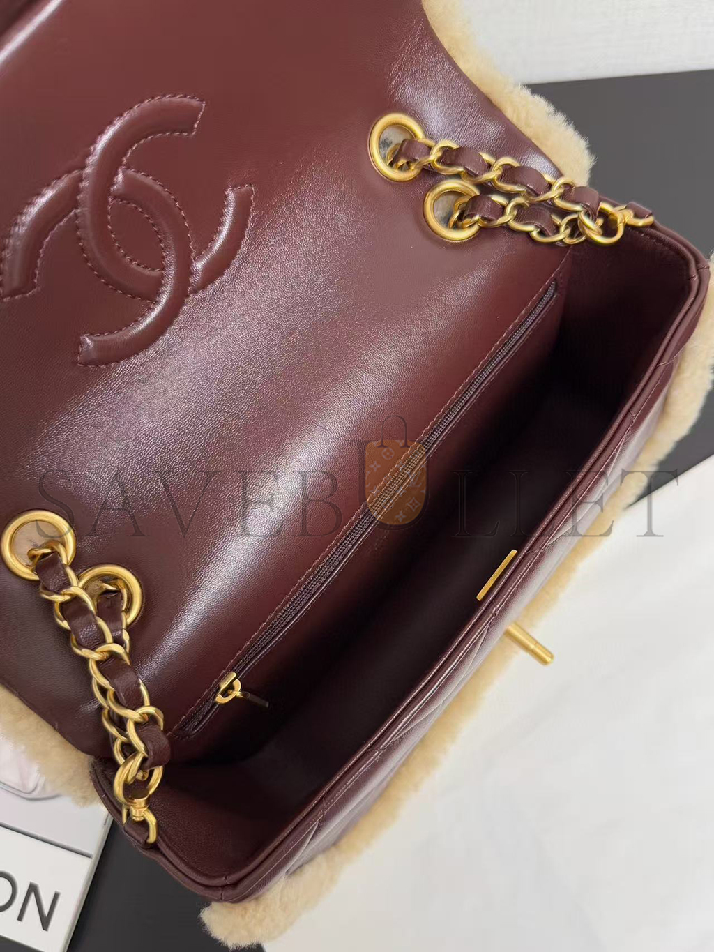 CHANEL MEDIUM FLAP BAG DARK BROWN AND SHEARLING AS5149 (25*17*6cm)