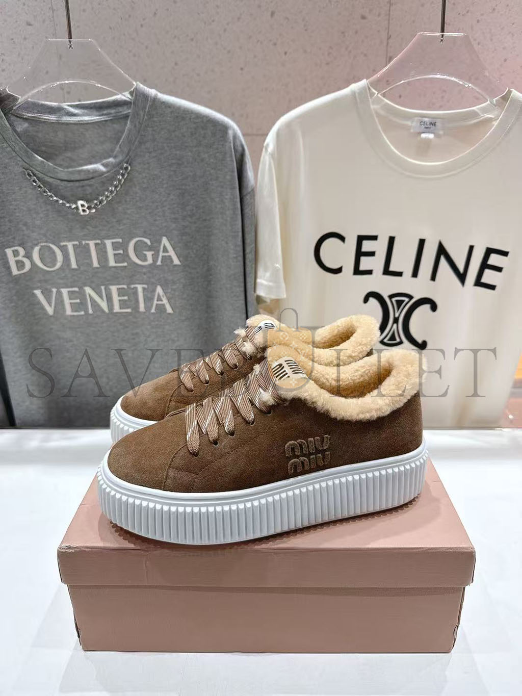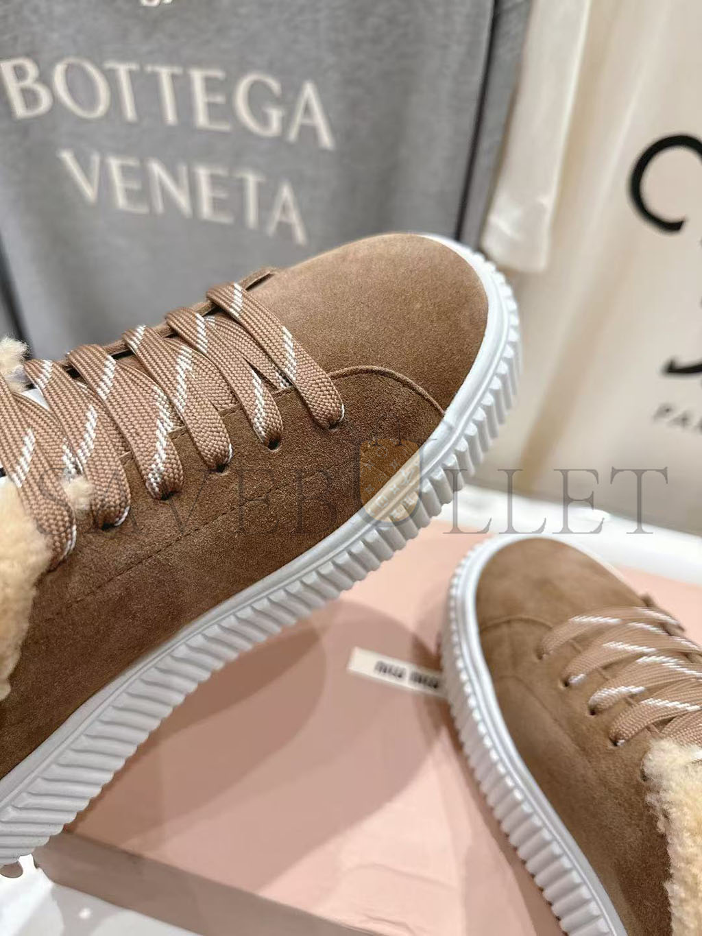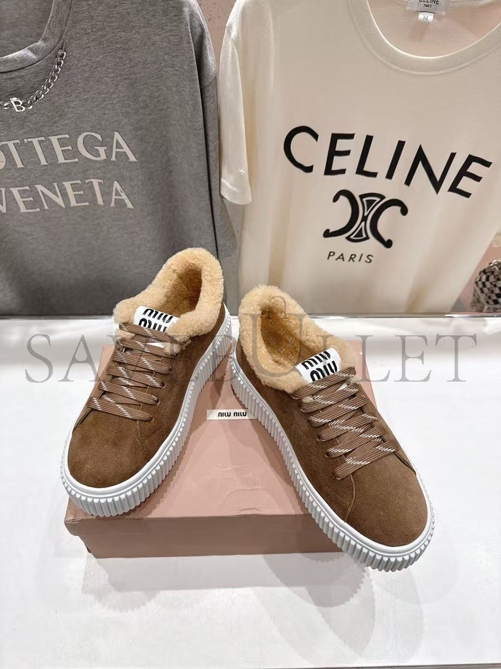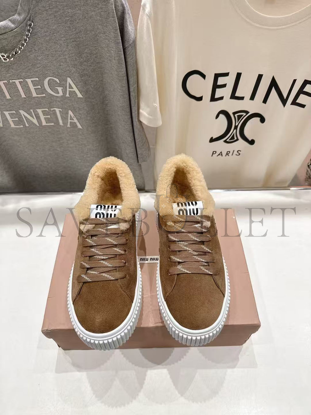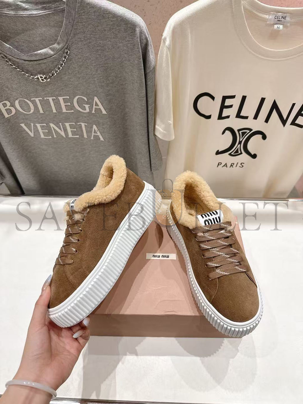 MIU MIU SUEDE AND SHEARLING SNEAKERS 5E389E