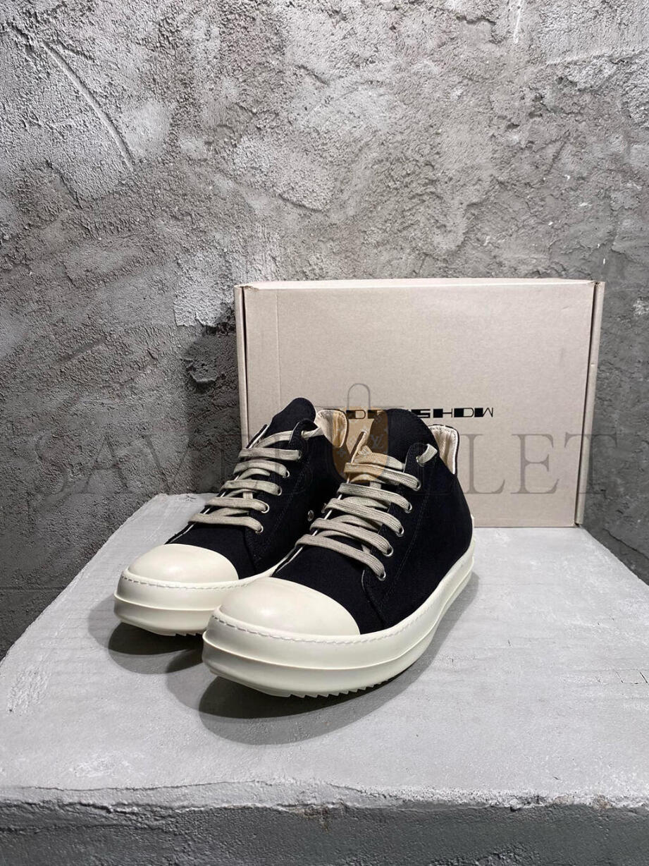RICK OWENS DRKSHDW TWILL LOW SNEAKER IN BLACK DU21S2802
