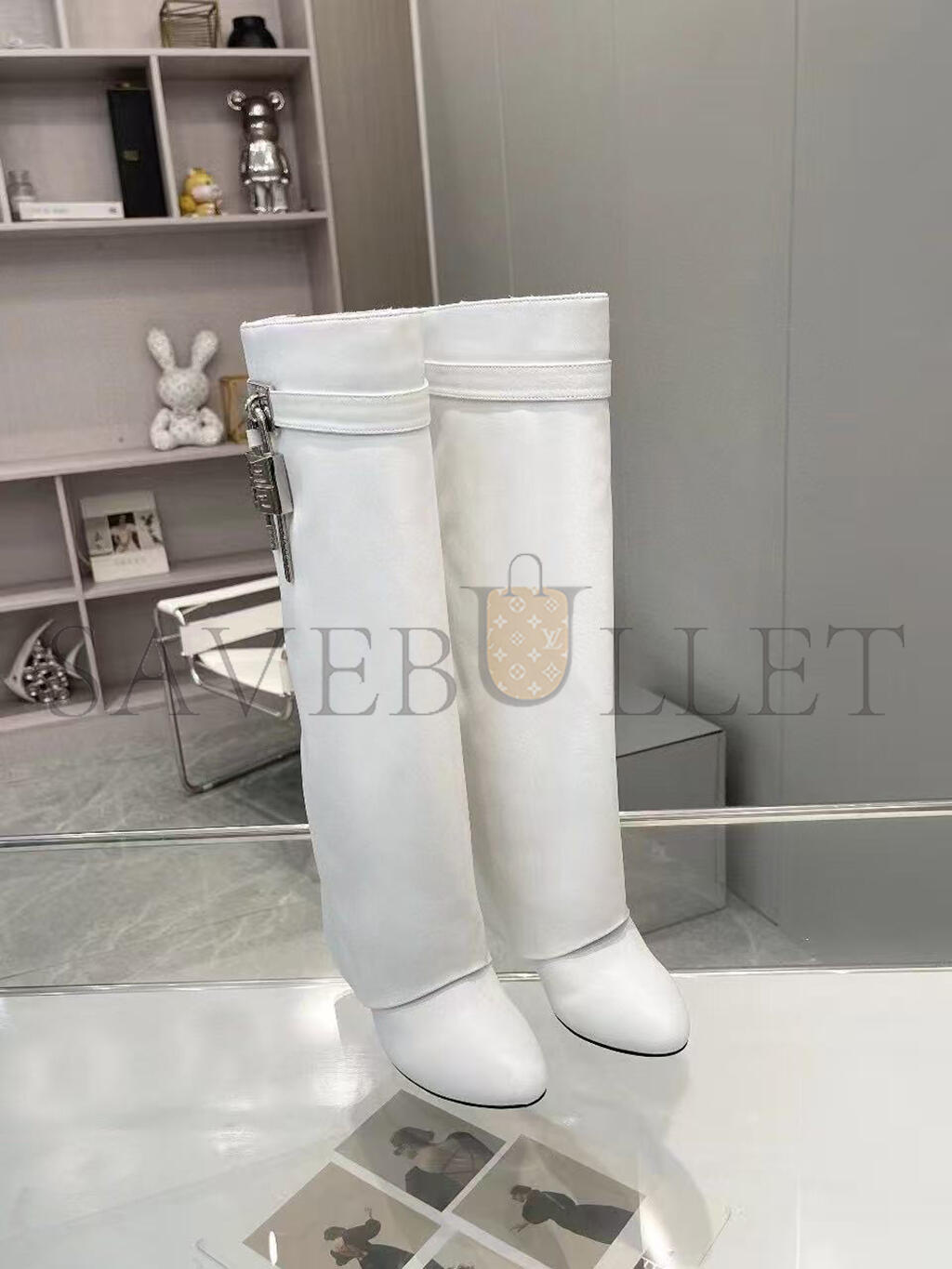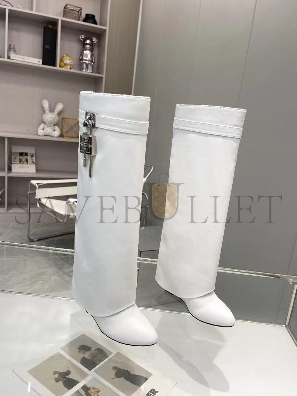 GIVENCHY SHARK LOCK LEATHER KNEE-HIGH BOOTS