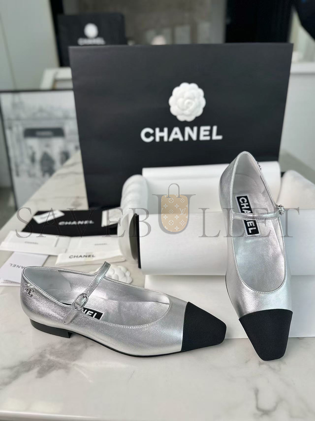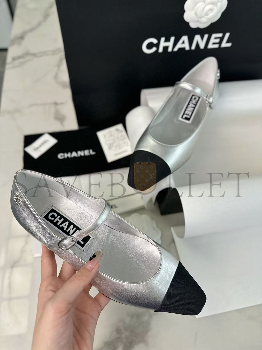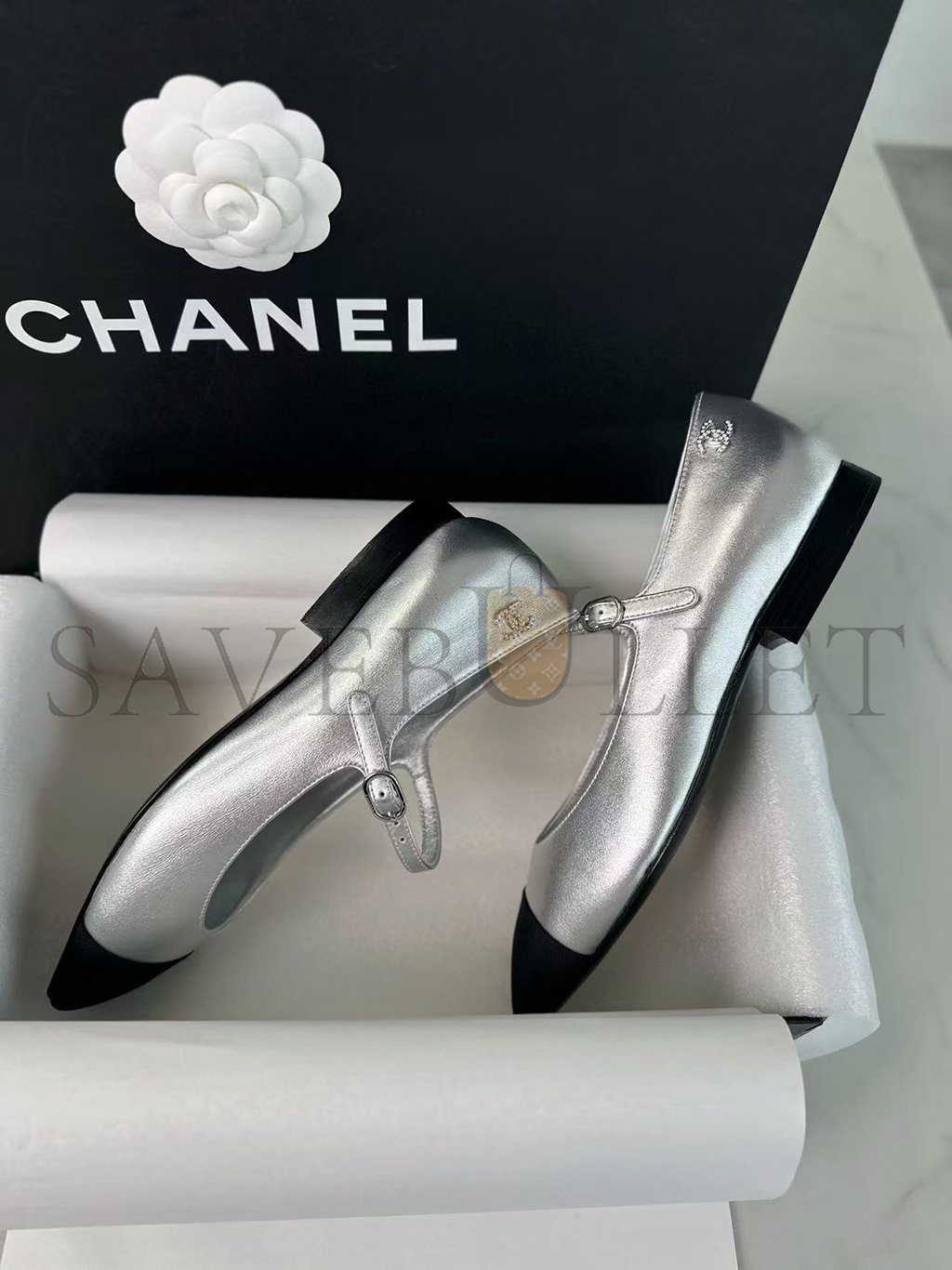 CHANEL FLATS IN SILVER G45484