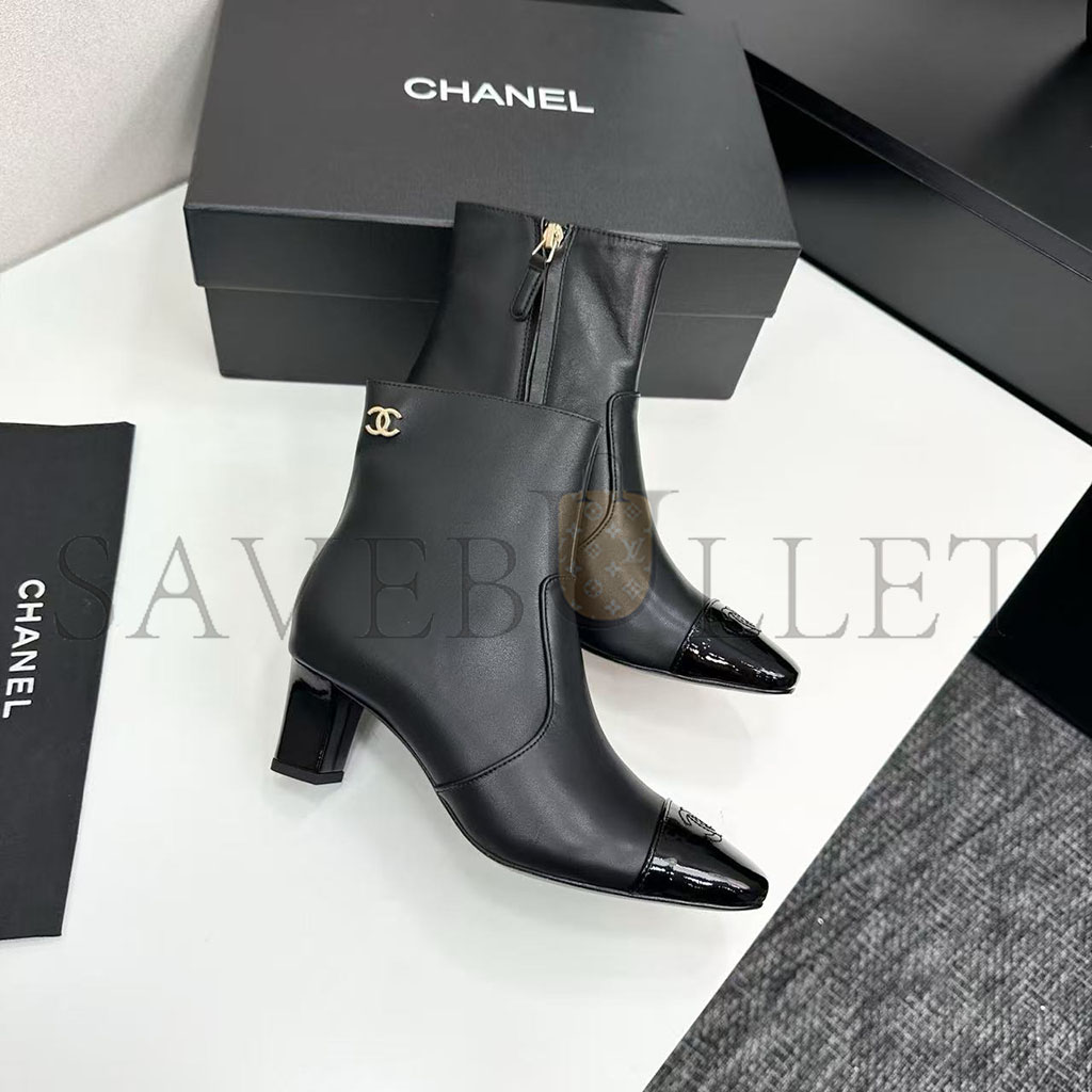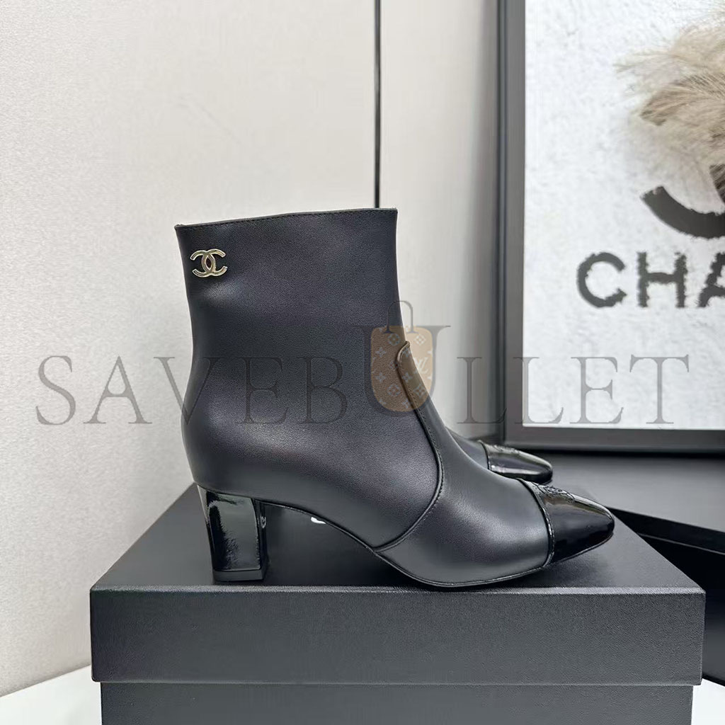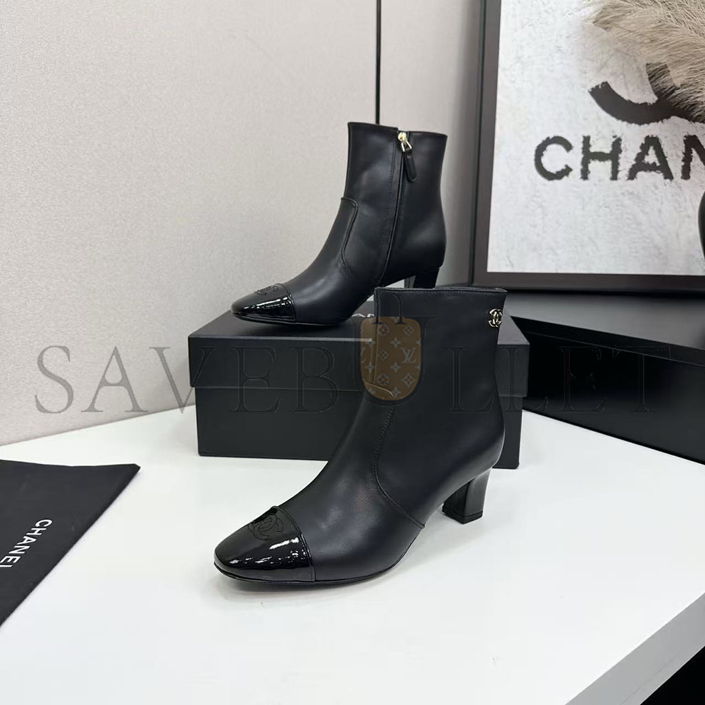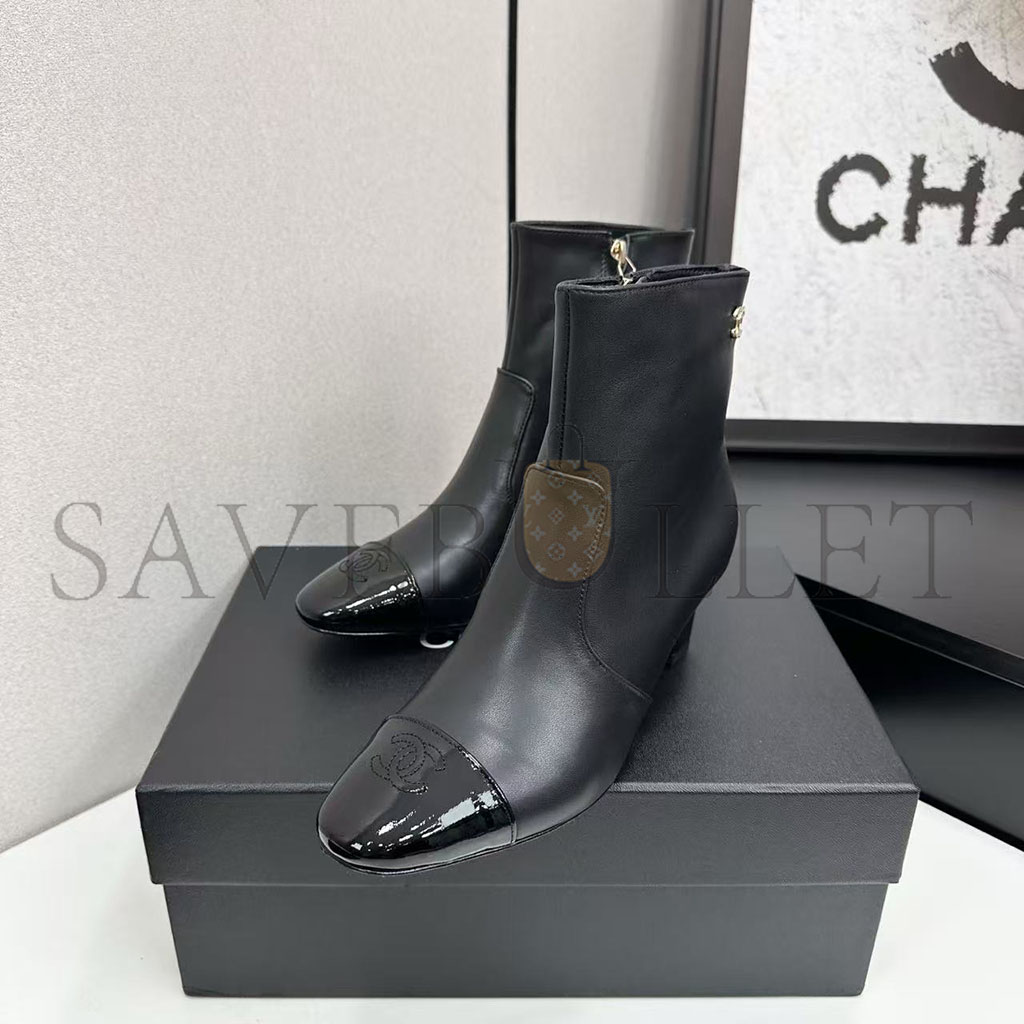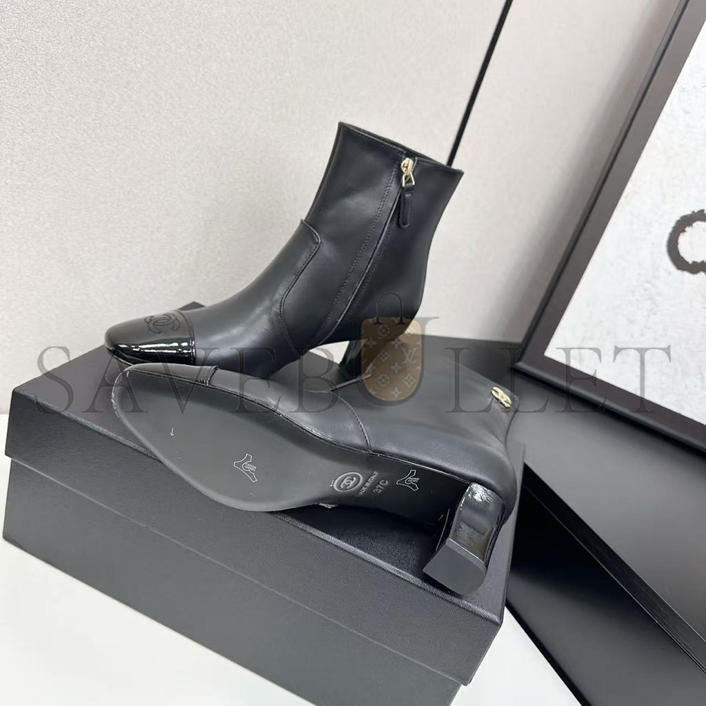 CHANEL STRETCH LAMBSKIN CAP TOE CC SHORT BOOTS G46686