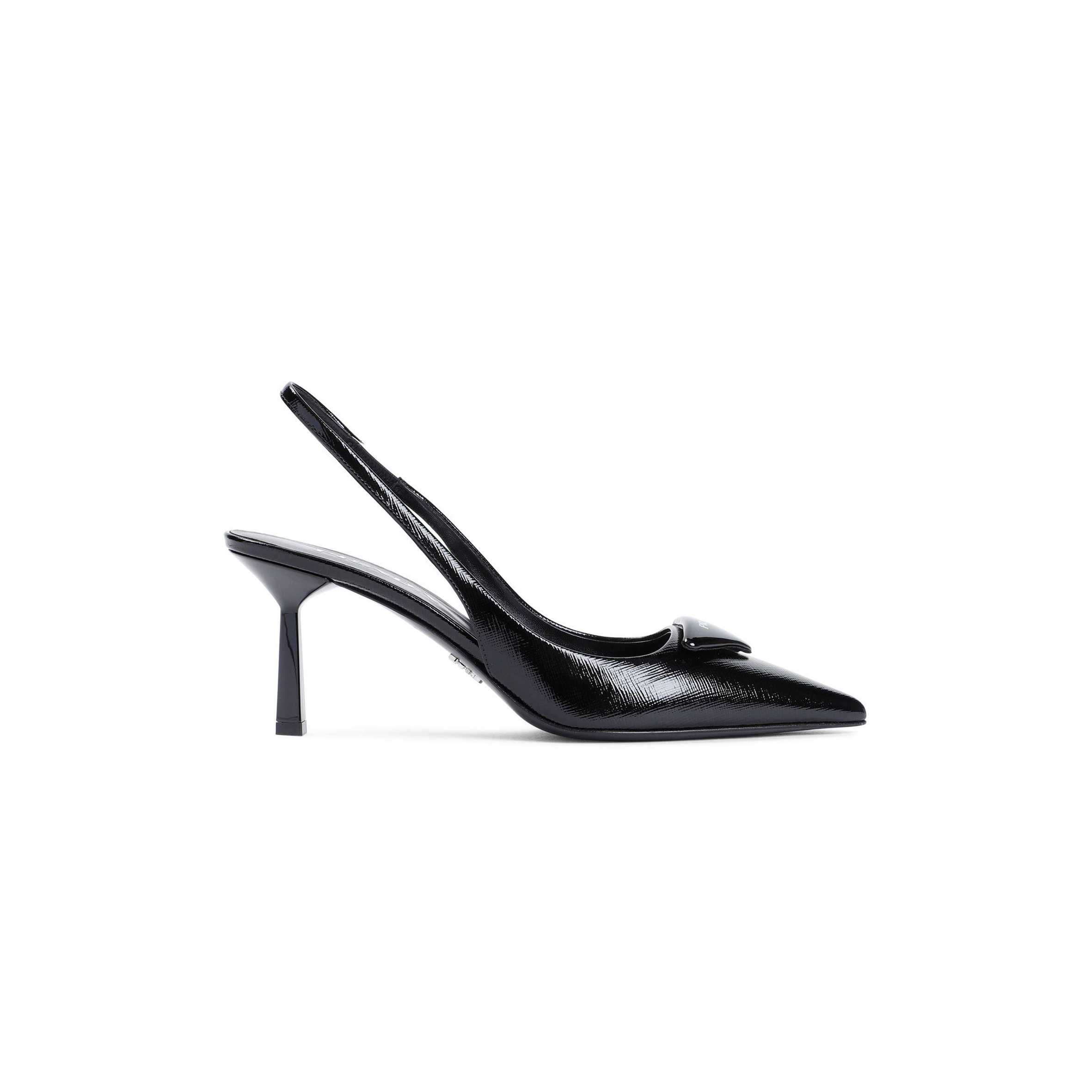 Product code: 1I901M_XUW_F0304_F_DD55Screen-printed leather triangle logoLeather sole and rubber heel cap with metal lettering logoVarnished heel, height 55 mm..