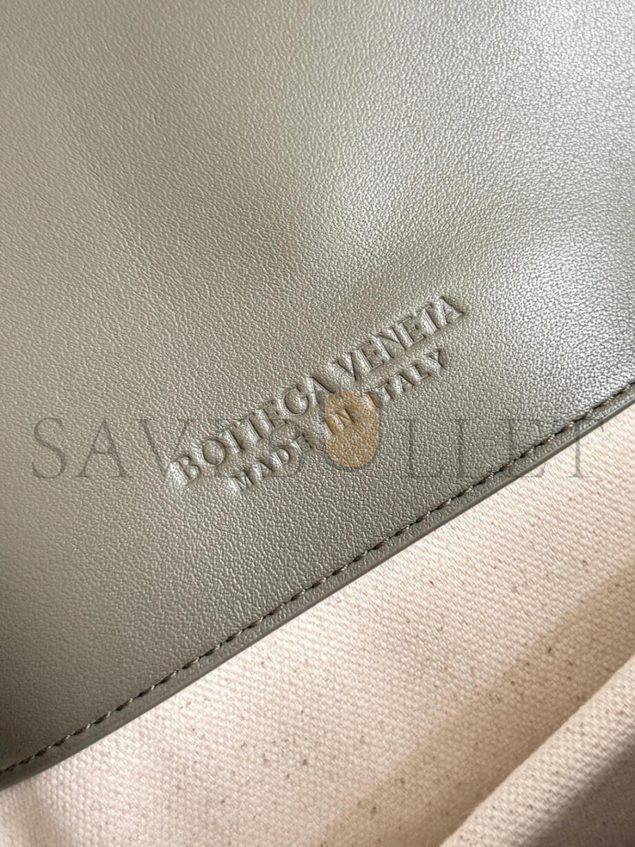 Intrecciato leather shoulder bagLeather tie closure with hidden magnetLining: UnlinedColor: Sea SaltHardware: Brass finishProduct code: 844249V4SC0101..