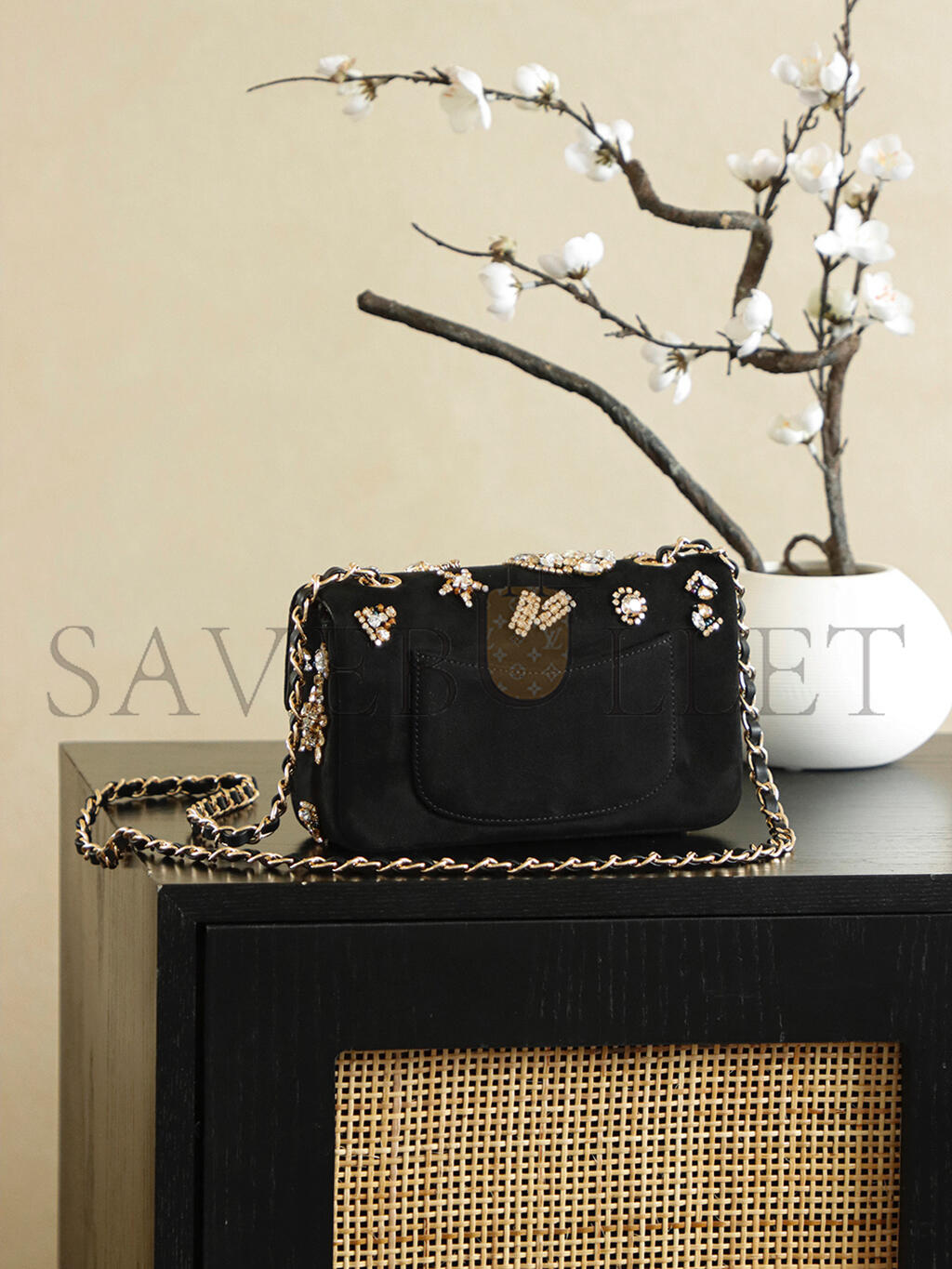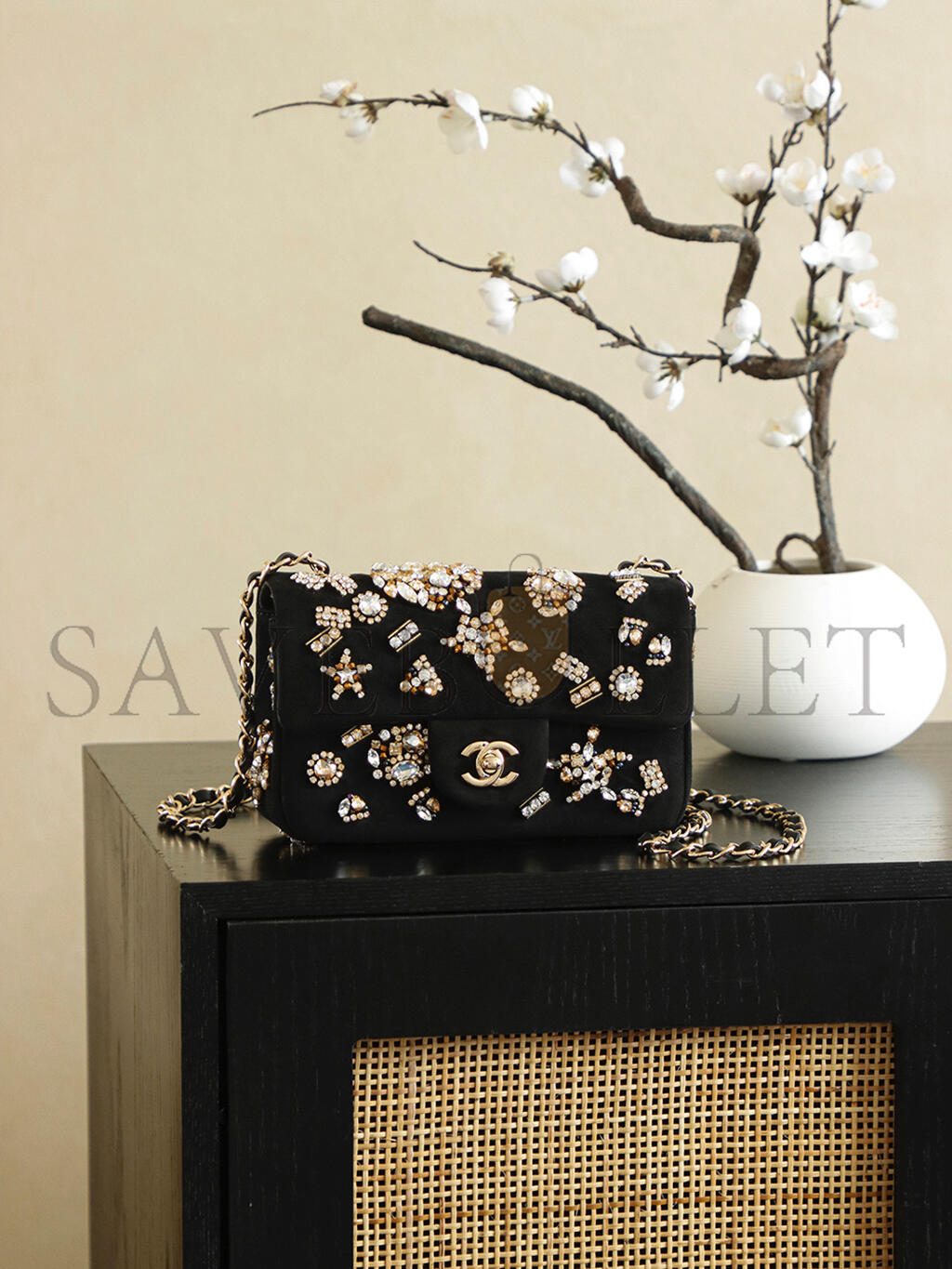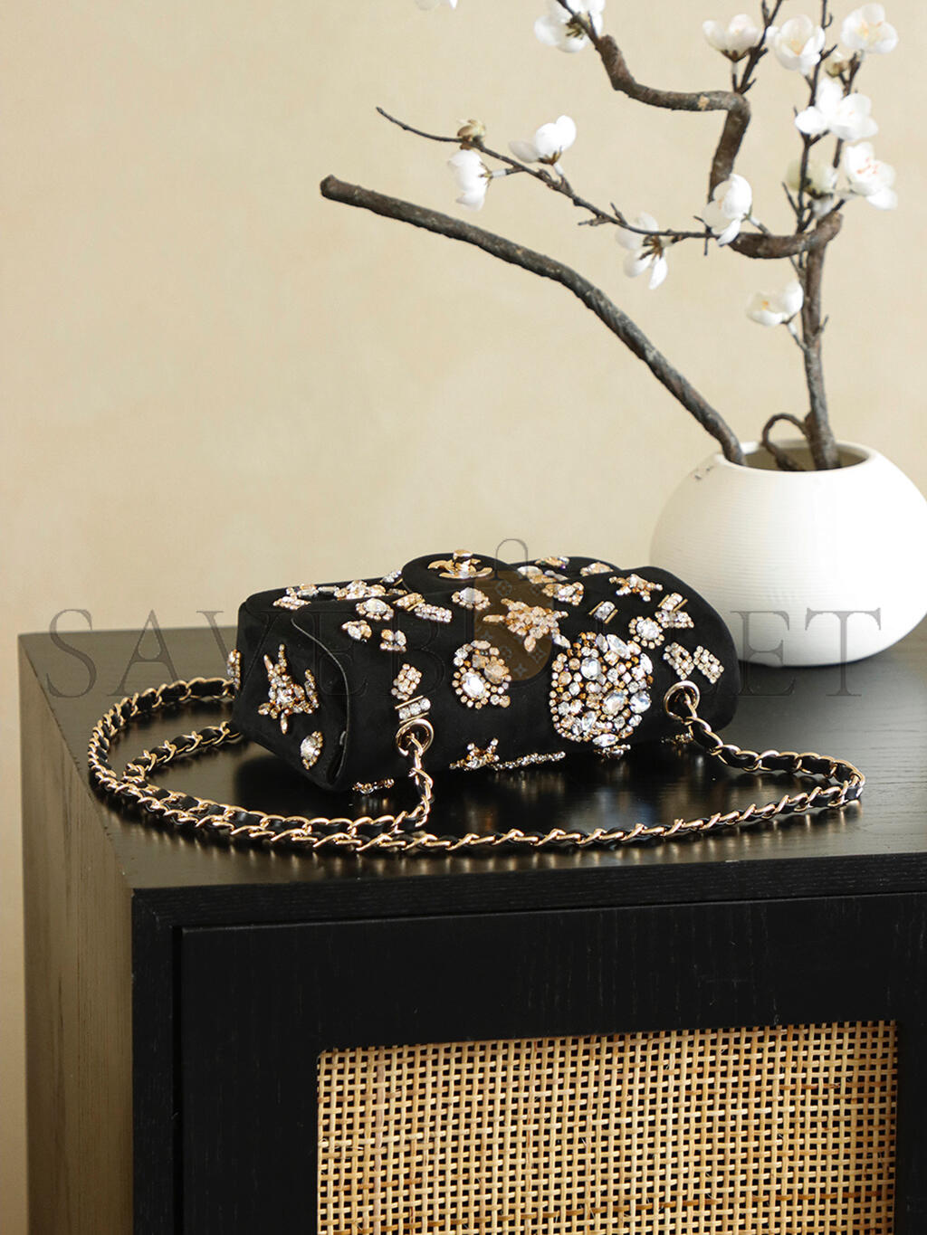 CHANEL PEARL CRUSH VANITY CASE CHAIN SHOULDER BAG LAMBSKIN BEIGE (16*9.5*8cm)