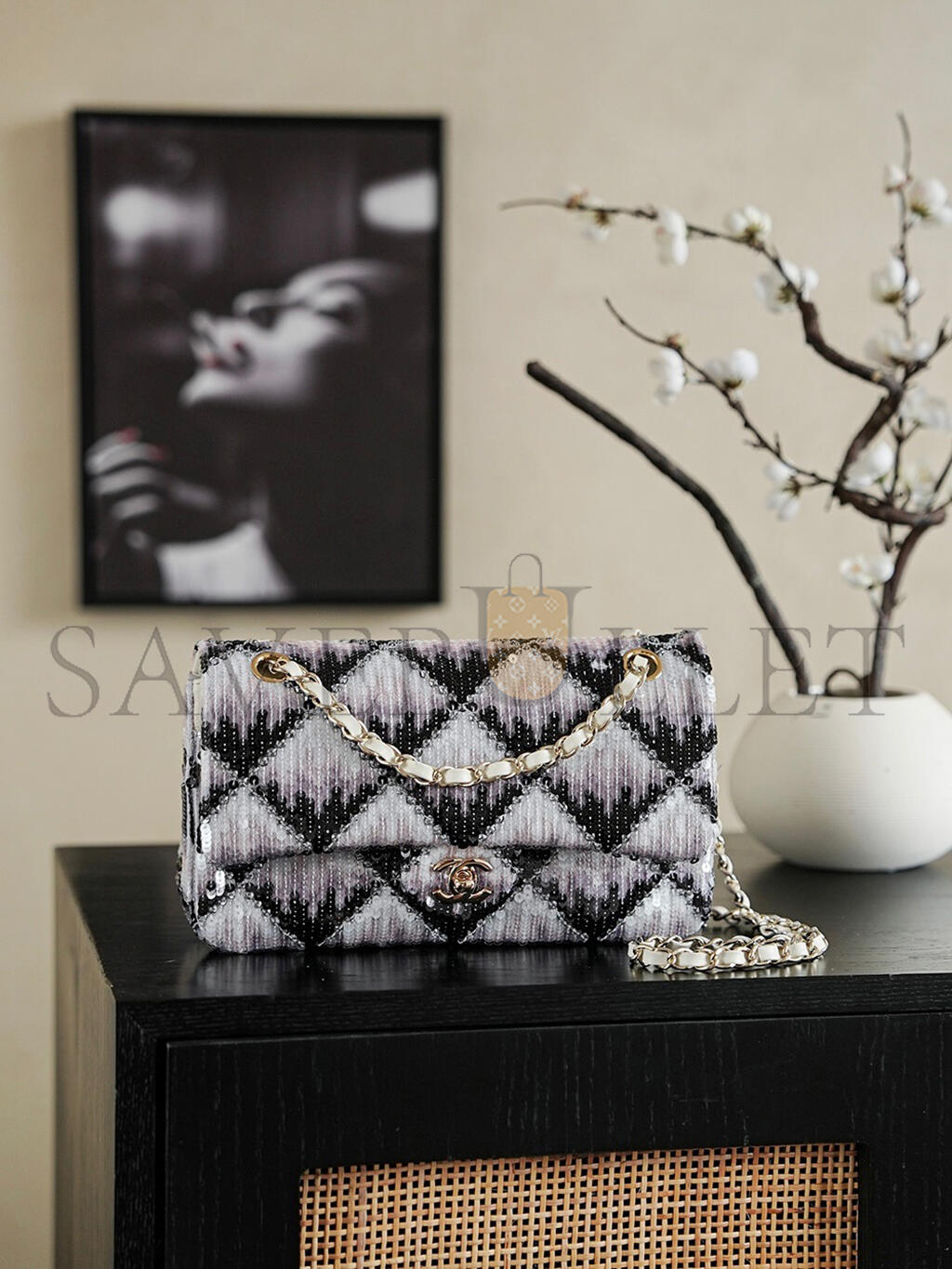 CHANEL 26C CLASSIC FLAP SEQUIN BAG A01112 (25.5*15.5*6.5cm)