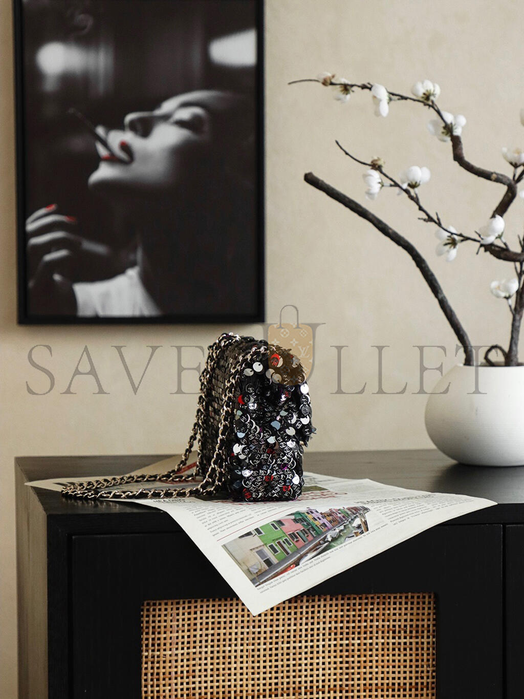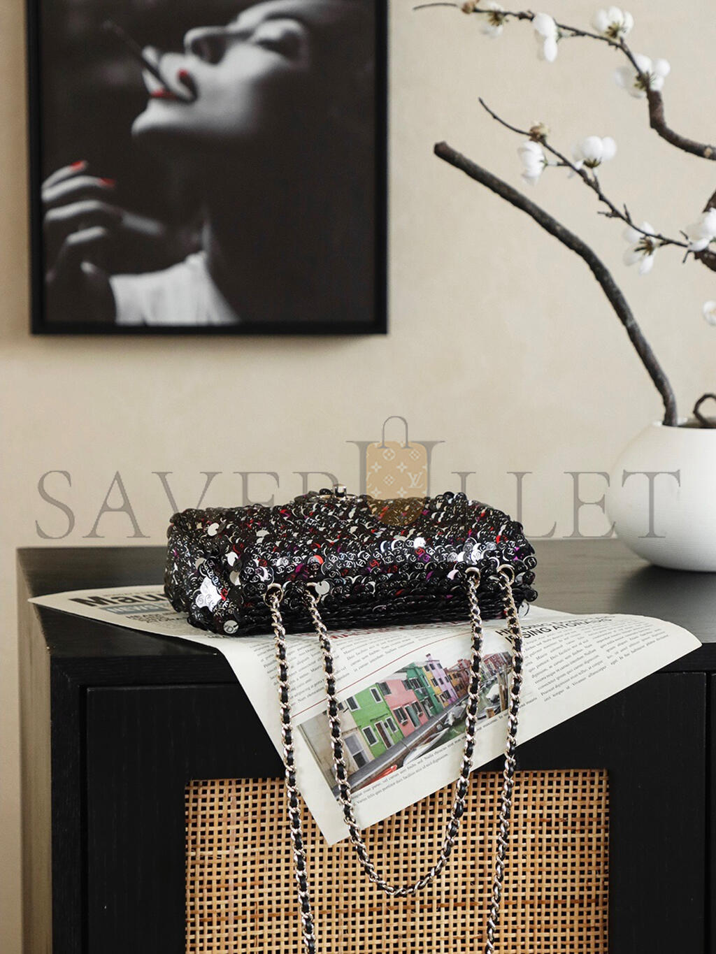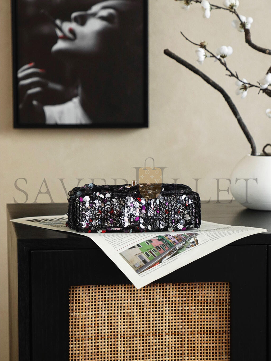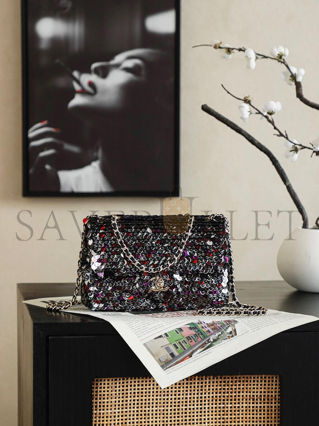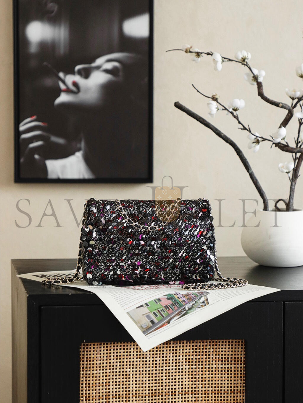 CHANEL 26C MINI CLASSIC FLAP SEQUIN BAG AS1116 (20*14*8cm)