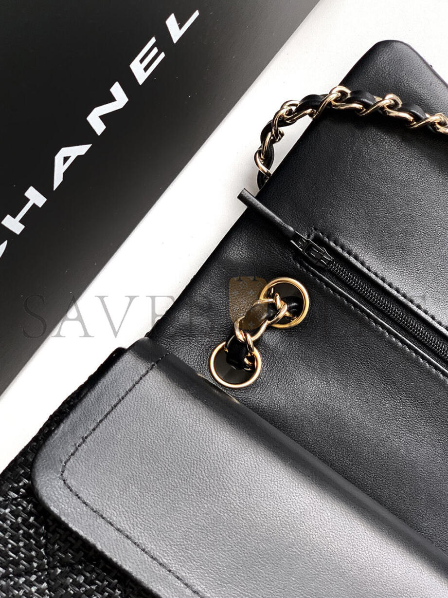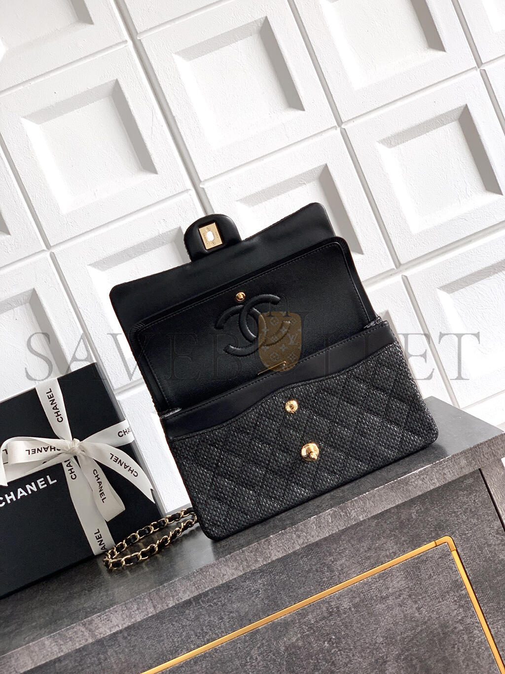 CHANEL 26C QUILTED MEDIUM CLASSIC FLAP WOVEN BAG (25.5*15.5*6.5cm)