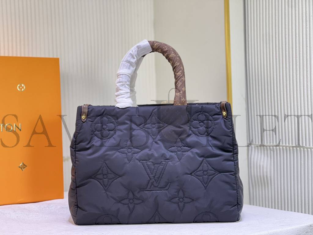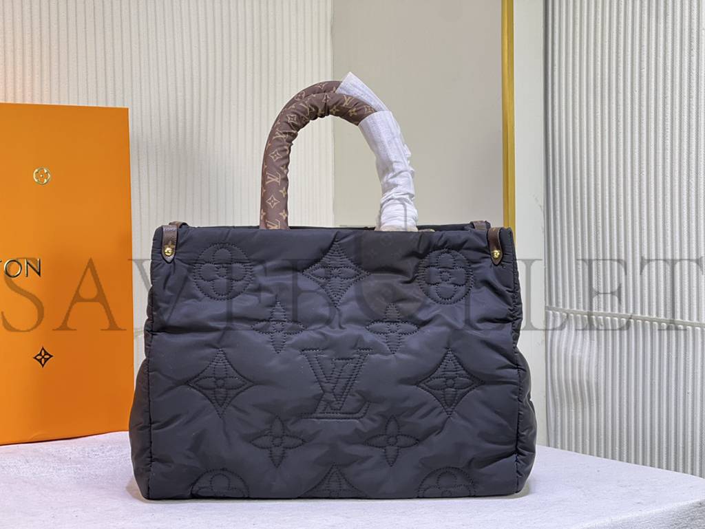 From the LV Pillow capsule collection for the 2022 winter season comes this OnTheGo MM tote. The bag’s eco-design integrates recycled and sustainable materials: the body is fashioned from recycled padded nylon, embroidered with Monogram motifs. Playful puffy top handles and long shoulder straps make this trendy carryall easy to style and wear.