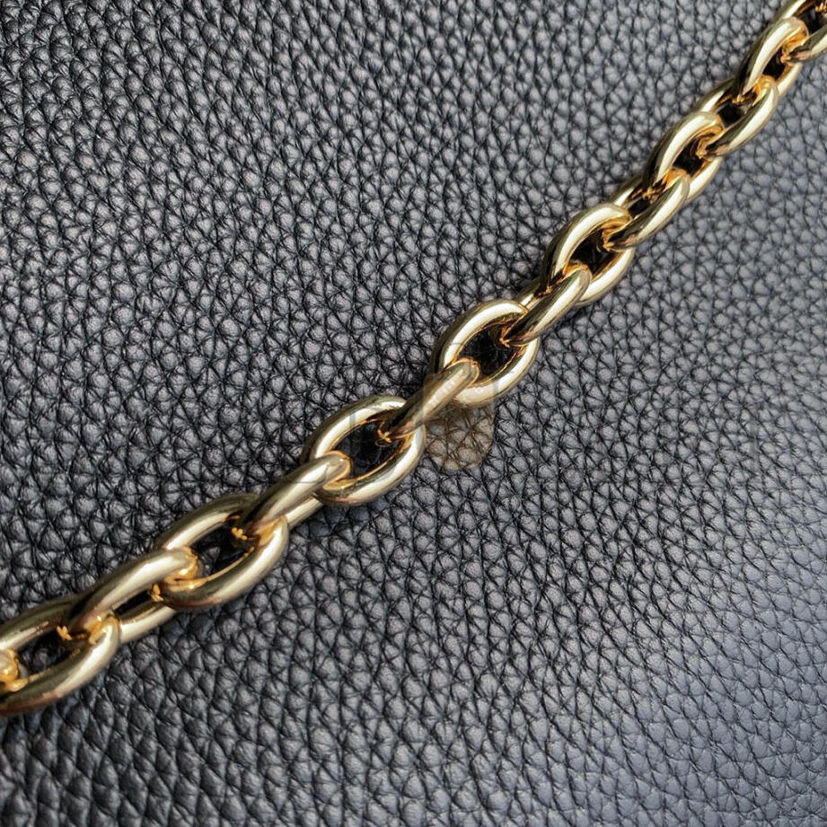 The signature V shaped quilting of this Chain Bag handbag is revisited in smooth cowhide leather. The vintage gold-color chain slides through engraved..