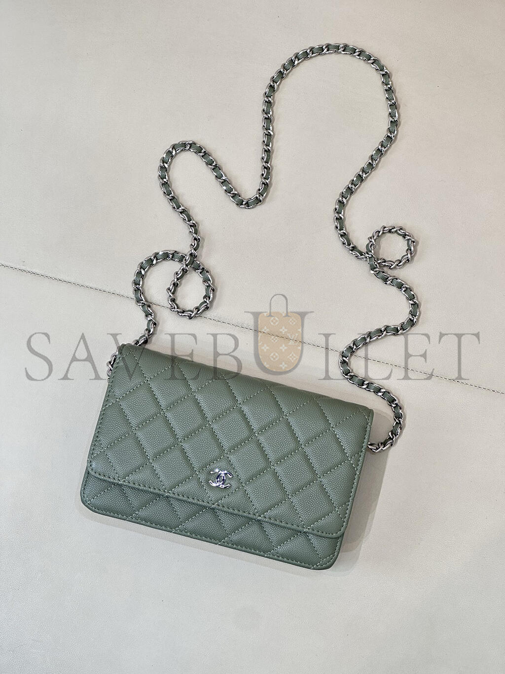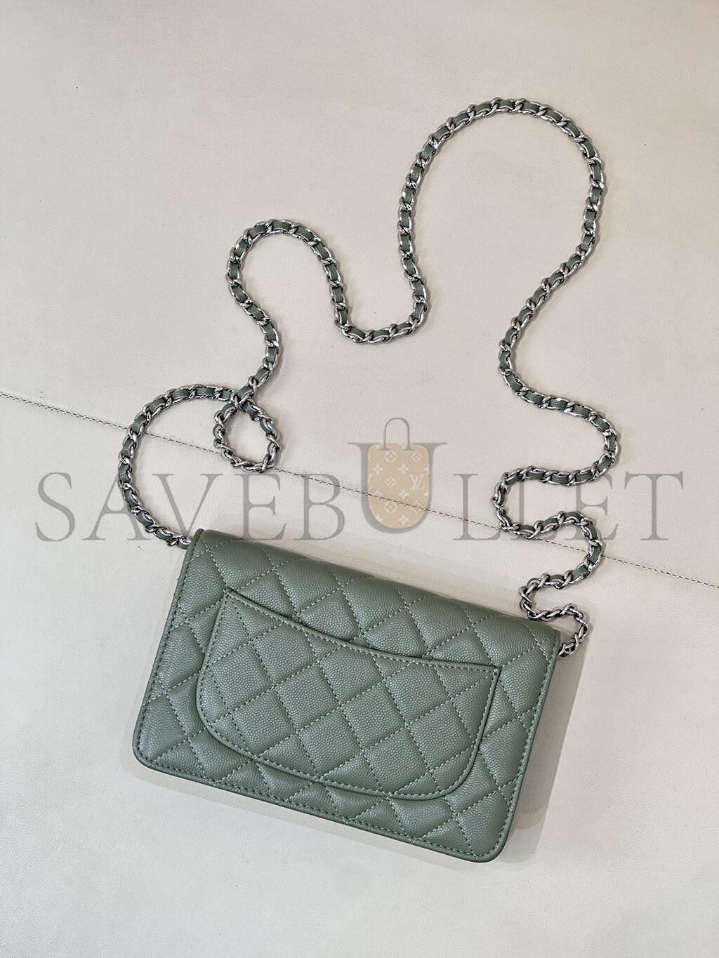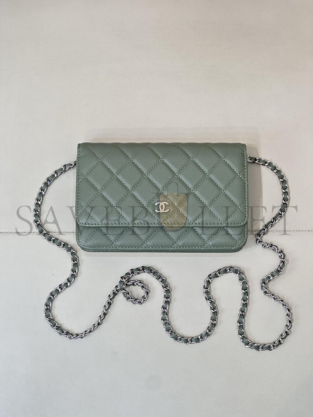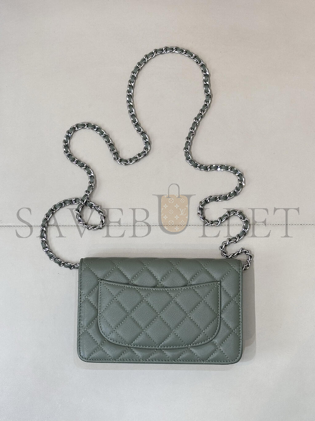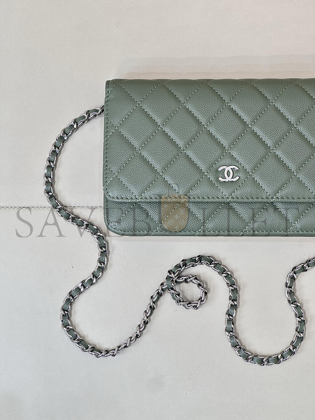 CHANEL CAVIAR QUILTED WALLET ON CHAIN WOC GREEN AP0250 (19*12*4.5cm)