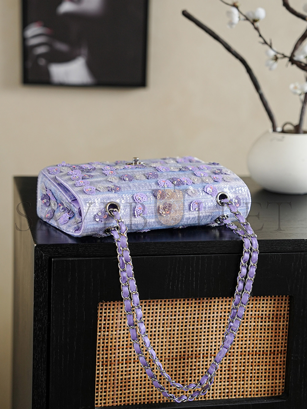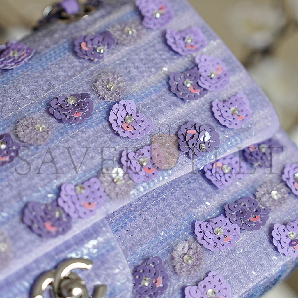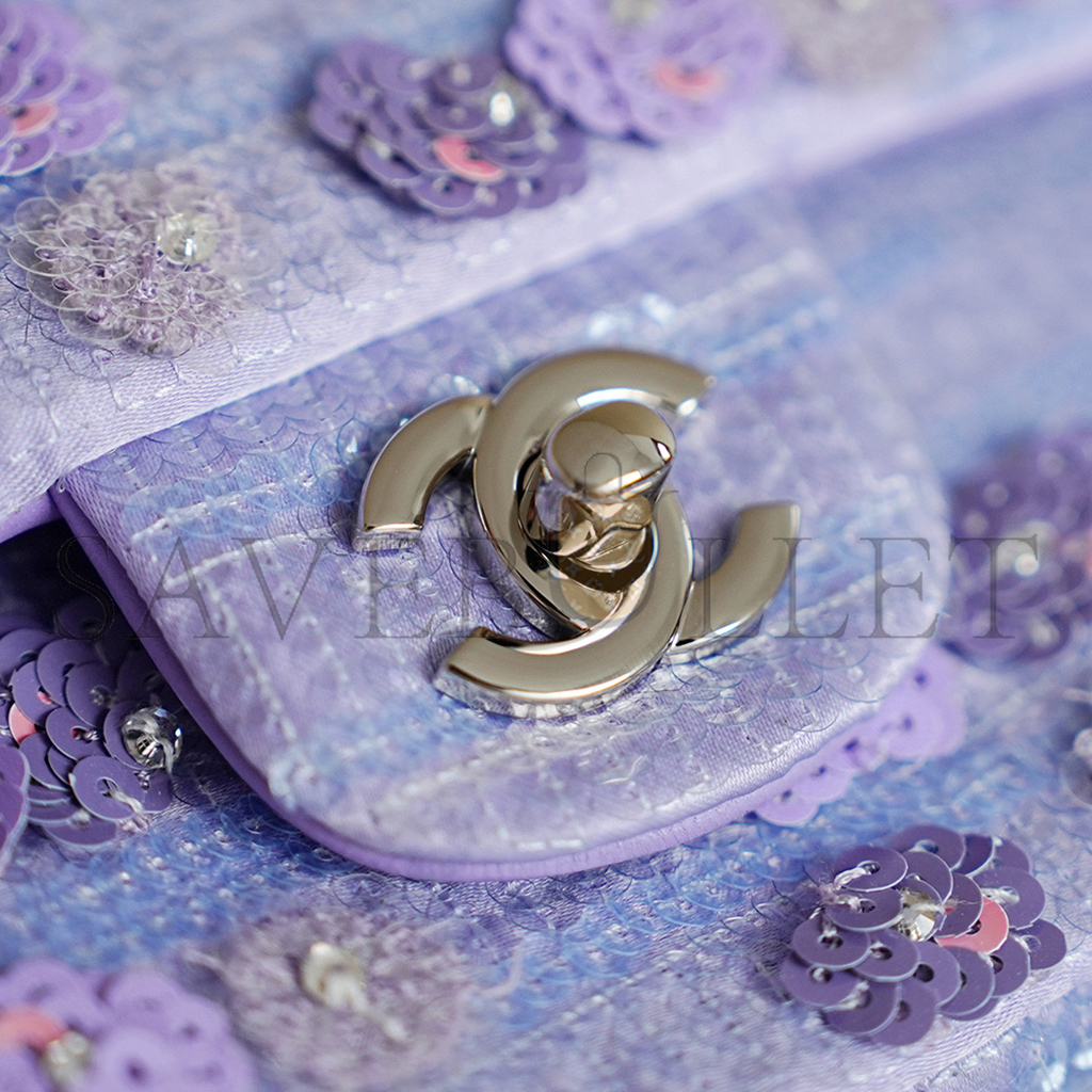CHANEL 26C VIOLET SEQUINS CLASSIC FLAP BAG A01112 (25.5*15.5*6.5cm)