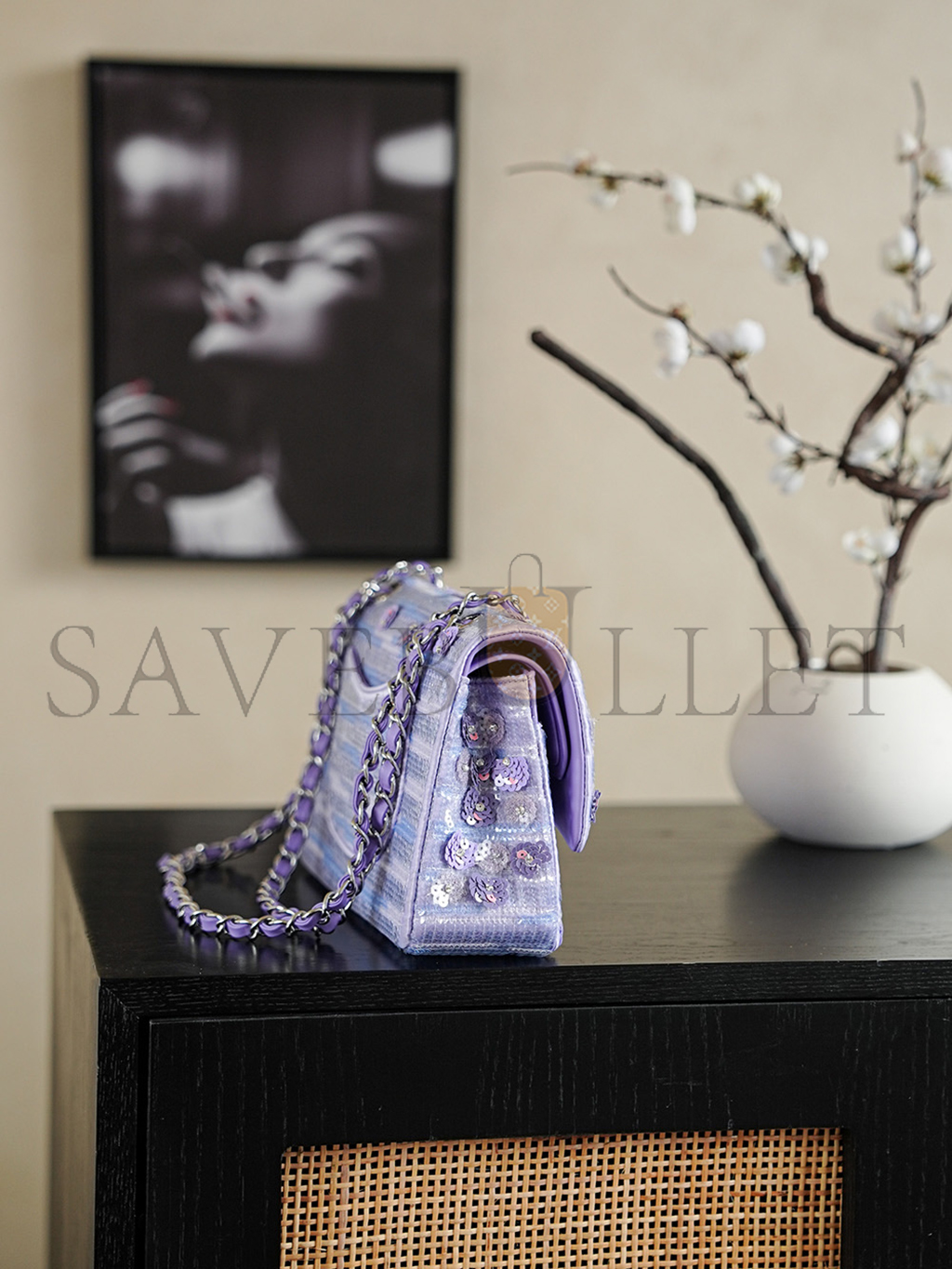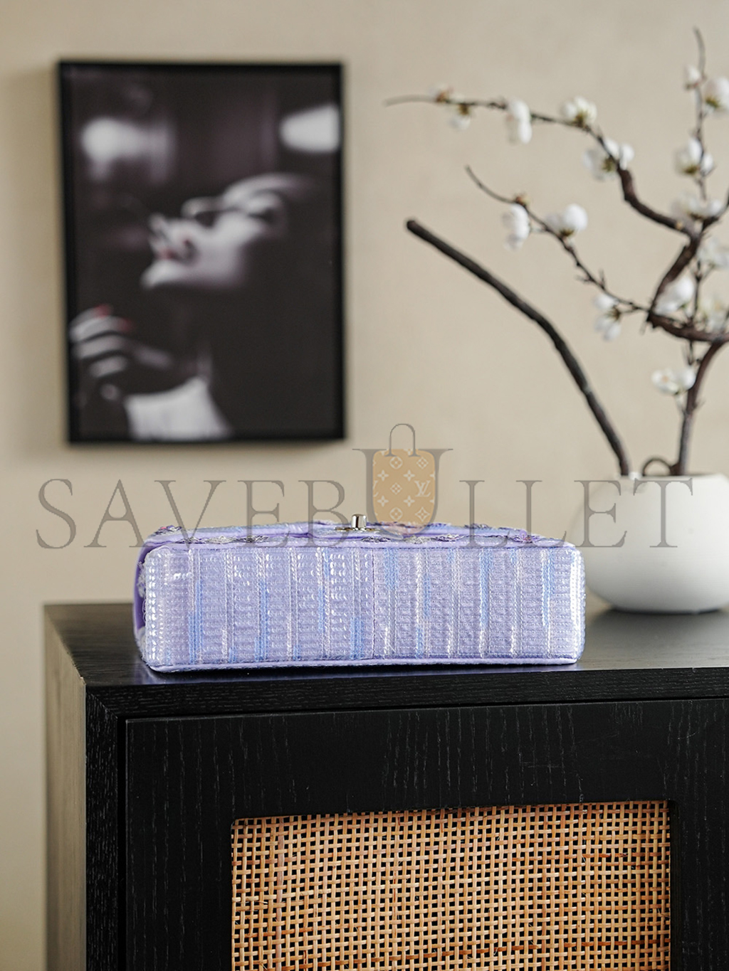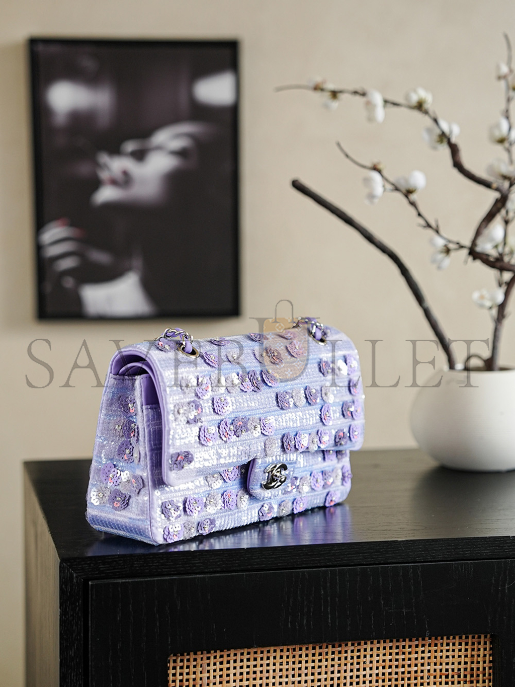 CHANEL 26C VIOLET SEQUINS CLASSIC FLAP BAG A01112 (25.5*15.5*6.5cm)