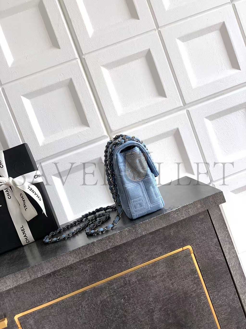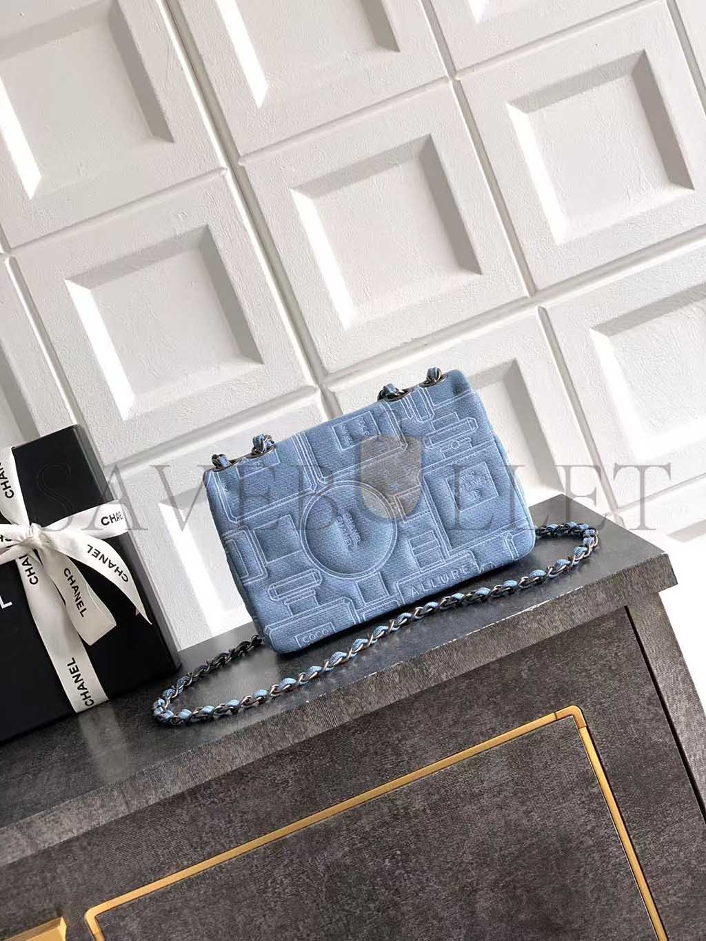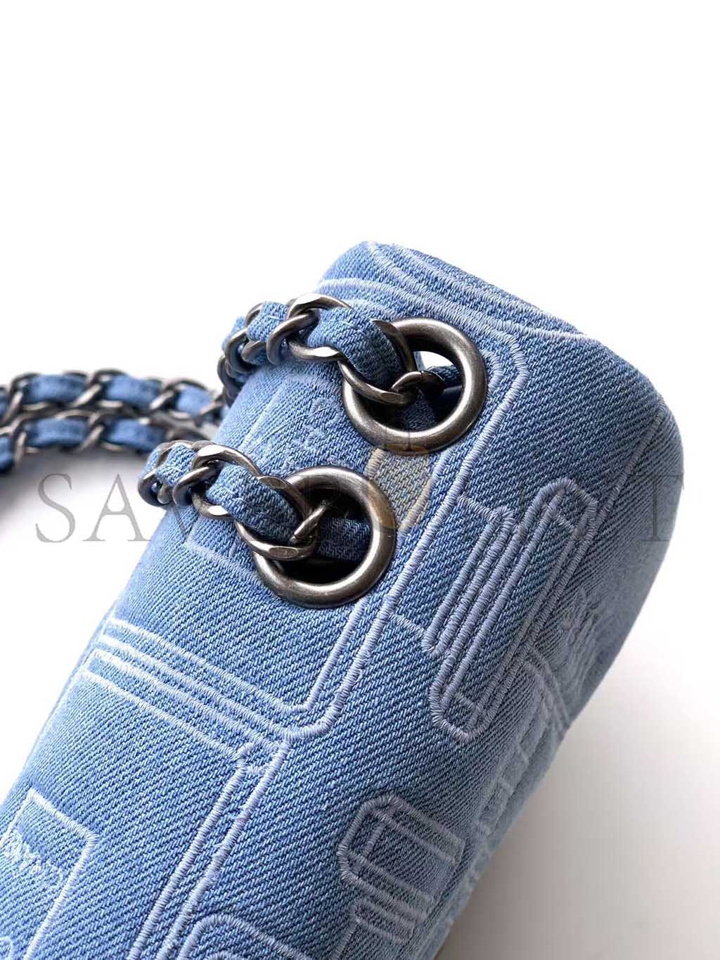 CHANEL SMALL PERFUME BOTTLE SINGLE FLAP CF EMBROIDERED DENIM SHOULDER BAG (20*12*6cm)