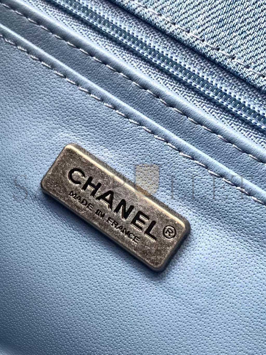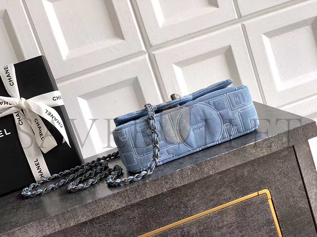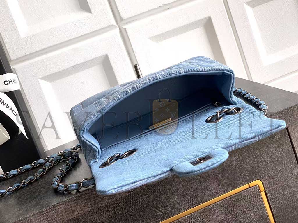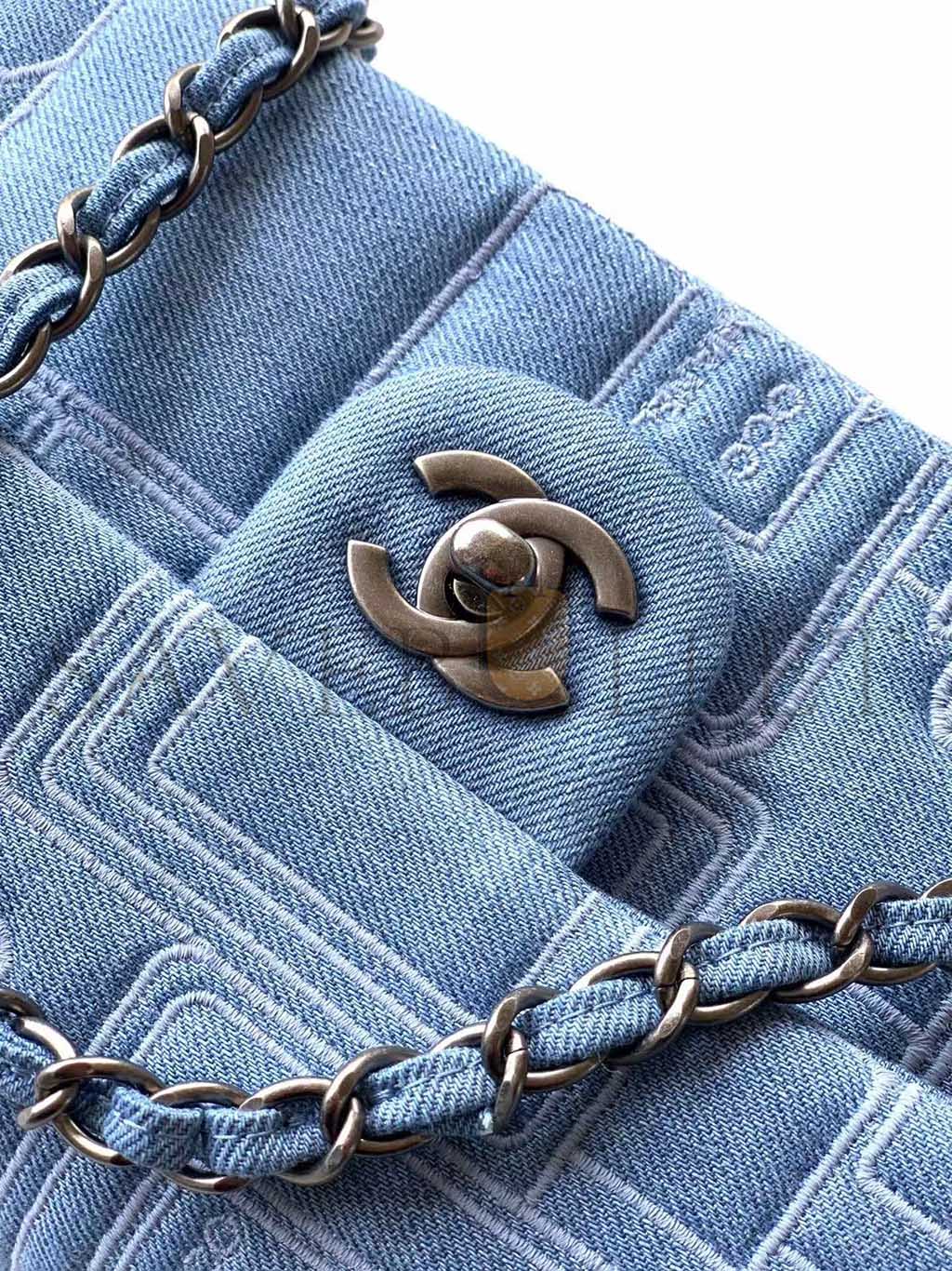 CHANEL SMALL PERFUME BOTTLE SINGLE FLAP CF EMBROIDERED DENIM SHOULDER BAG (20*12*6cm)