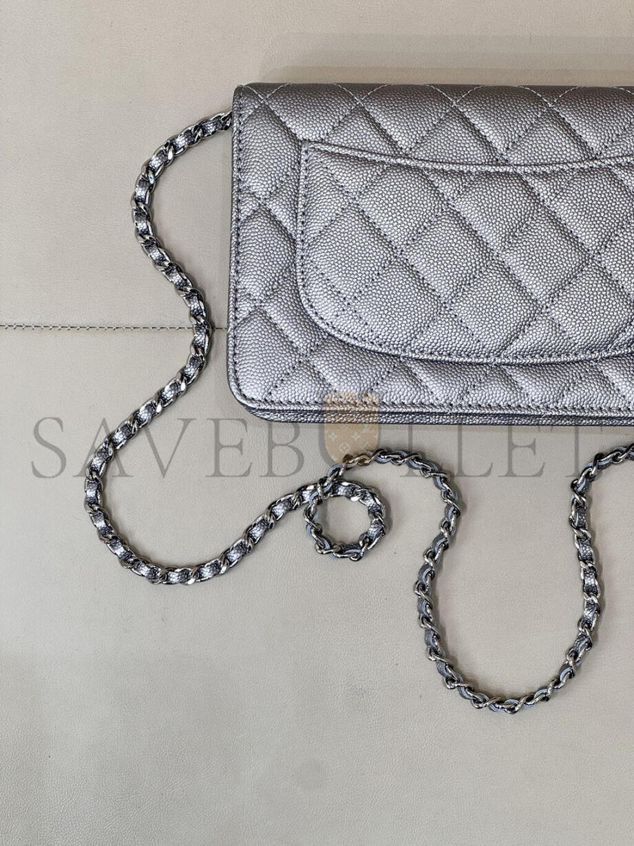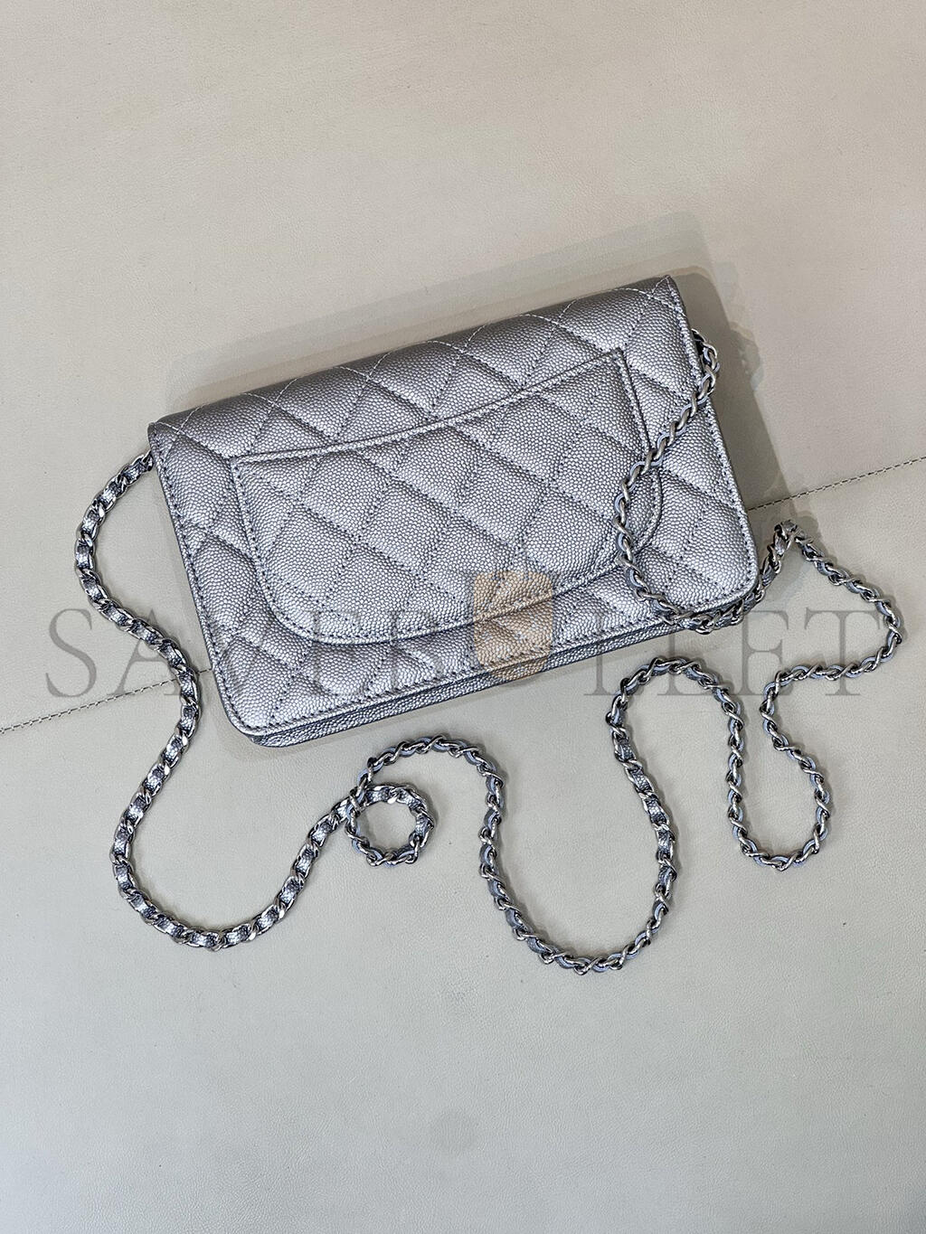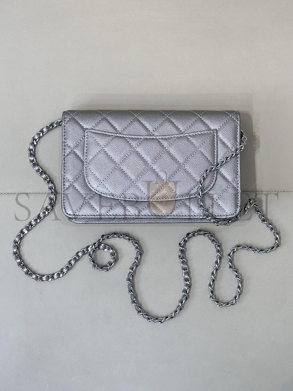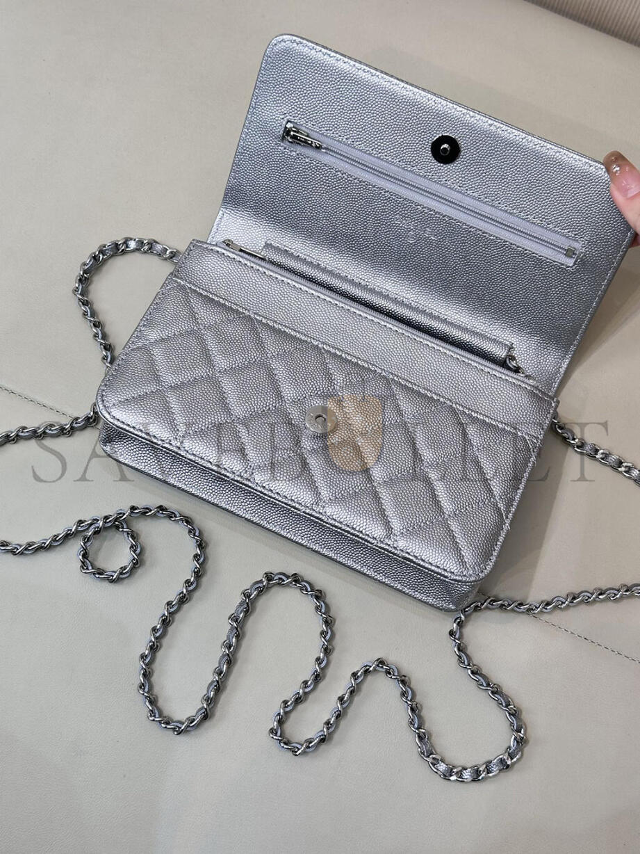 CHANEL WALLET ON CHAIN WOC CAVIAR SILVER AP0250 (19*13*3.5cm)