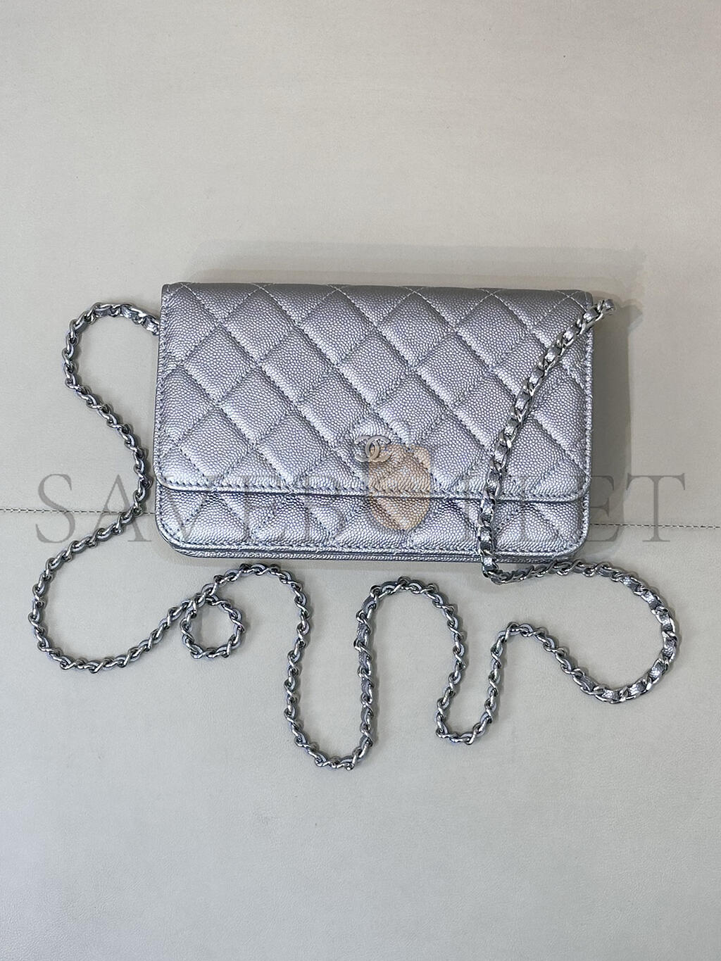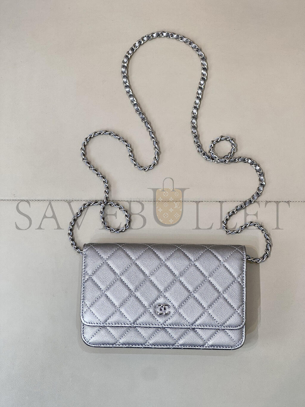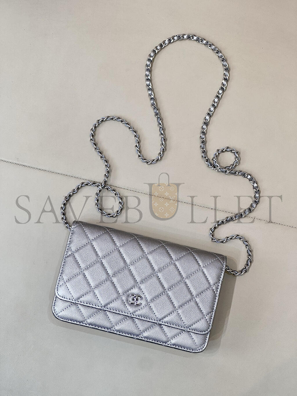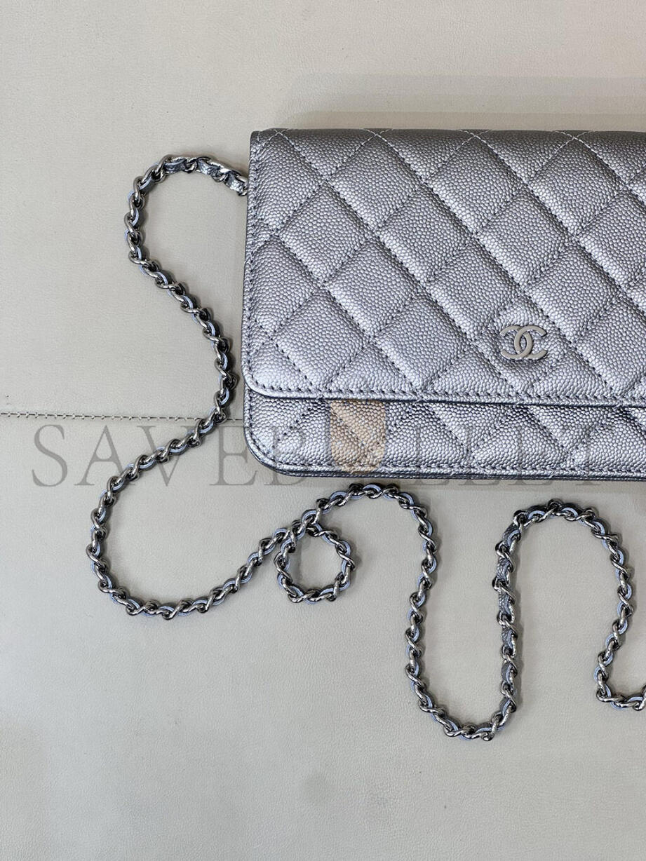 CHANEL WALLET ON CHAIN WOC CAVIAR SILVER AP0250 (19*13*3.5cm)