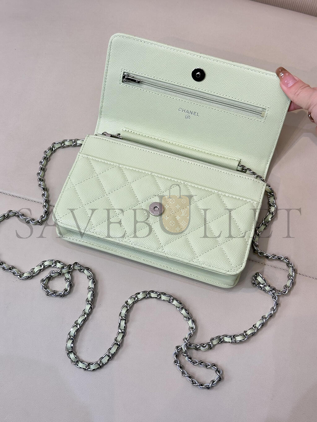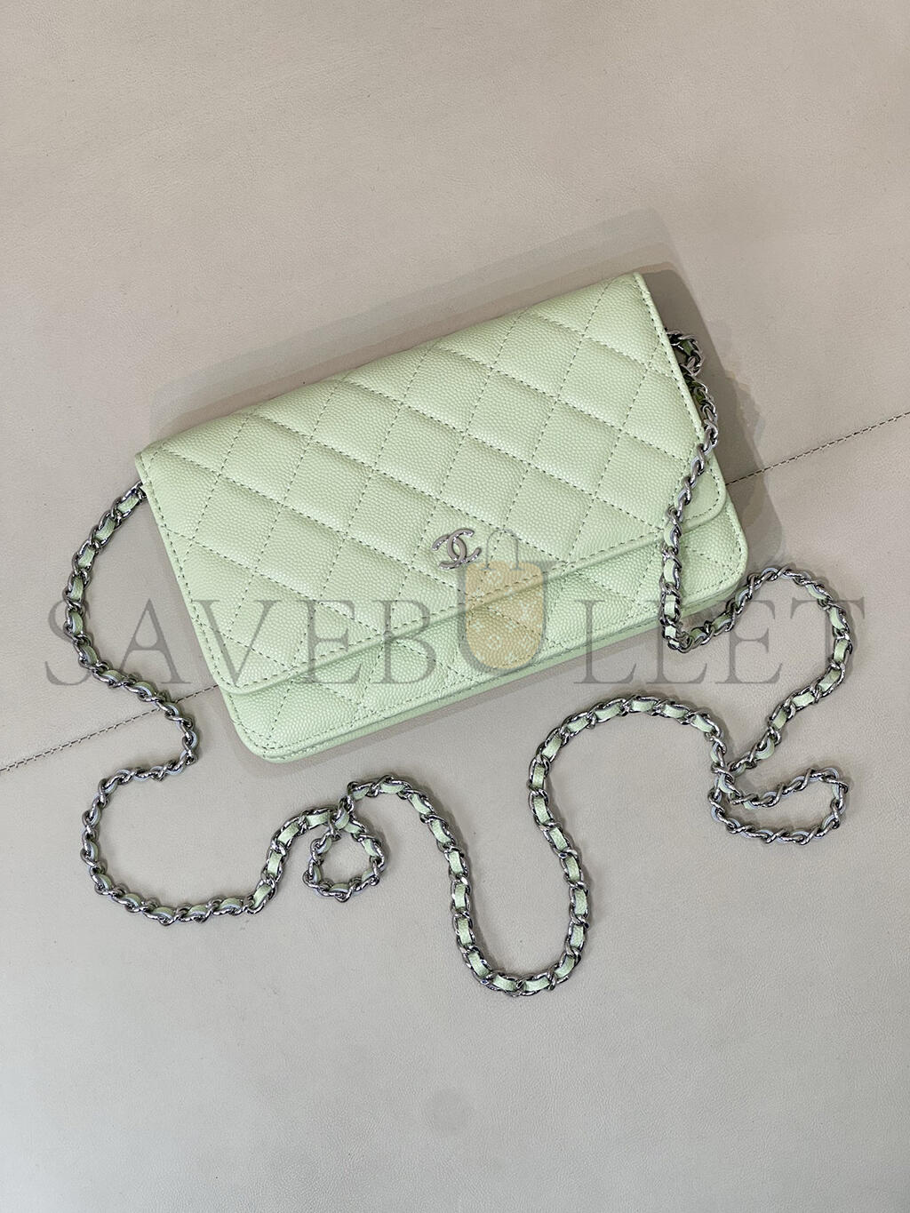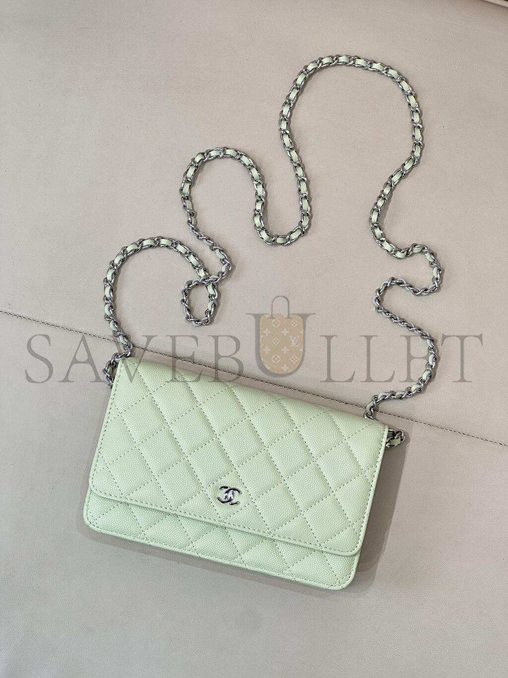 CHANEL WALLET ON CHAIN WOC CAVIAR SILVER METAL AP0250 (19*13*3.5cm)