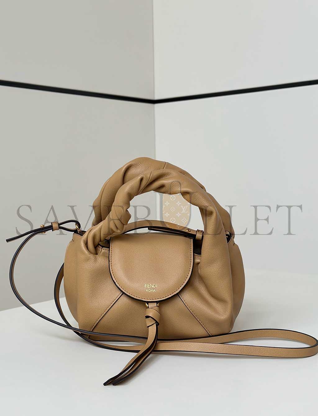 Mini Fendi Spy Bag, a contemporary reinterpretation of a famous Fendi It bag presented in the Spring Summer 2005 Fashion Show, distinguished by its unique and unmistakable design. An expression of fine craftsmanship, it features distinctive twisted handles that embellish the silhouette.