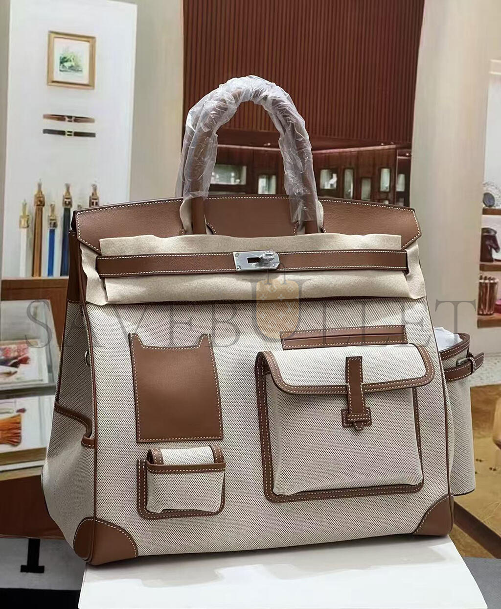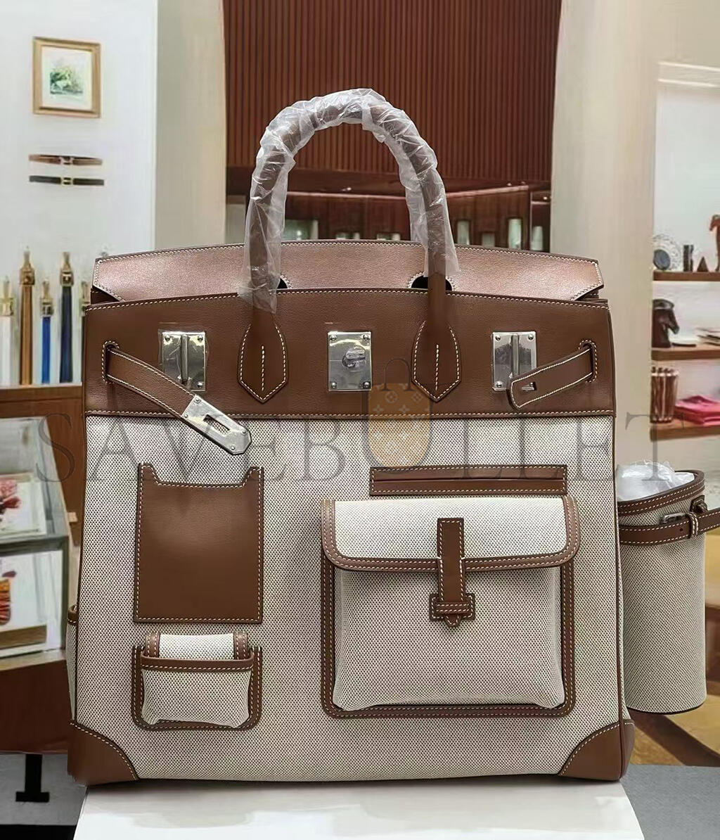 HERMÈS MASTER BIRKIN HAC CARGO 40 CM TOILE CANVAS AND CALFSKIN LEATHER (40*40*23cm)