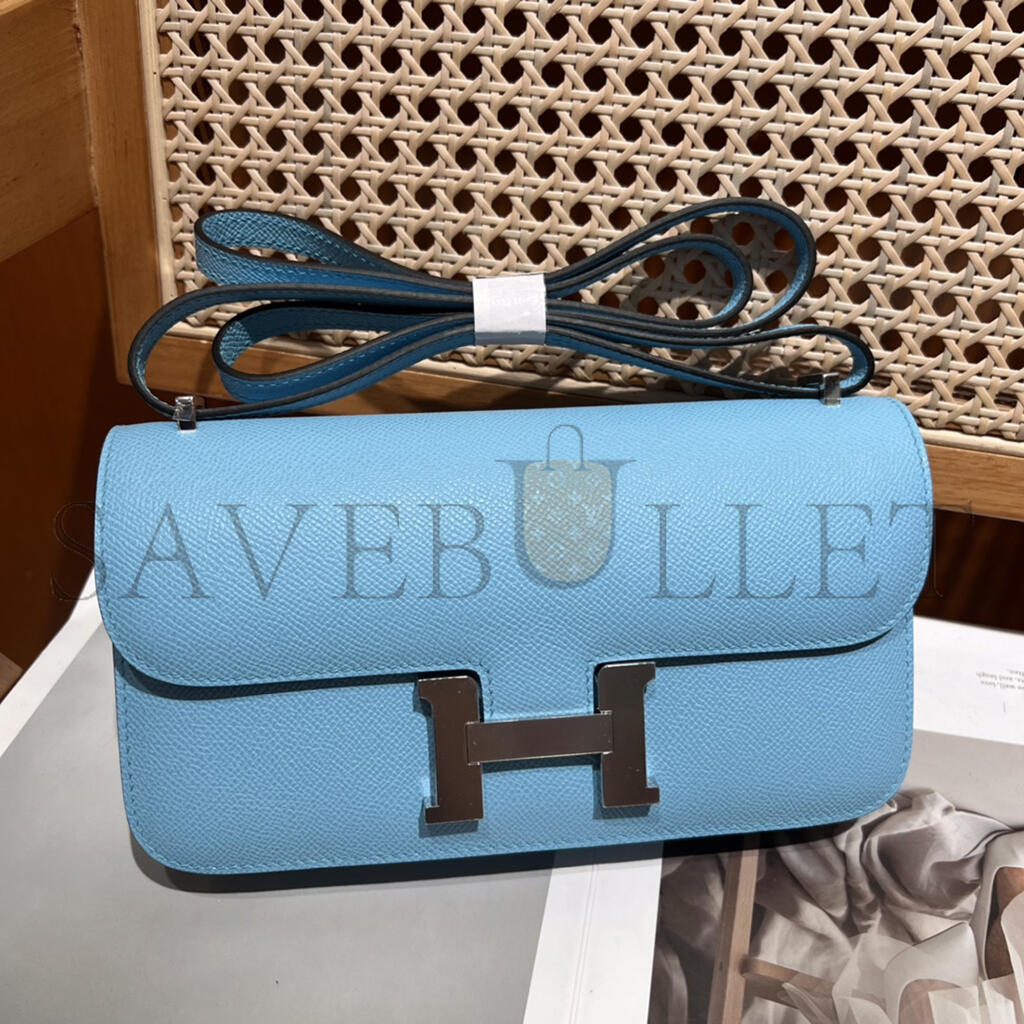 HERMES CONSTANCE ELAN EPSOM CELESTE PALLADIUM HARDWARE (26*16*6cm)