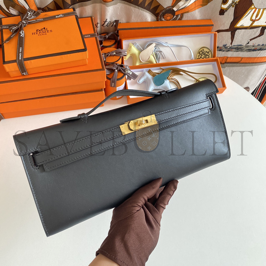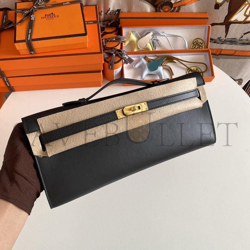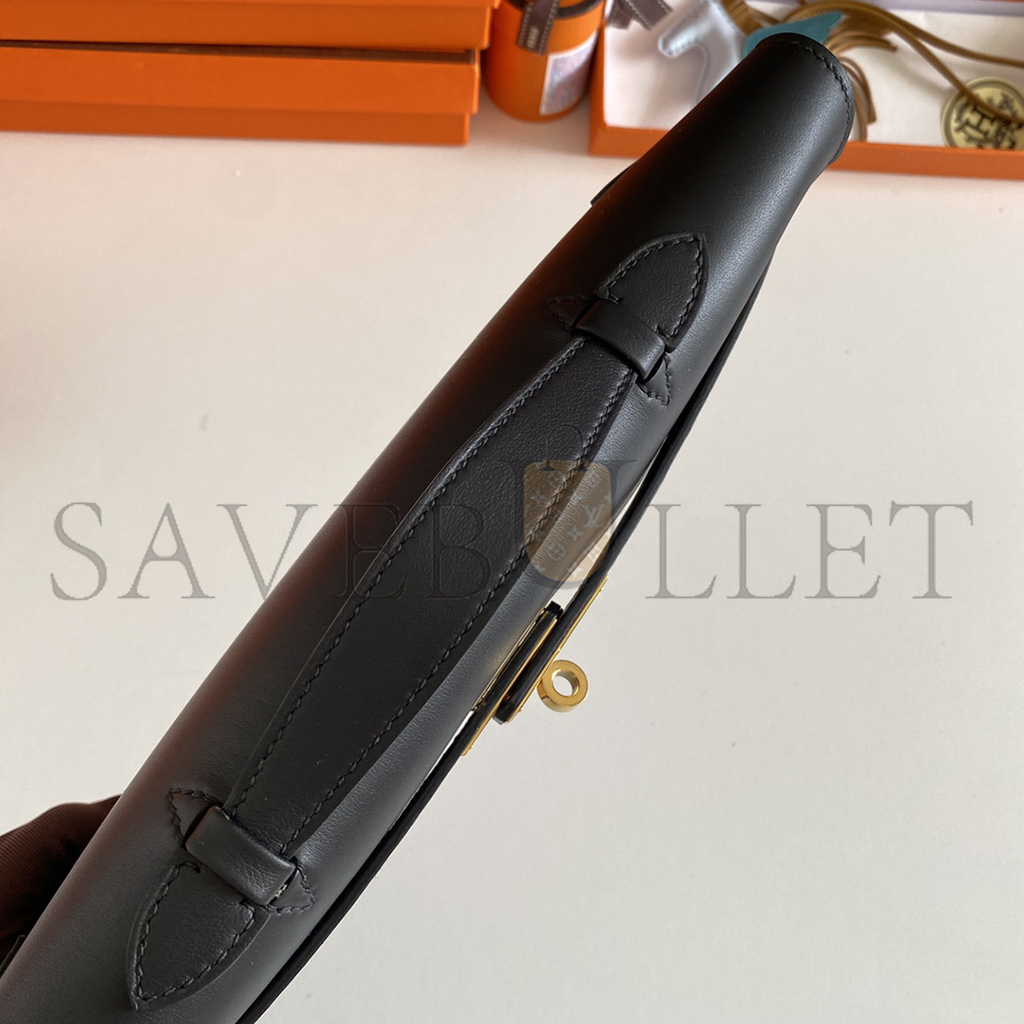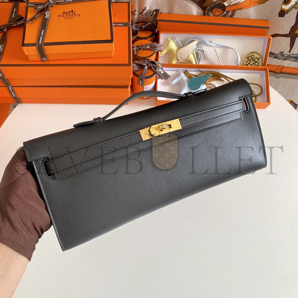 HERMES MASTER BLACK SWIFT KELLY CUT GOLD HARDWARE (31*13*2.5cm)