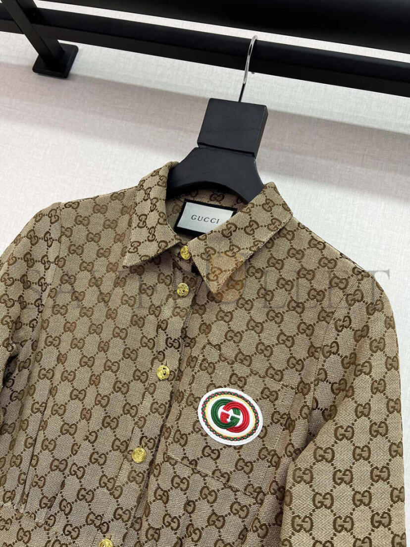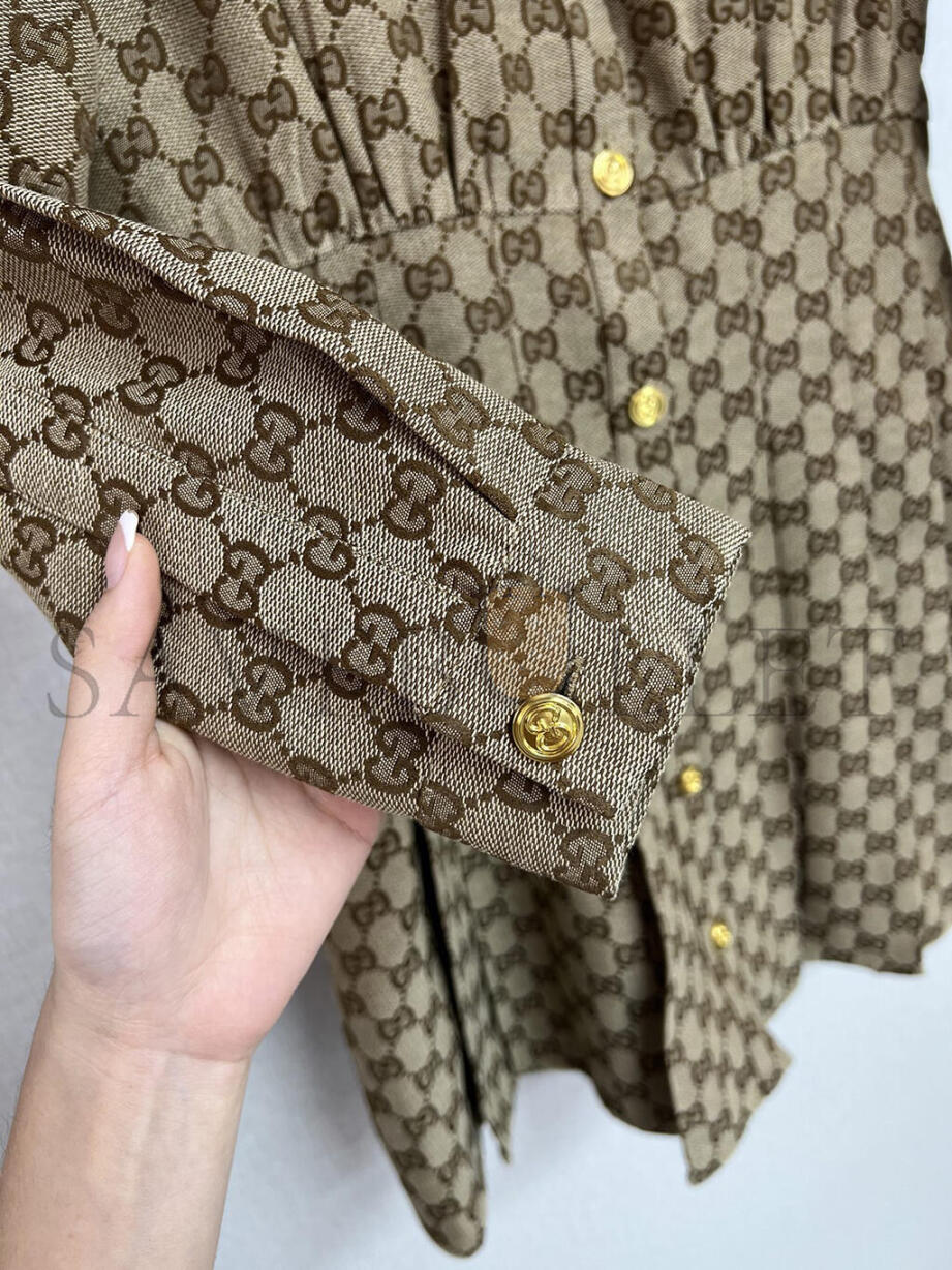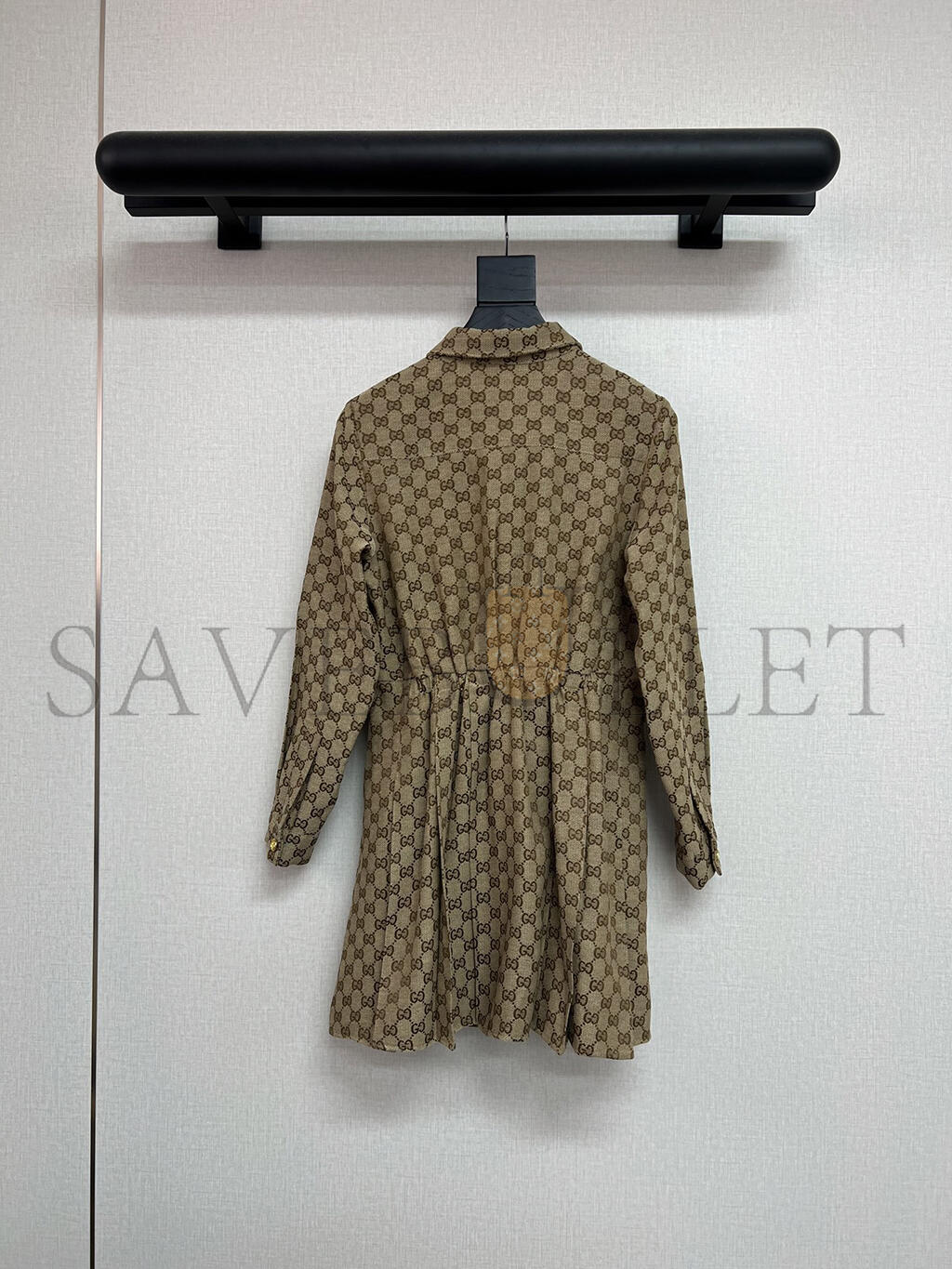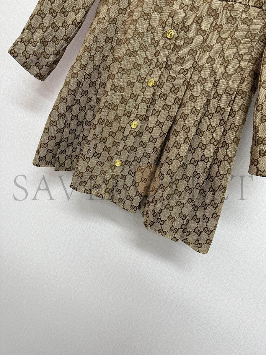GUCCI COLLARED LONG-SLEEVED FITTED WAIST PLEATED DRESS