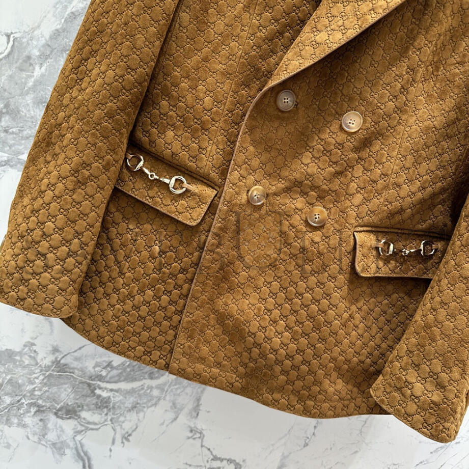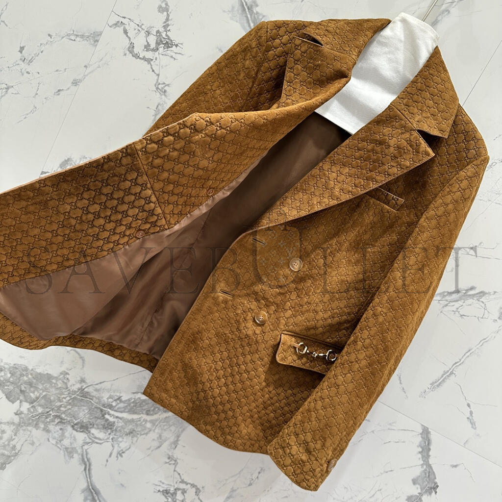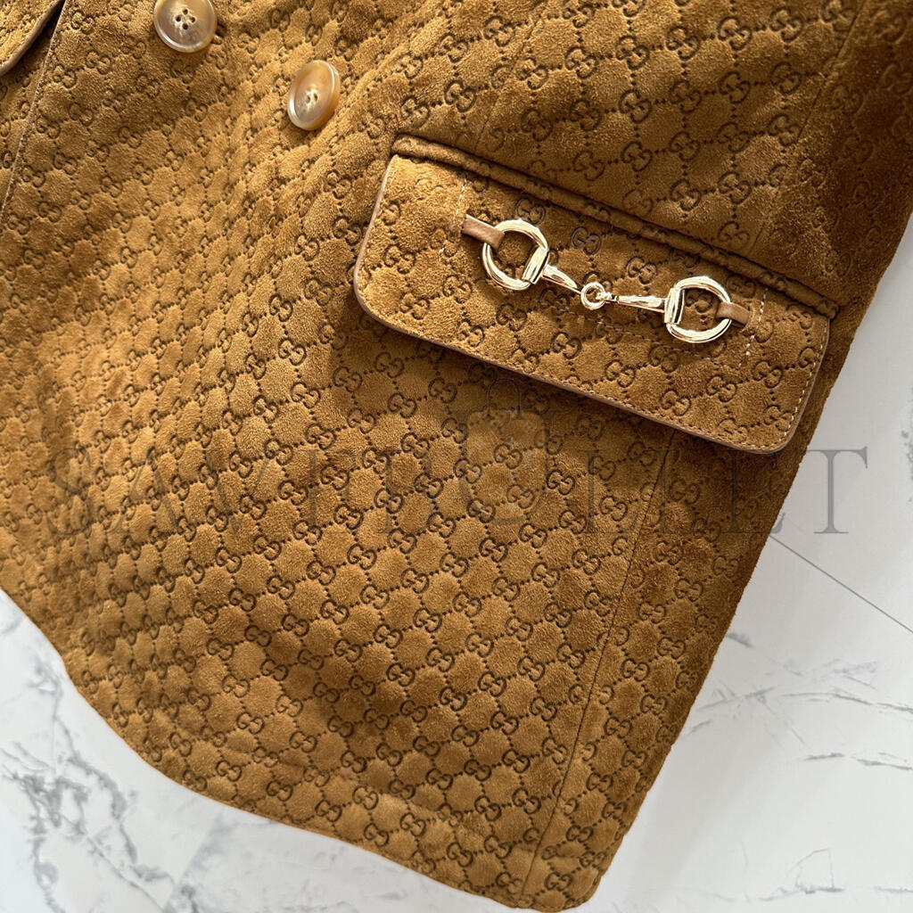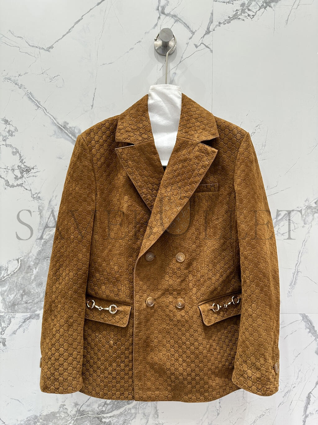 GUCCI DOUBLE-BREASTED SUEDE BLAZER WITH HORSEBIT DETAIL 815833
