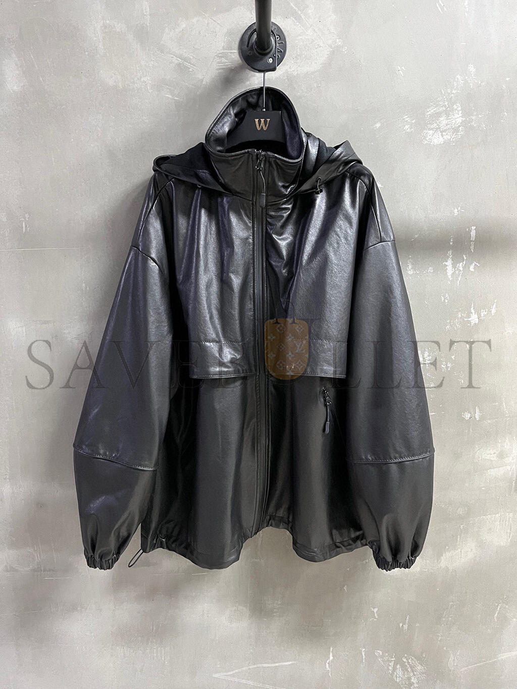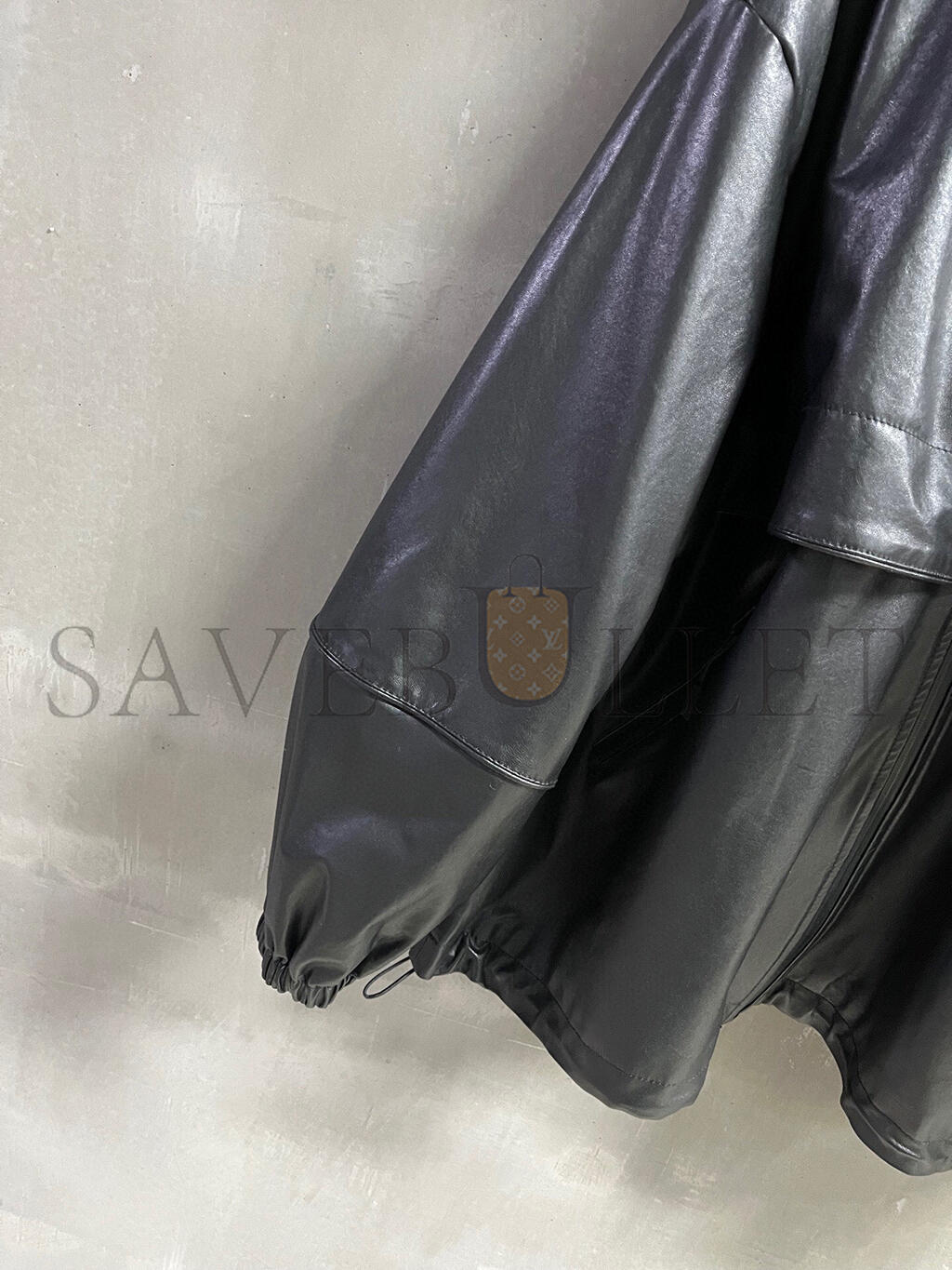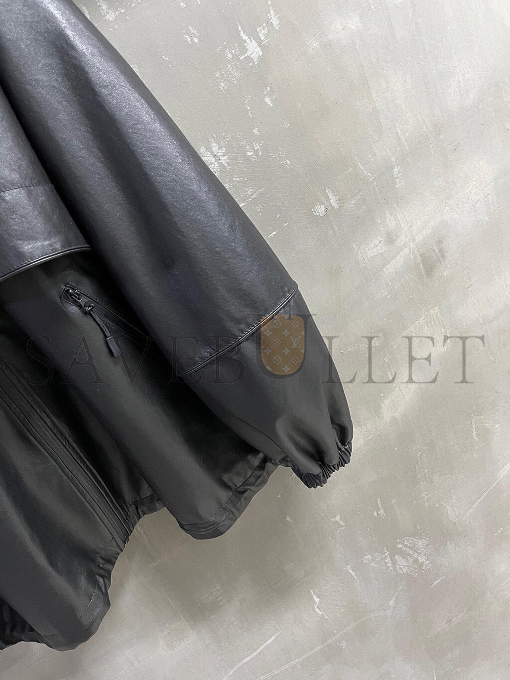 BALENCIAGA LEATHER BOMBER JACKET IN BLACK