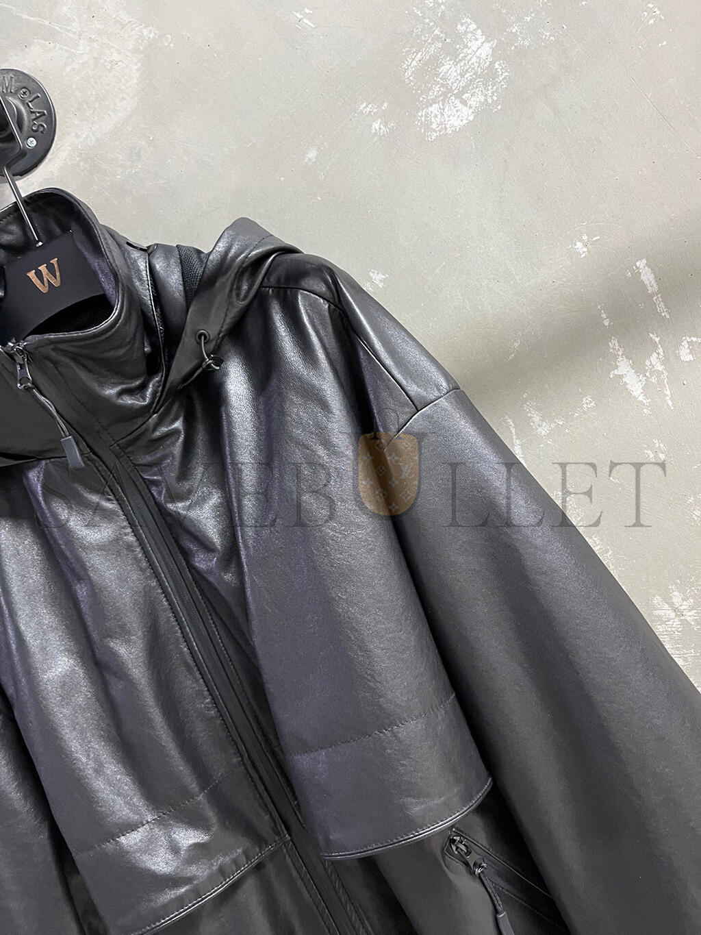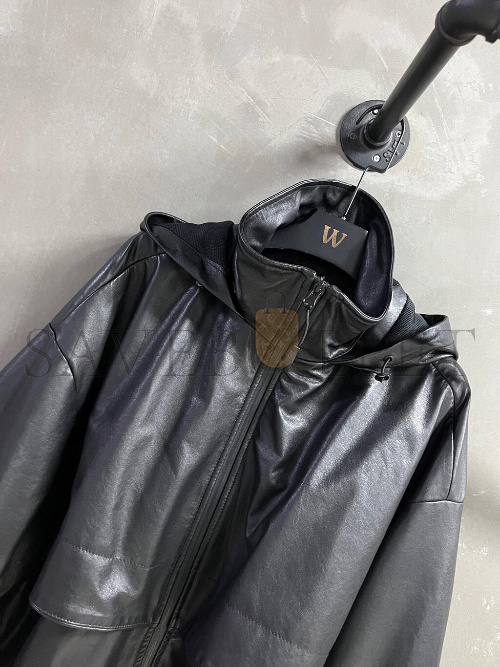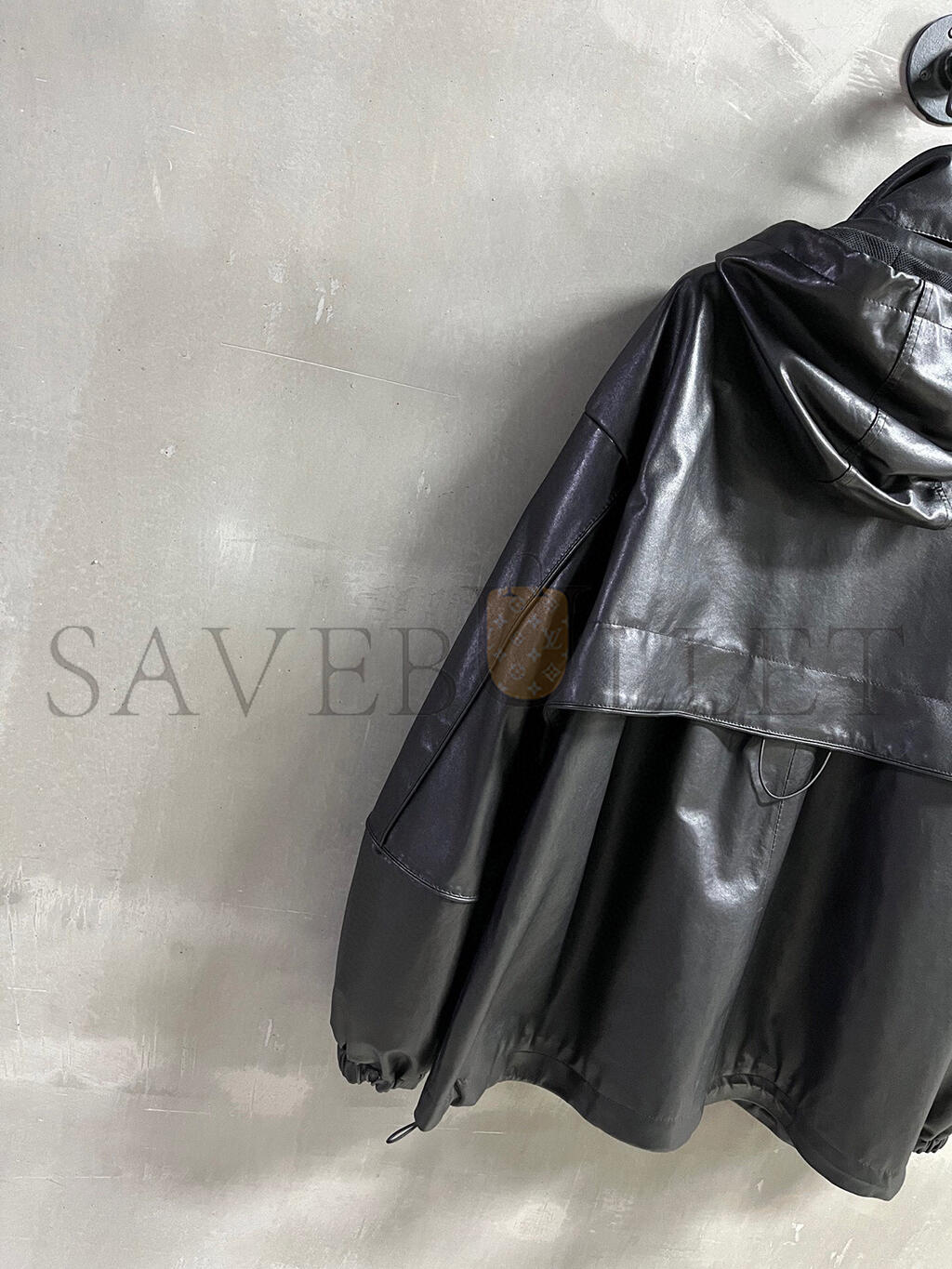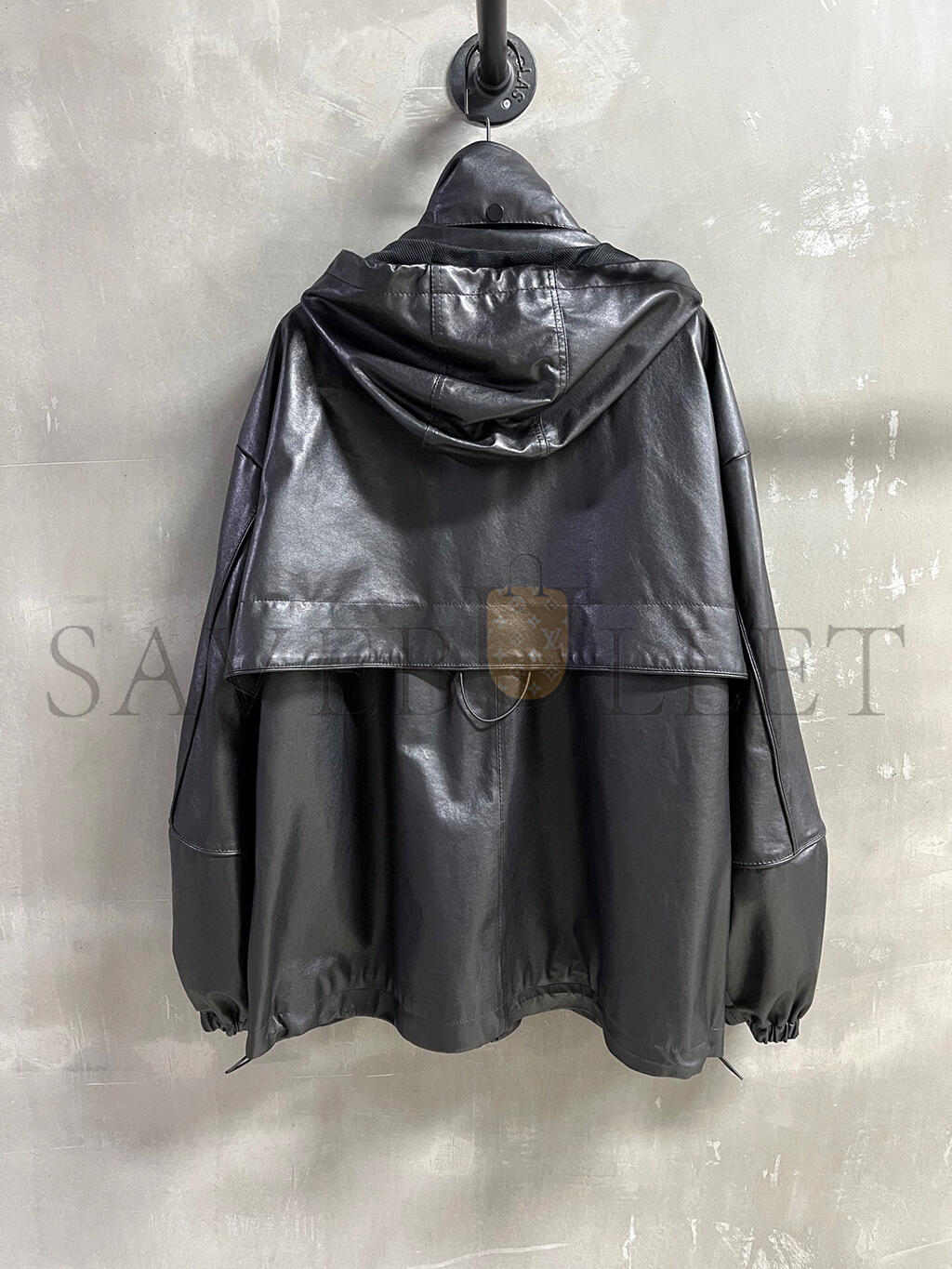 BALENCIAGA LEATHER BOMBER JACKET IN BLACK