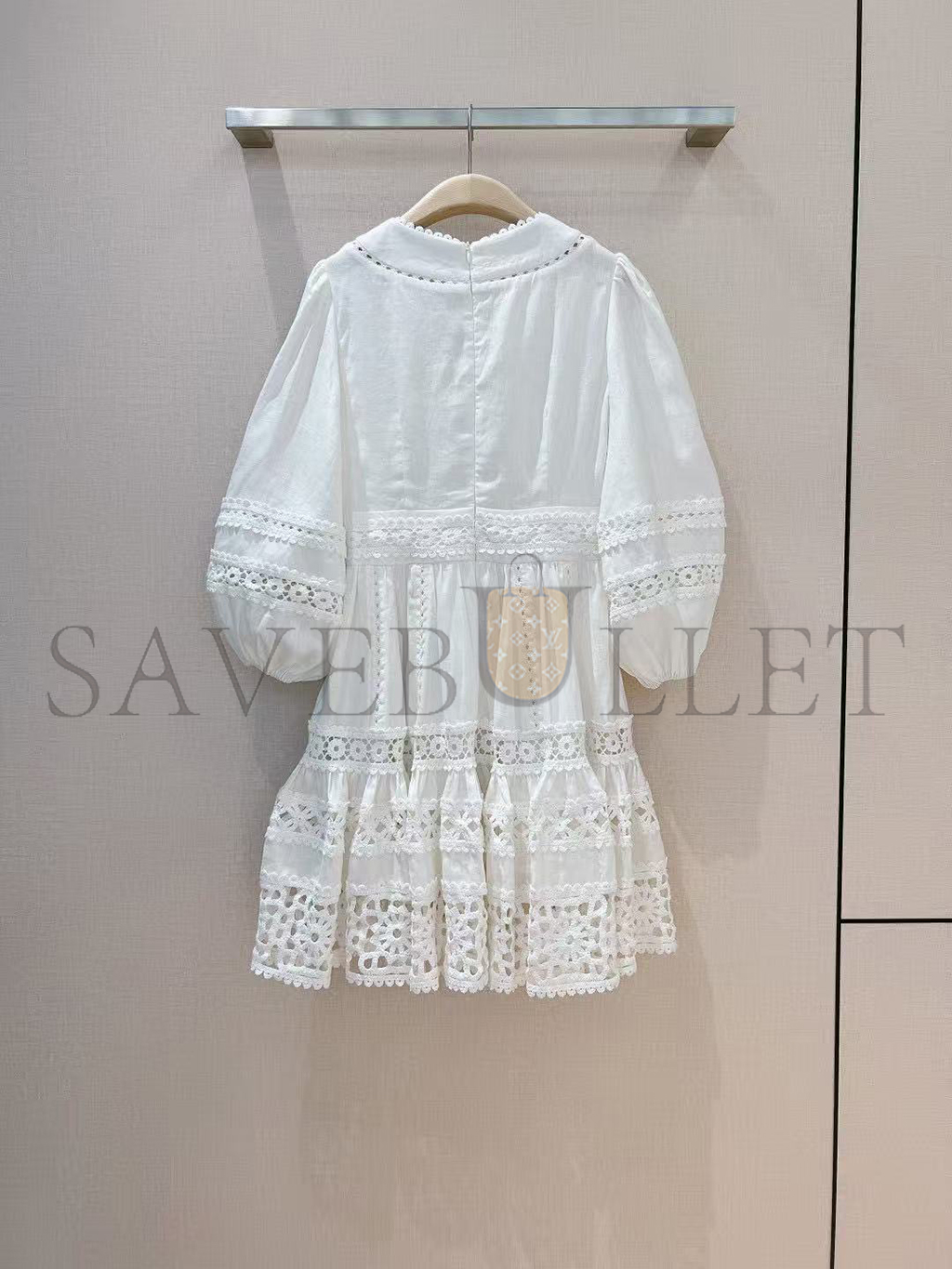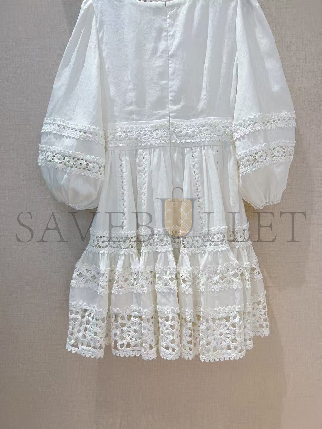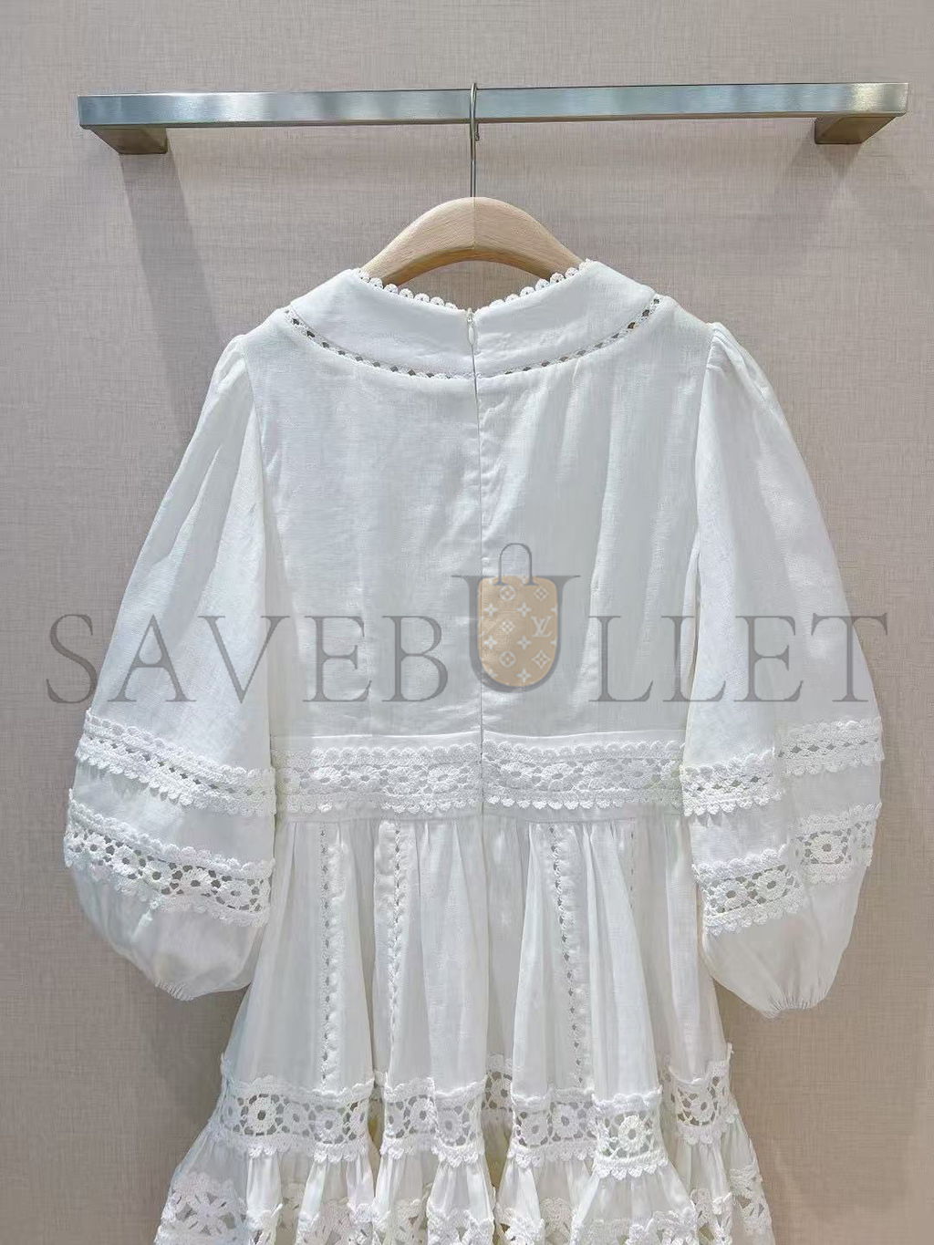 ZIMMERMANN DEVI SPLICED BILLOW LINEN MINI DRESS 7049DSS231IVORY