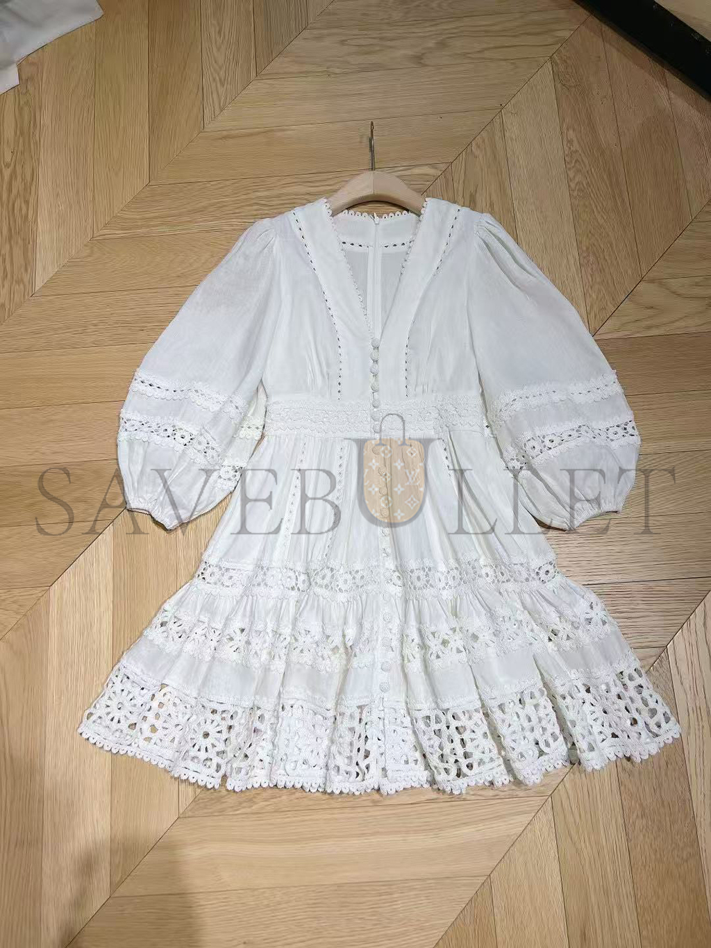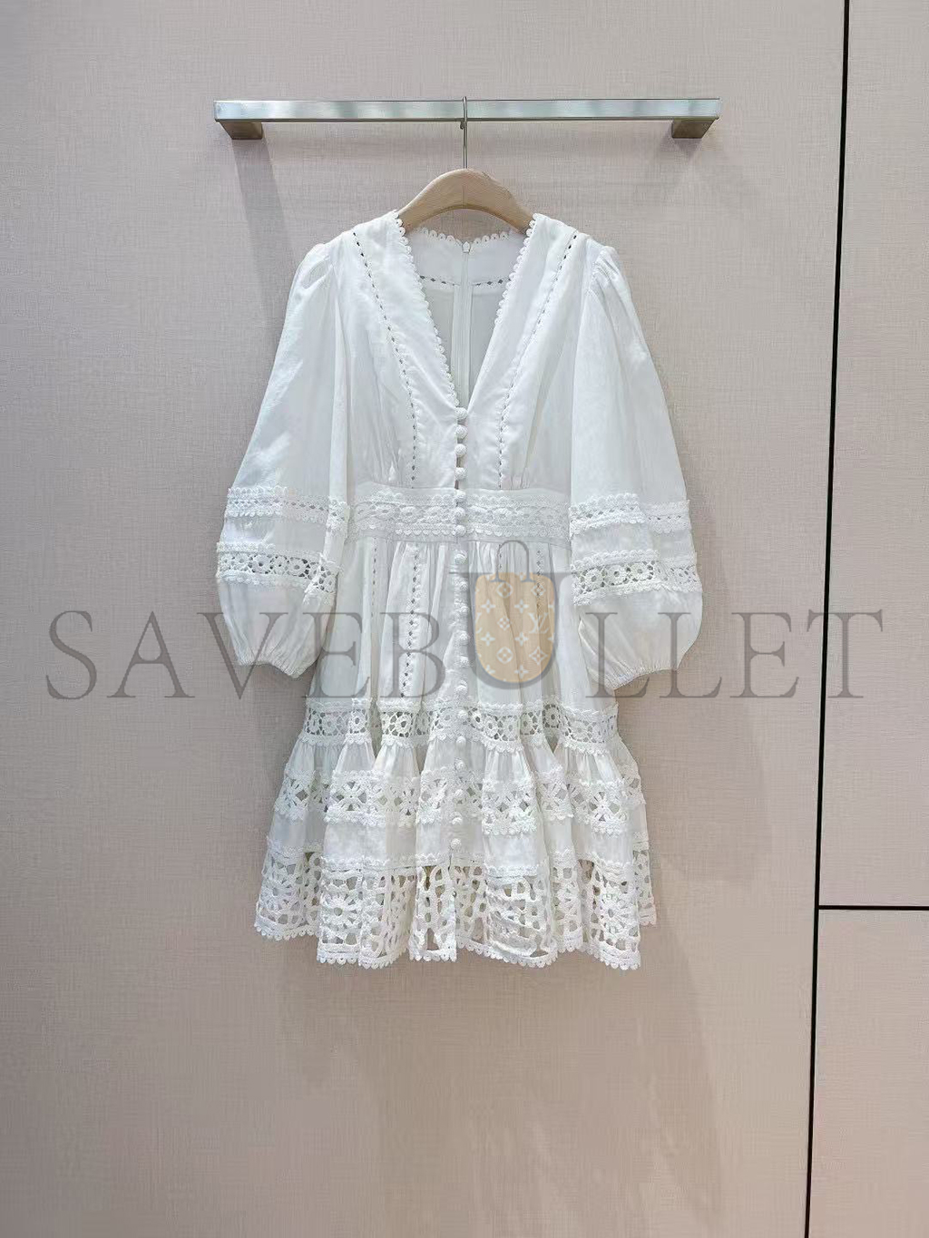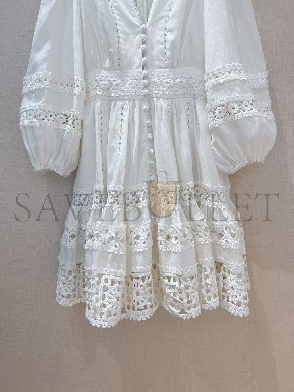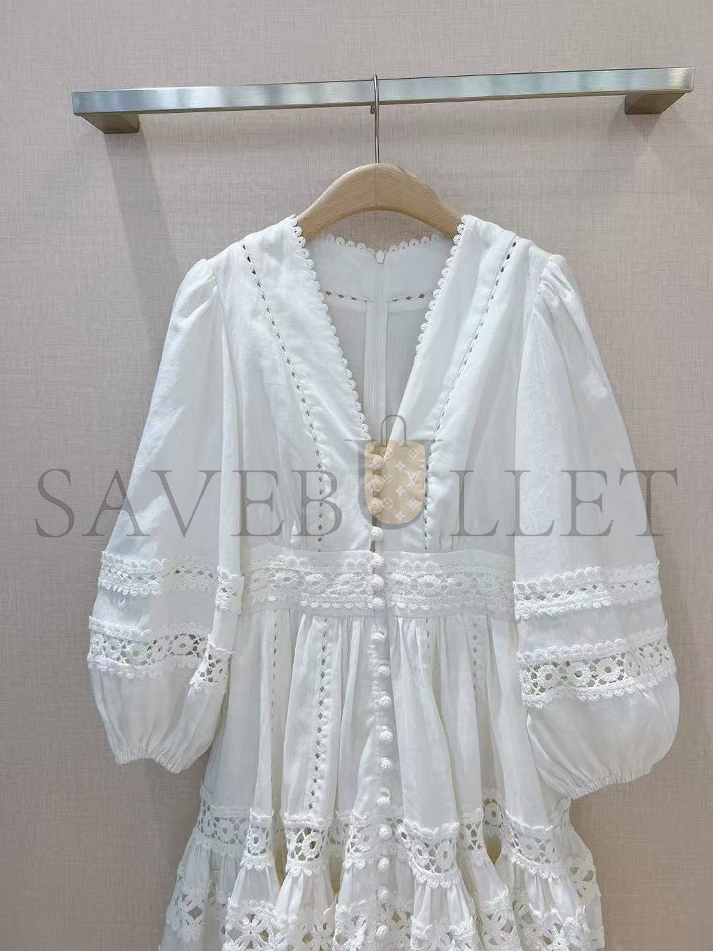 ZIMMERMANN DEVI SPLICED BILLOW LINEN MINI DRESS 7049DSS231IVORY