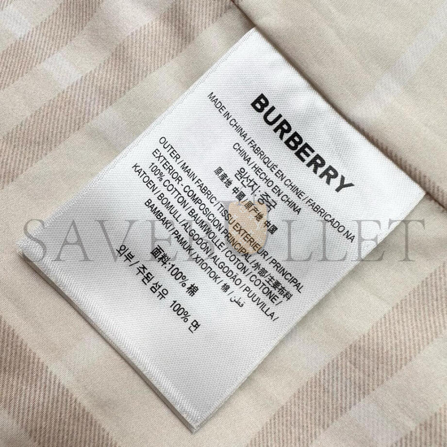 Our classic rainwear family welcomes a new addition: the 'Fitzrovia' trench coat, crafted in Yorkshire from water-repellent gabardine with a soft finish. Its relaxed A-line cut features wider sleeves and a flared silhouette. Raglan construction softens the shoulders, while the artful pocket design is inspired by an archival trench coat. A cotton lining in our seasonal beige hue Clam, featuring a Burberry check pattern, completes the look.