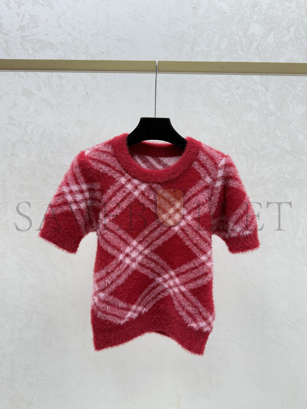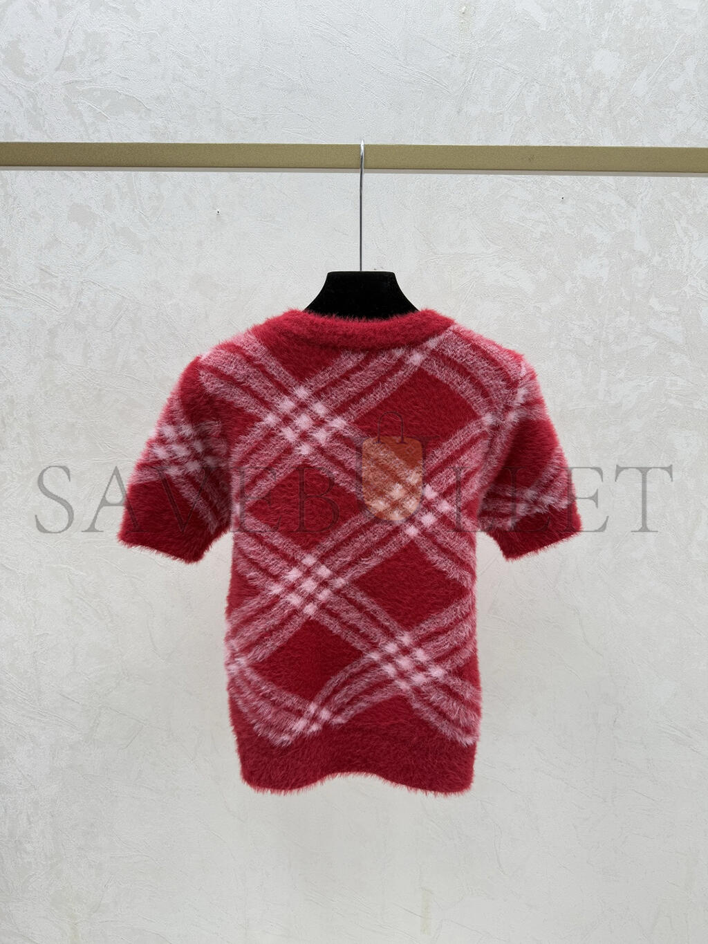 BURBERRY DIAMOND-PATTERNED ROUND NECK KNIT SHORT-SLEEVED TOP