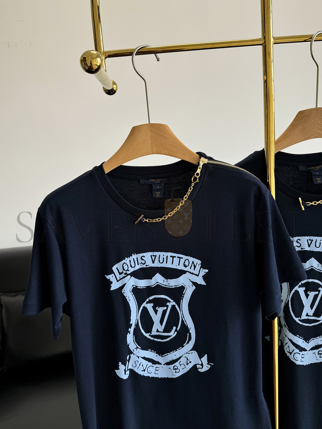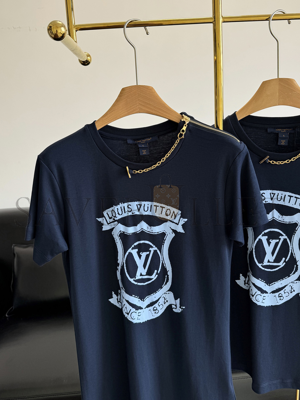 This T-shirt is casual and comfortable for everyday styling in soft, breathable cotton jersey. The chest is embellished with a scaled-up Louis Vuitton crest in soft seasonal shade for a romantic, preppy look, while the shoulder is embellished with the Houses refined zipper-and-chain detail for an elevated twist.