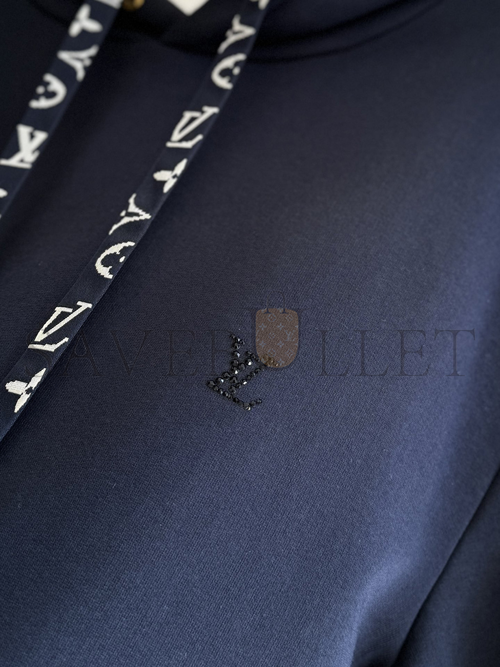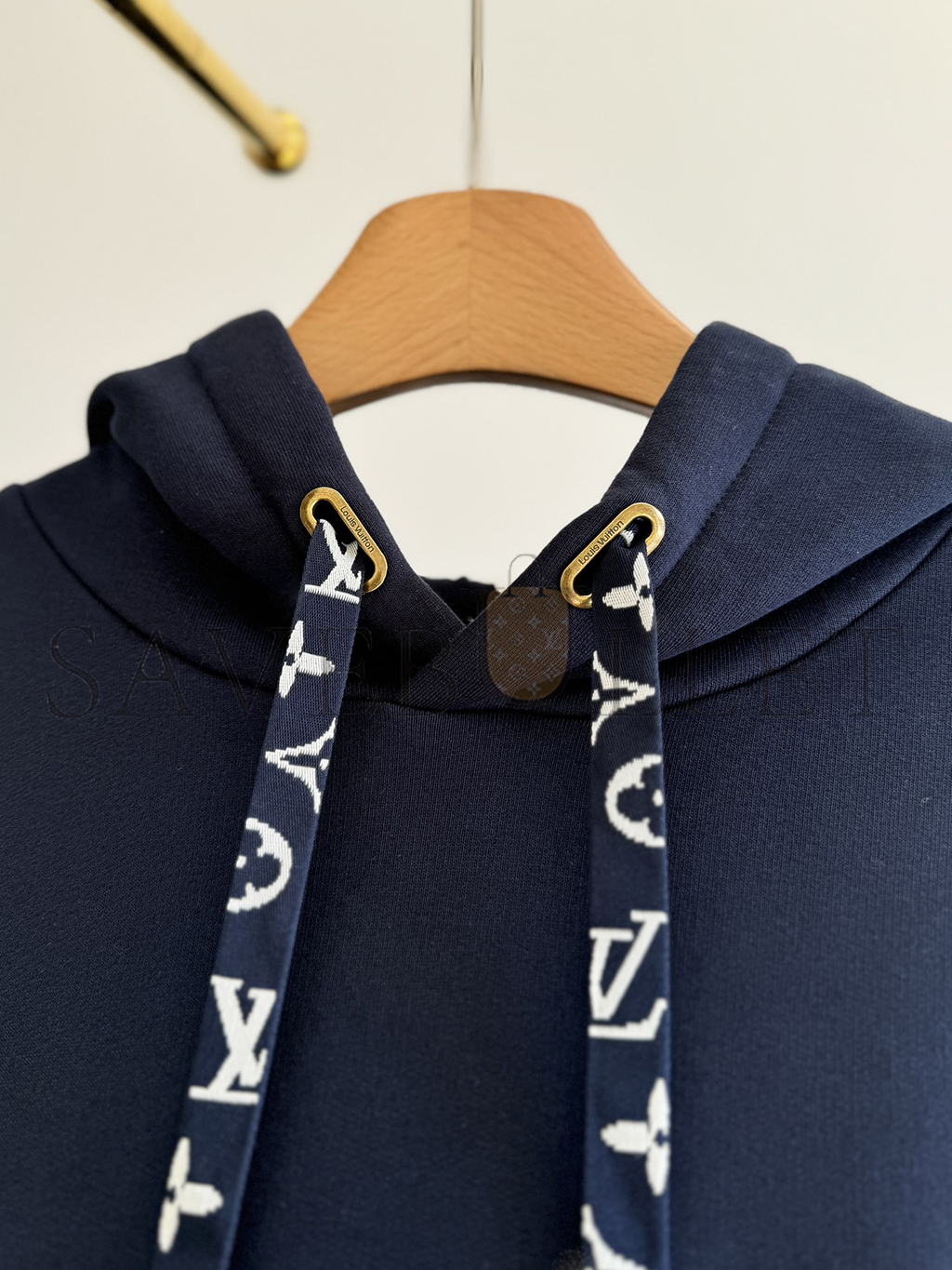This casual hoodie in refined dark blue tones is distinguished with a crisp white printed Monogram motif inside the hood and on the ribbon-like draw cords. Golden eyelets and cord ends add a sophisticated accent. Crafted from pure organic cotton, this piece is ideal for traveling and makes a versatile staple for relaxed everyday looks.