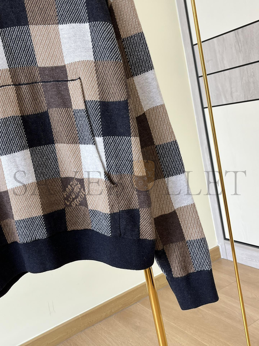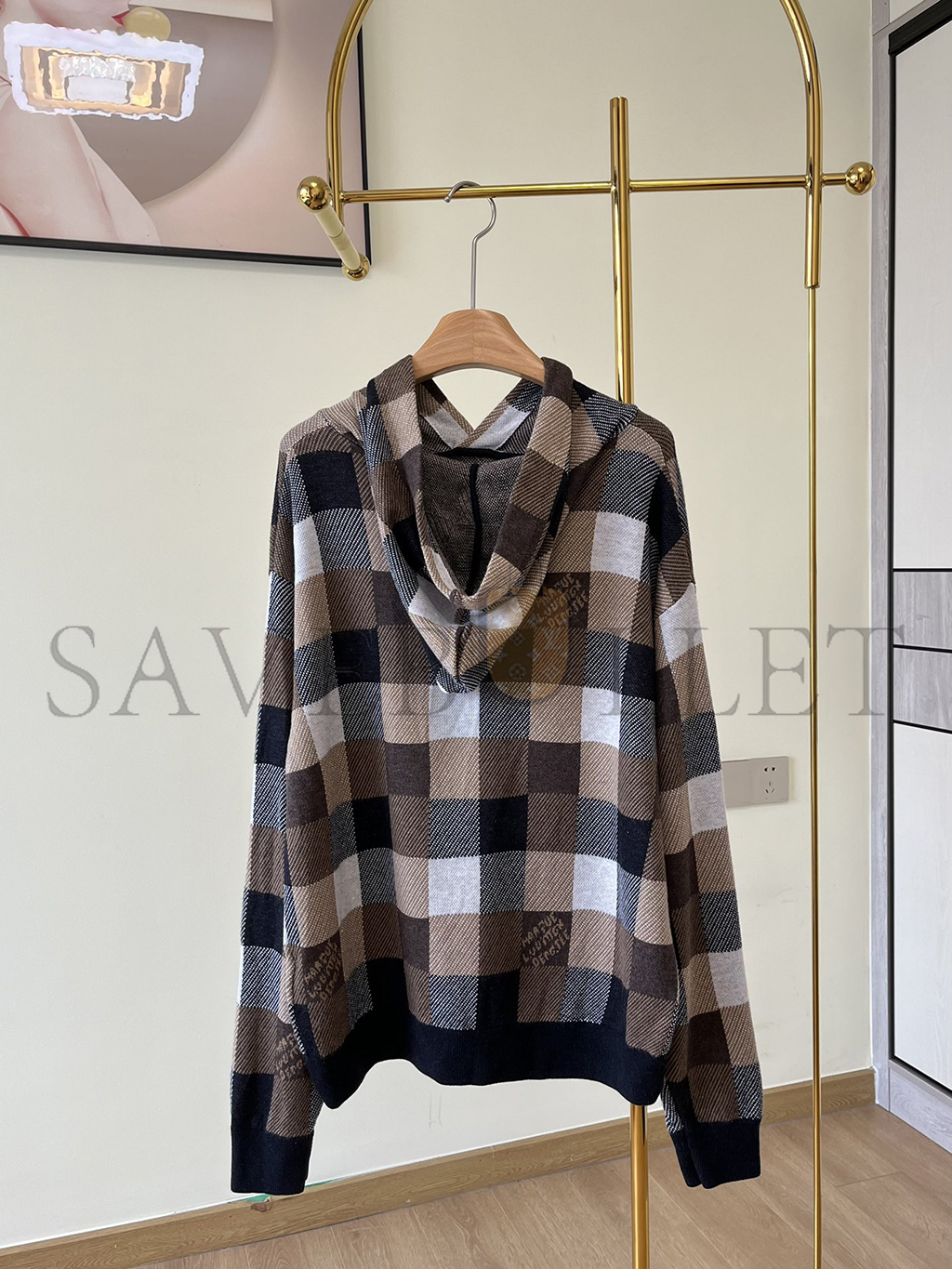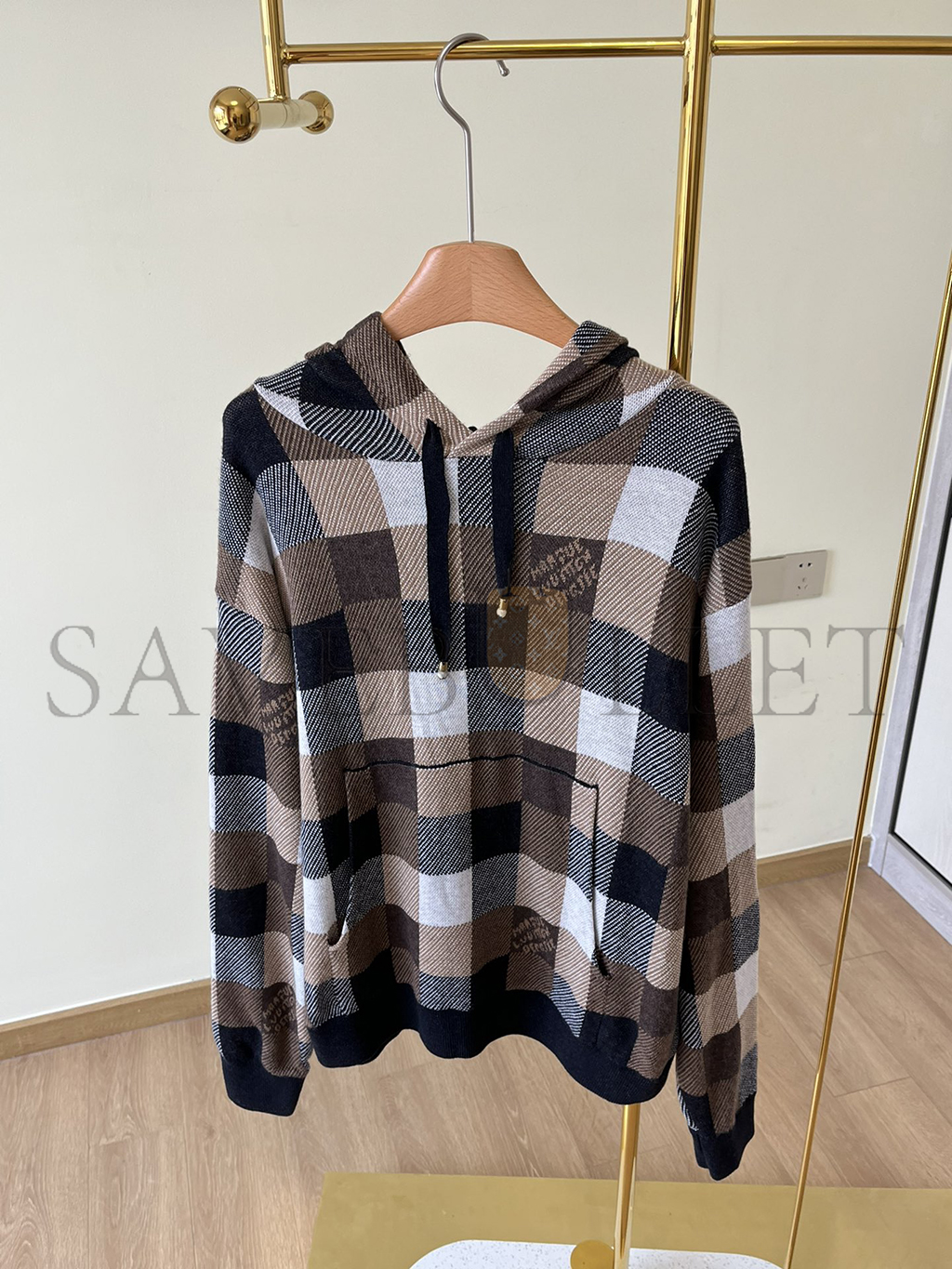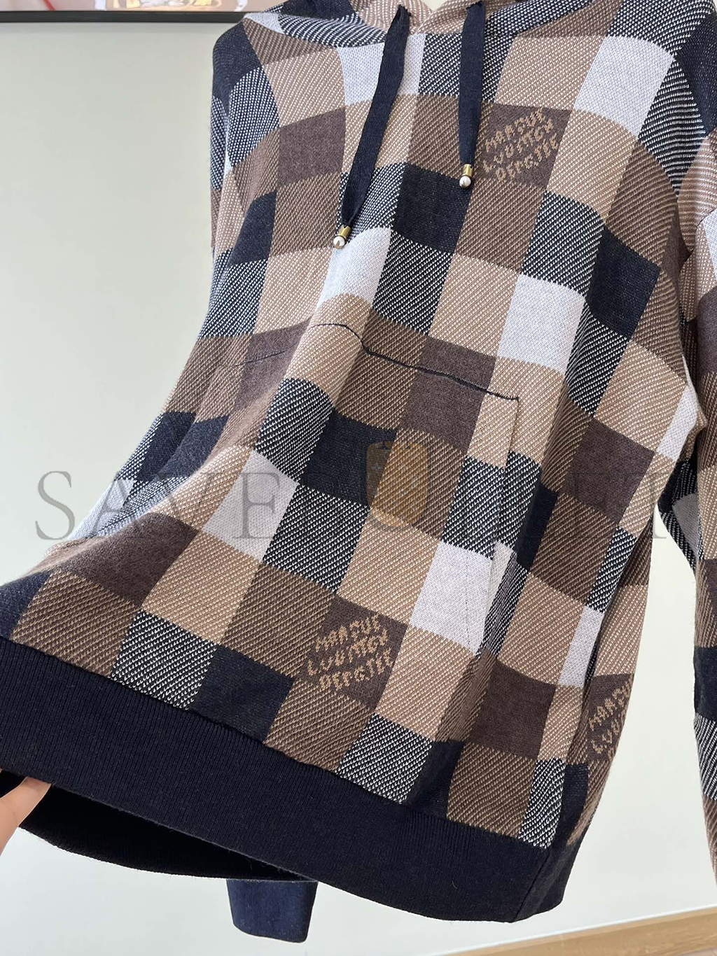 LOUIS VUITTON DAMIER CHECKERED CASHMERE AND WOOL BLEND HOODIE 1AFXJU